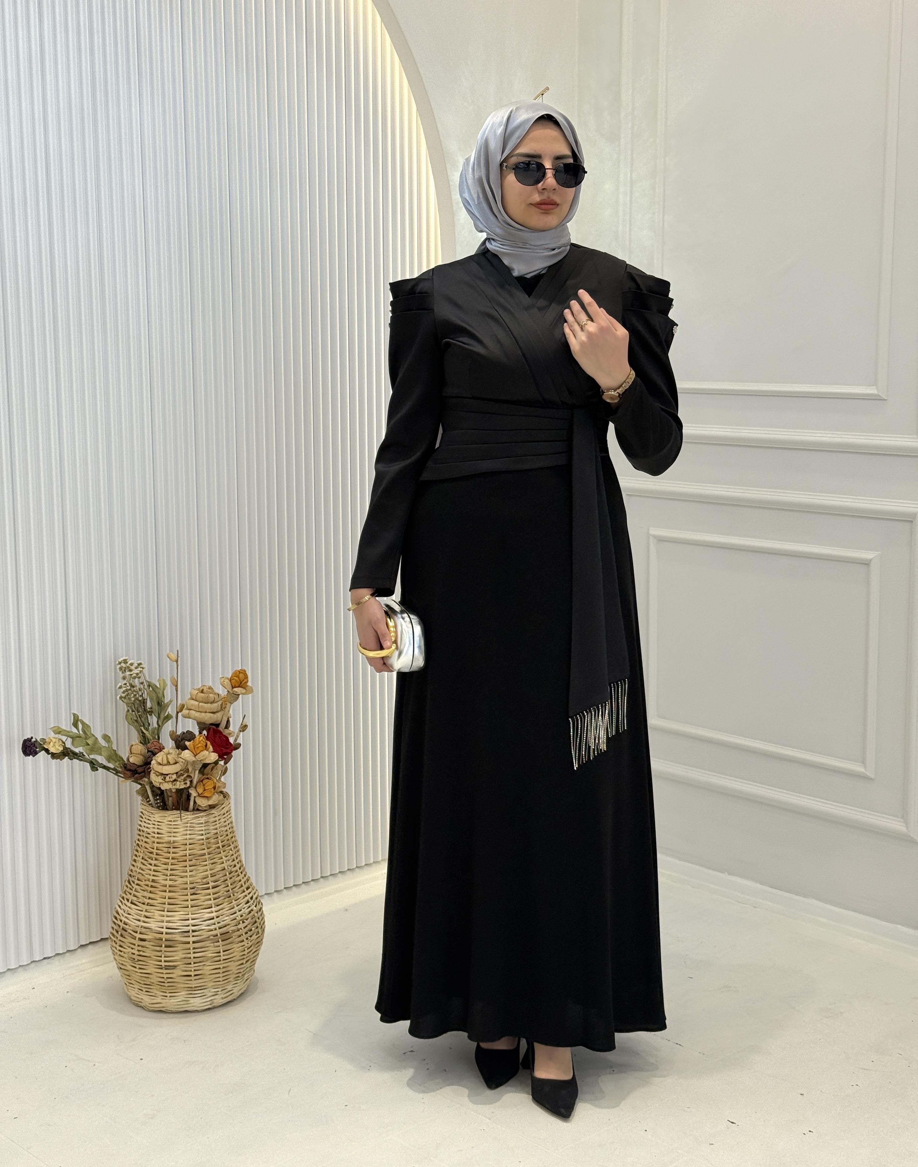 Saten Abiye Elbise Siyah OTW40104