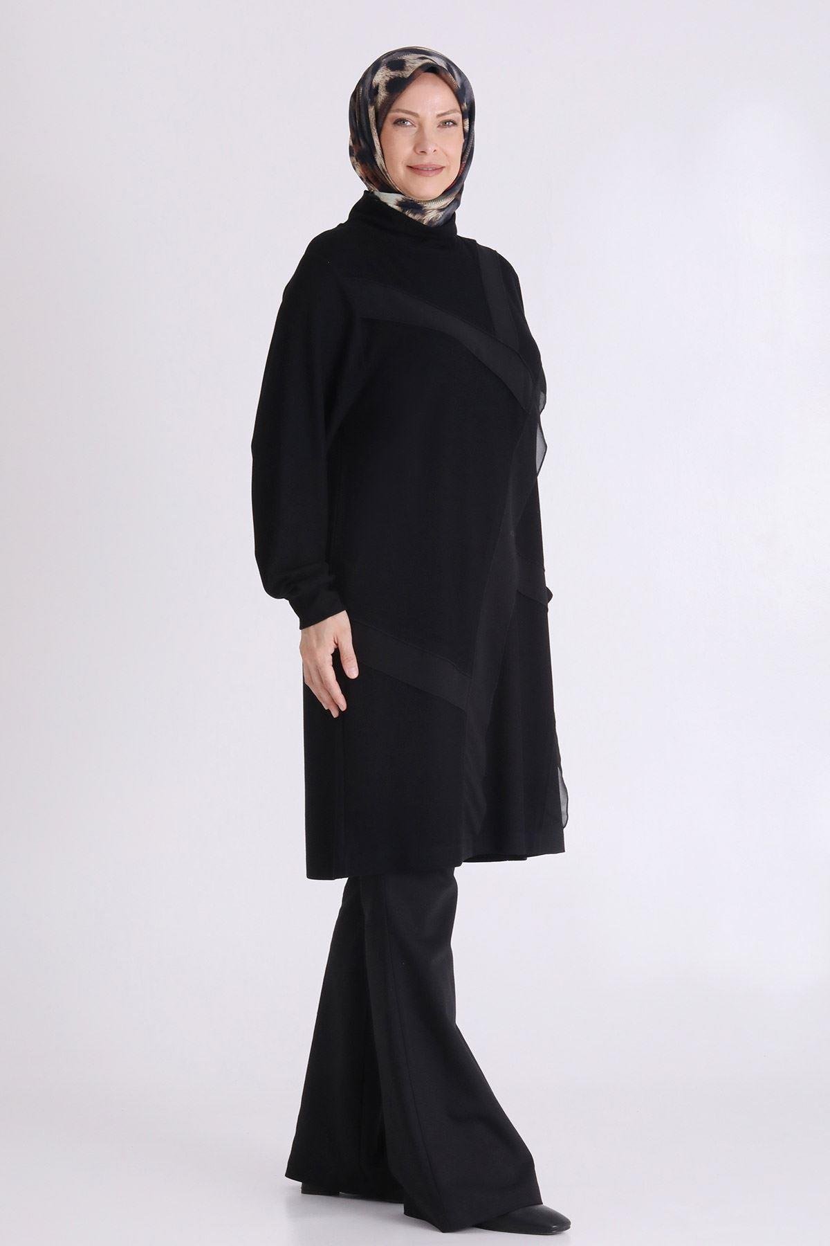 Ürün Detayları: Dik yakalı ürünümüz şifon kumaş ile kombinlenmiş olup patchwork detaylıdır.