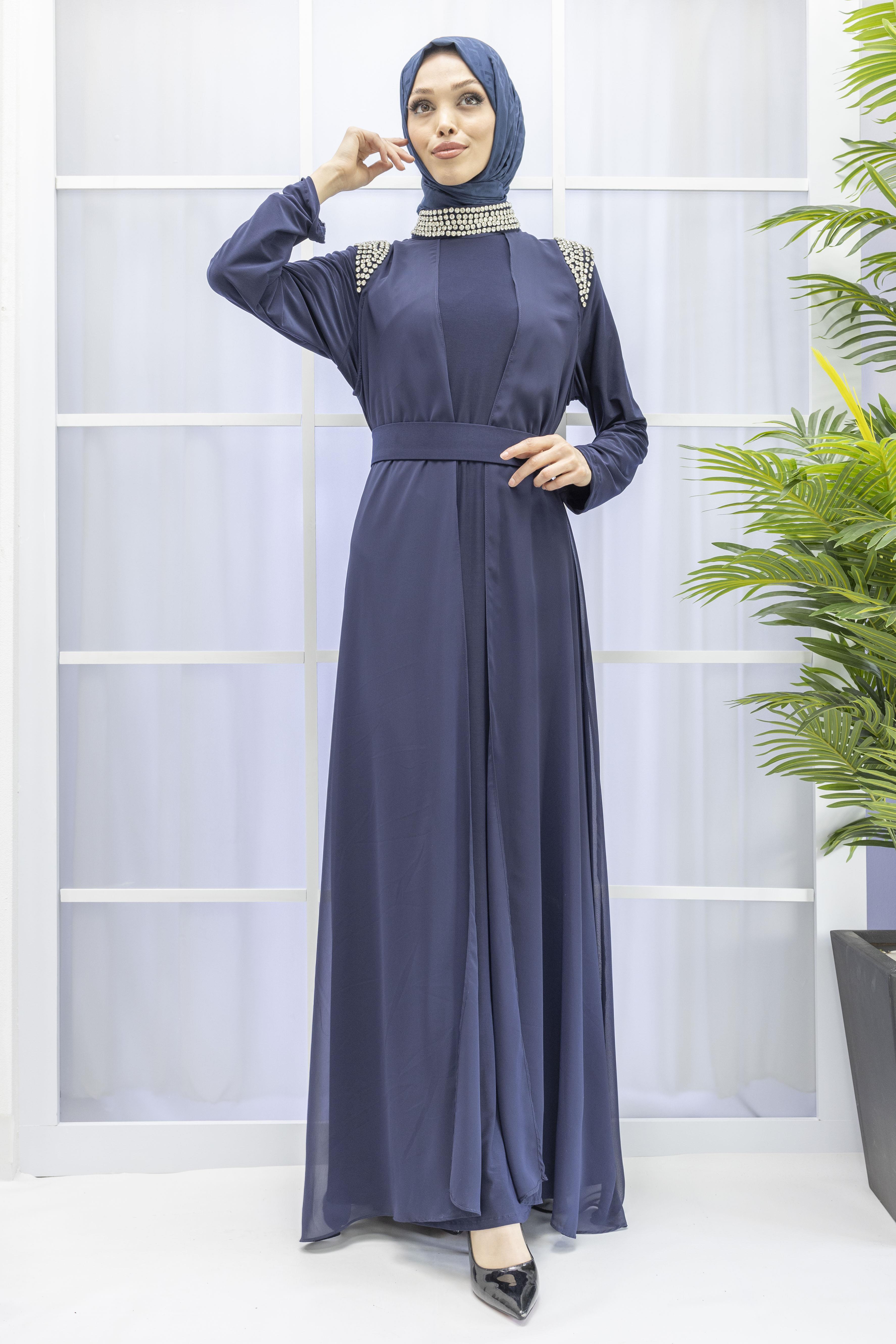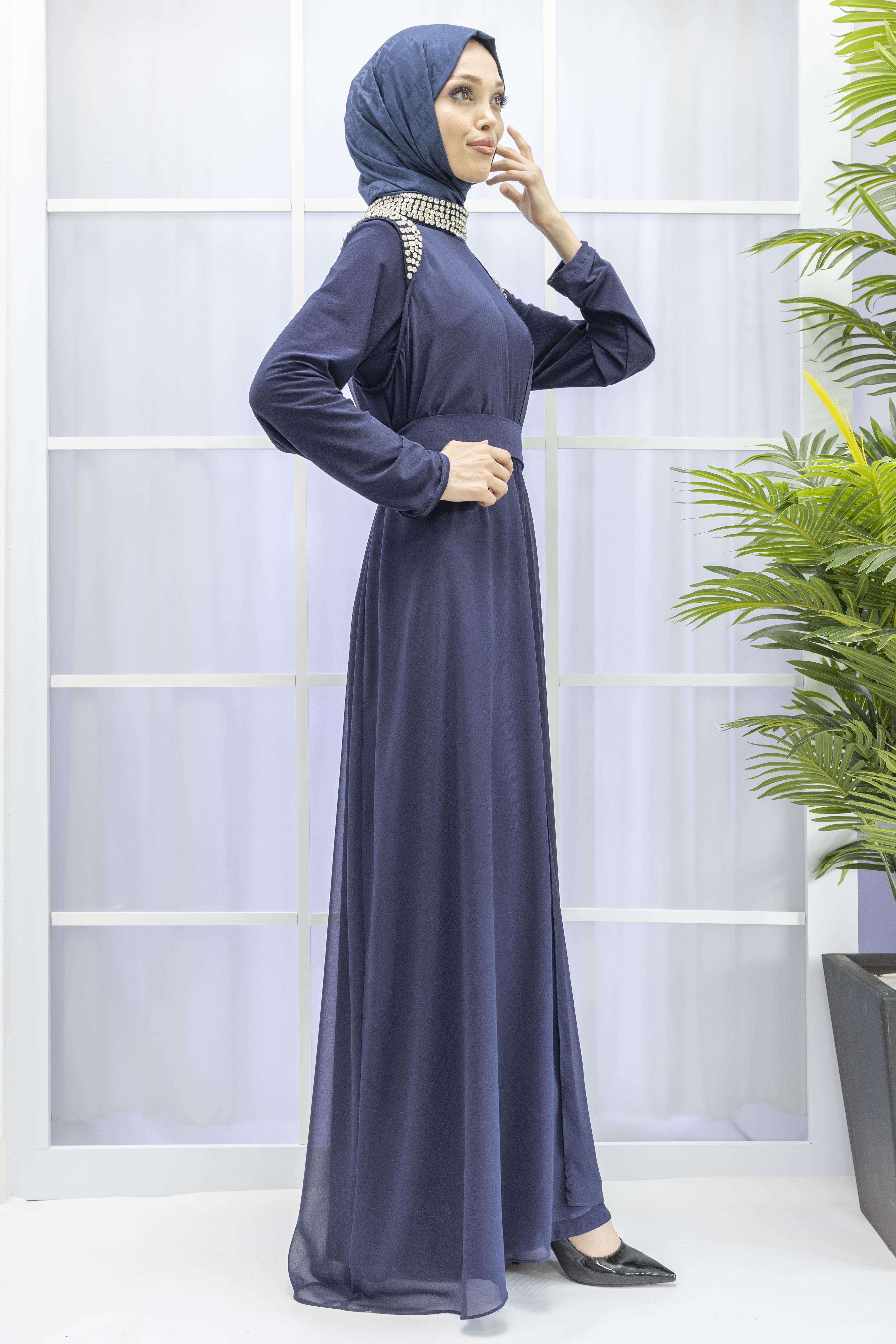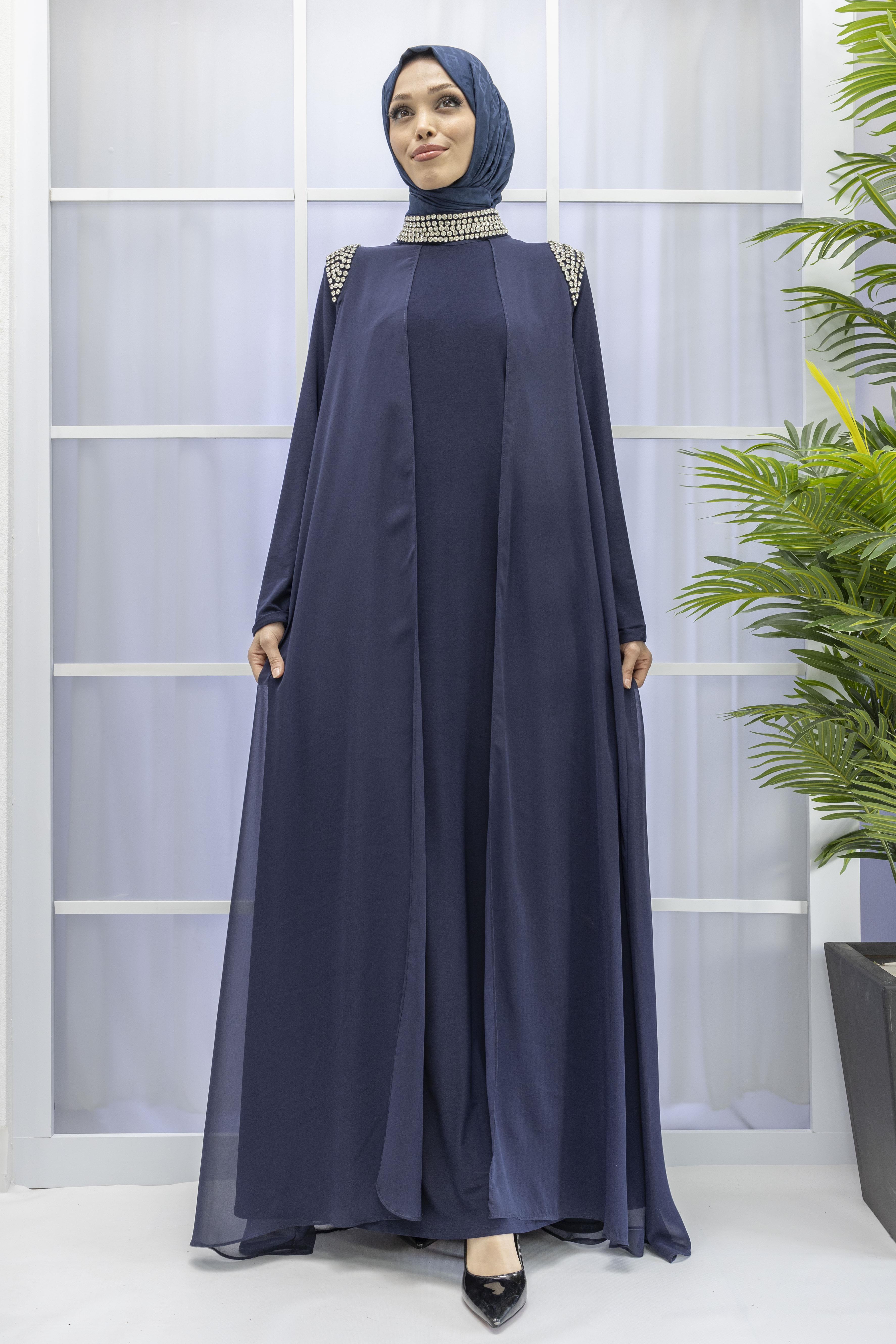 Şifon Abayalı Elbise Lacivert OTW4320