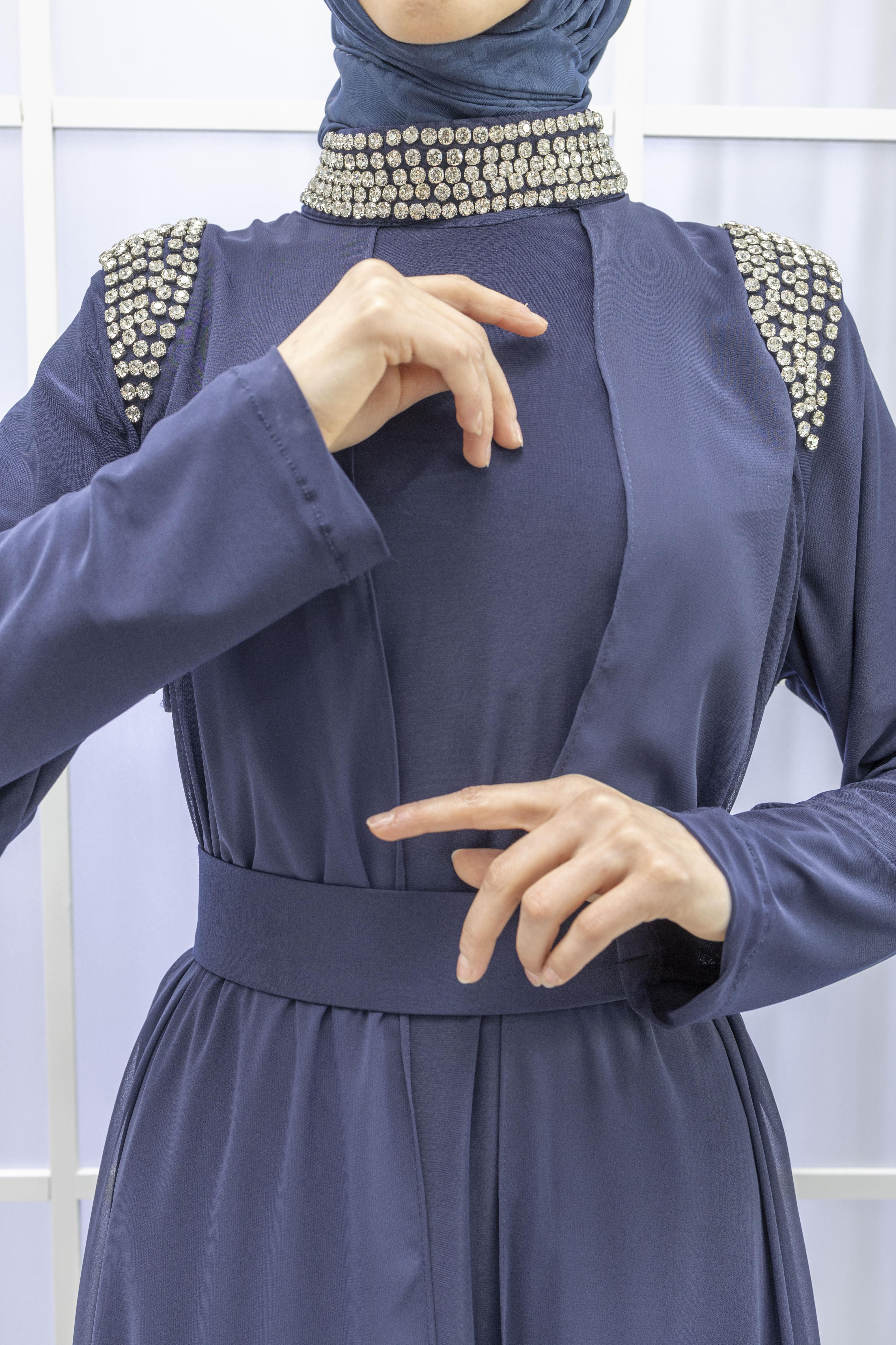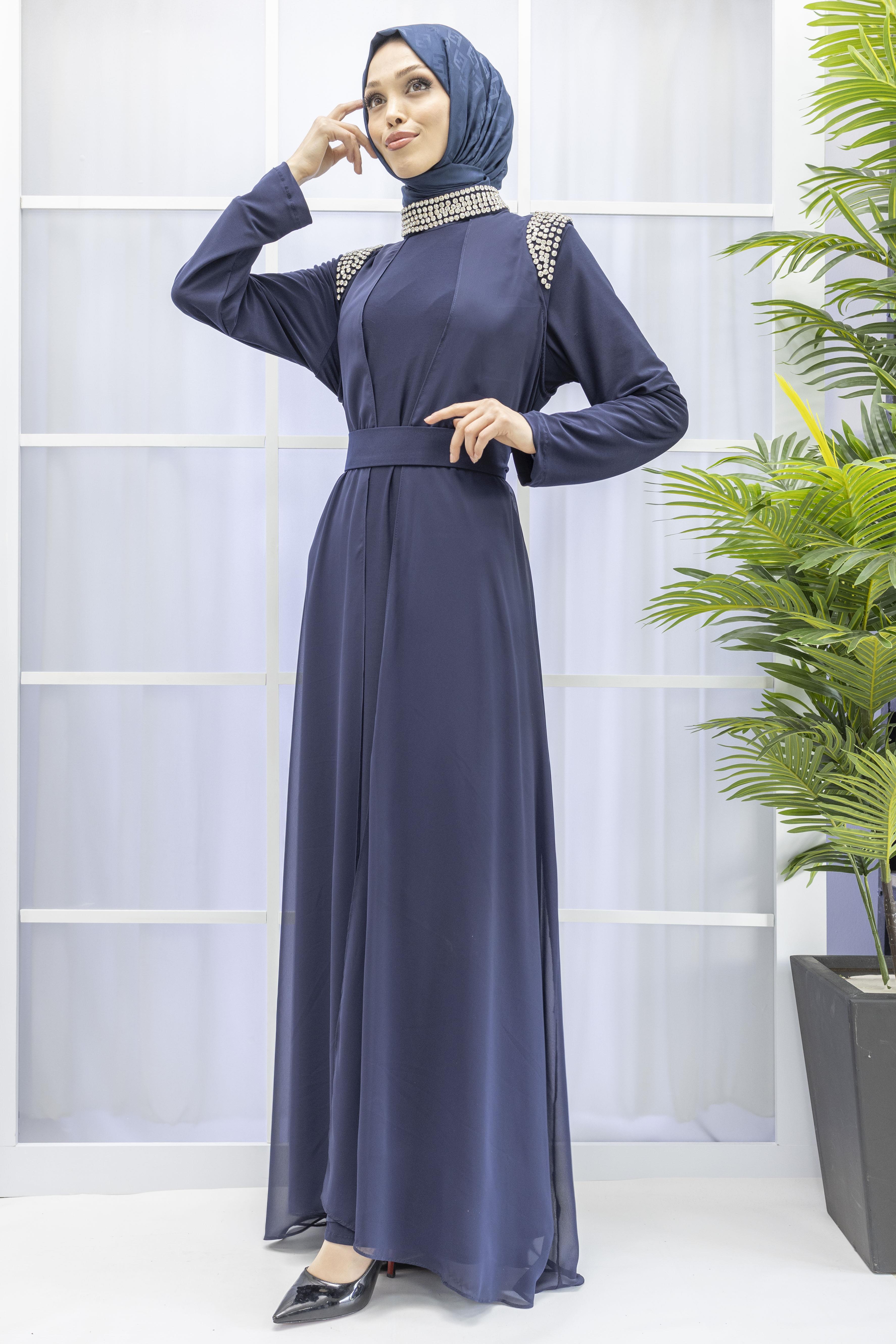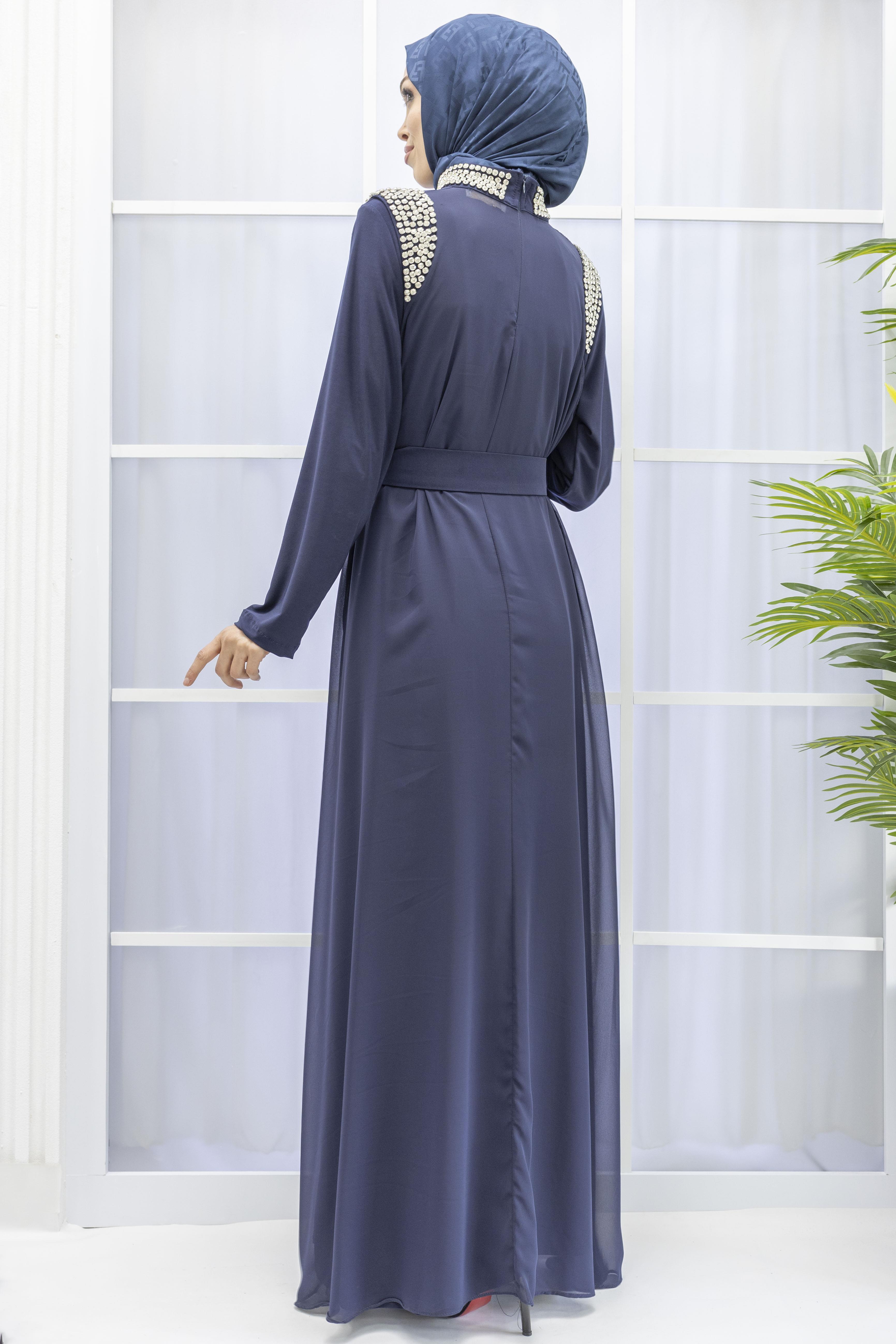Şifon Abayalı Elbise Lacivert OTW4320