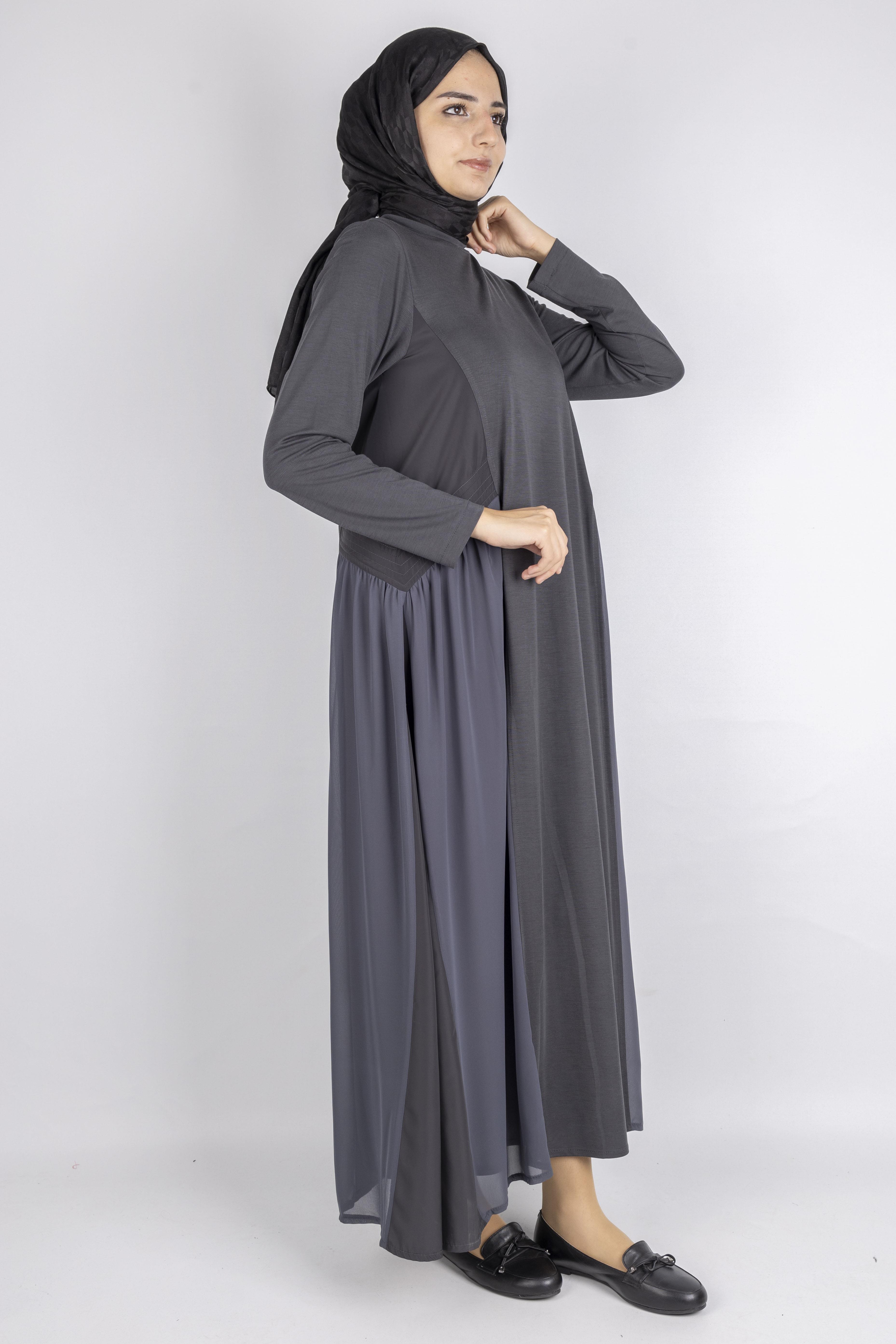 “Şifon detaylı çelik örme tesettür elbise ,Rahat kalıbı ve şık tasarımıyla günlük kombinlerde, özel davetlerde ve ofis şıklığında tercih edebileceğiniz modern büyük beden elbise modeli.”