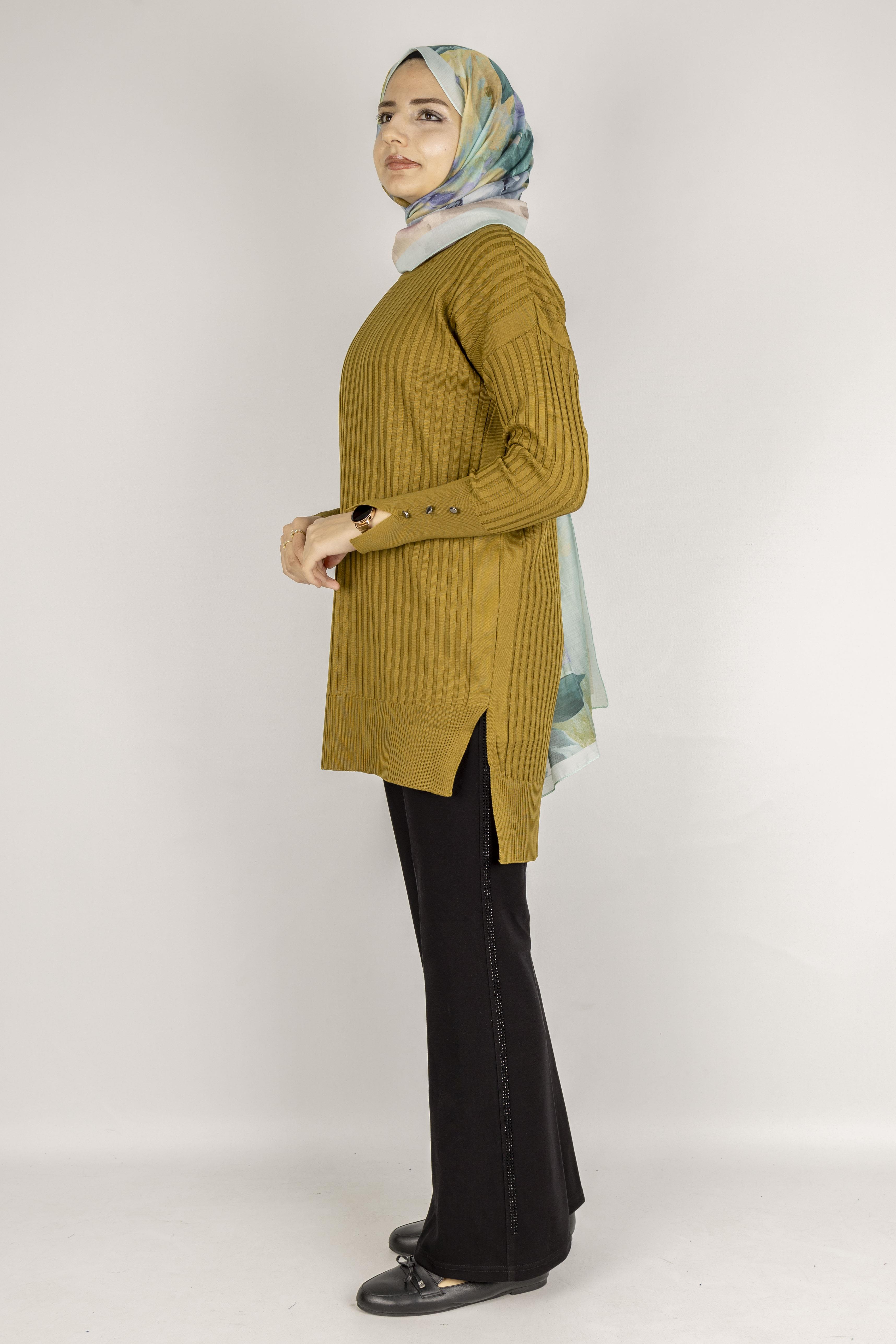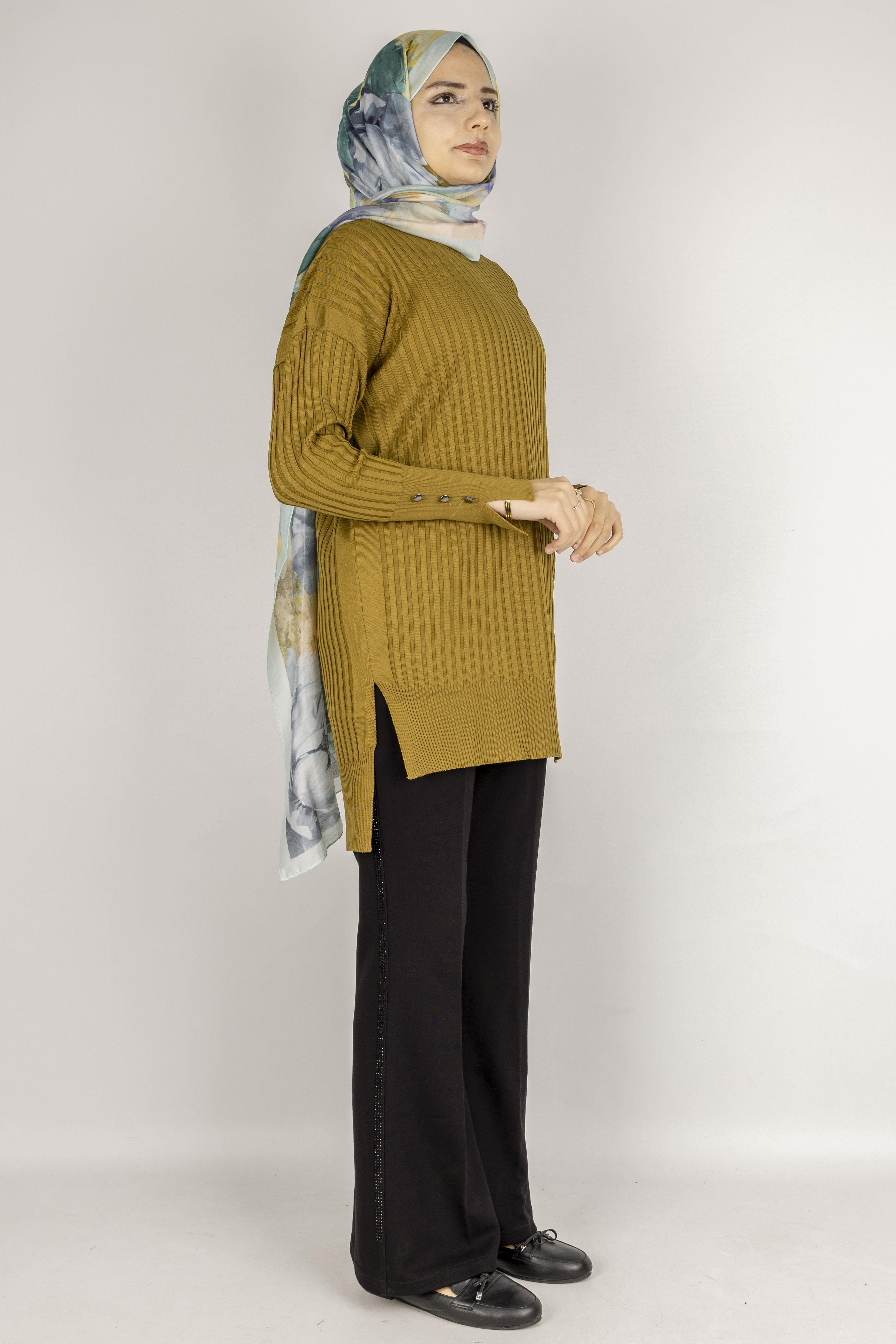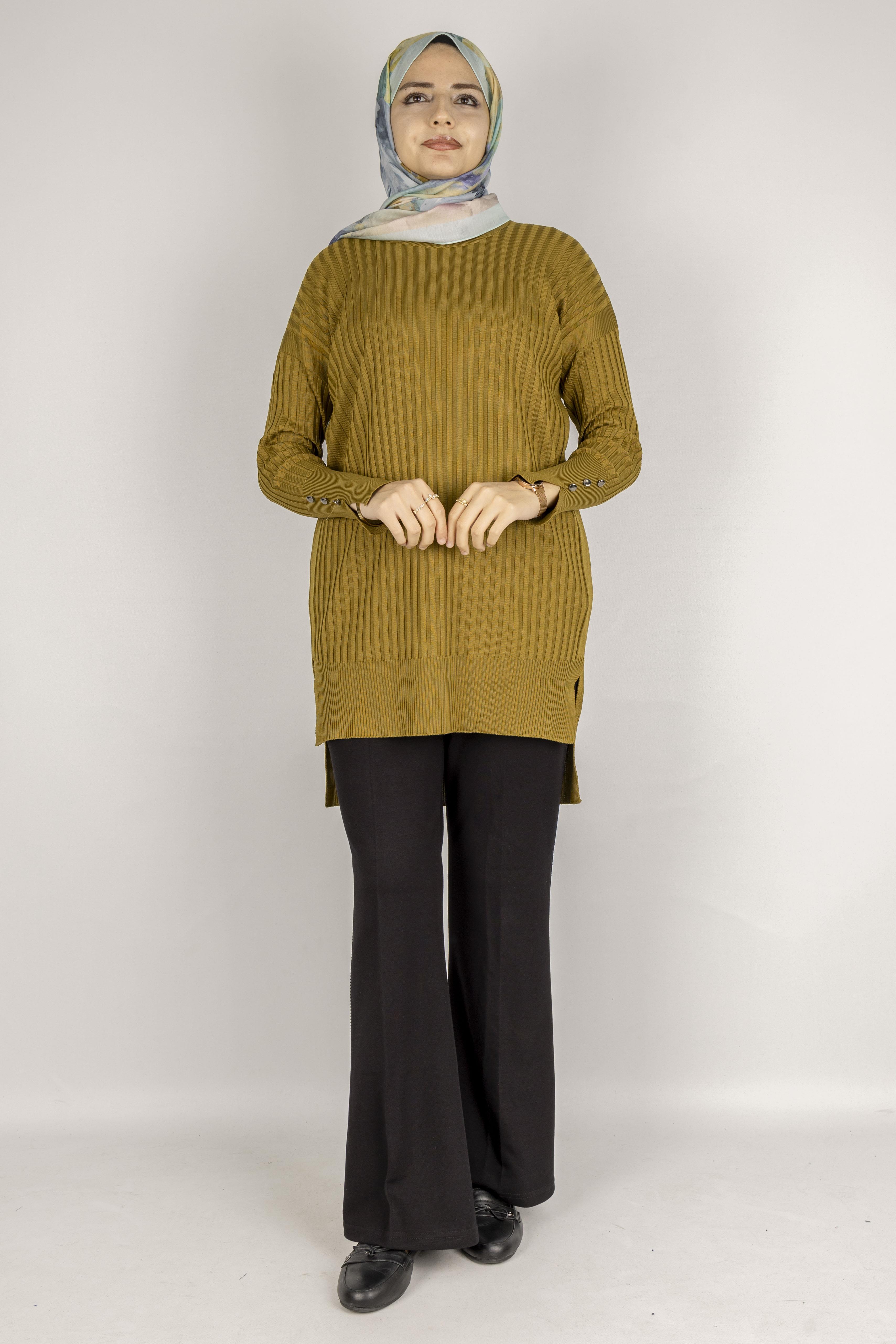 Şık Düğme Detaylı Merserize Tunik Hardal OTW1009