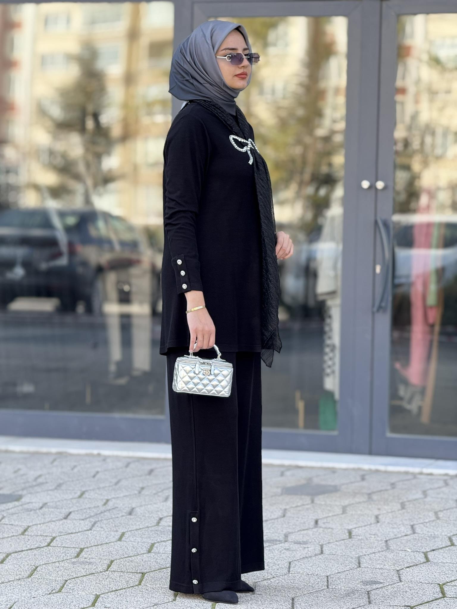 Taş Fiyonk Detaylı Pantolonlu Takım Siyah OTW45827