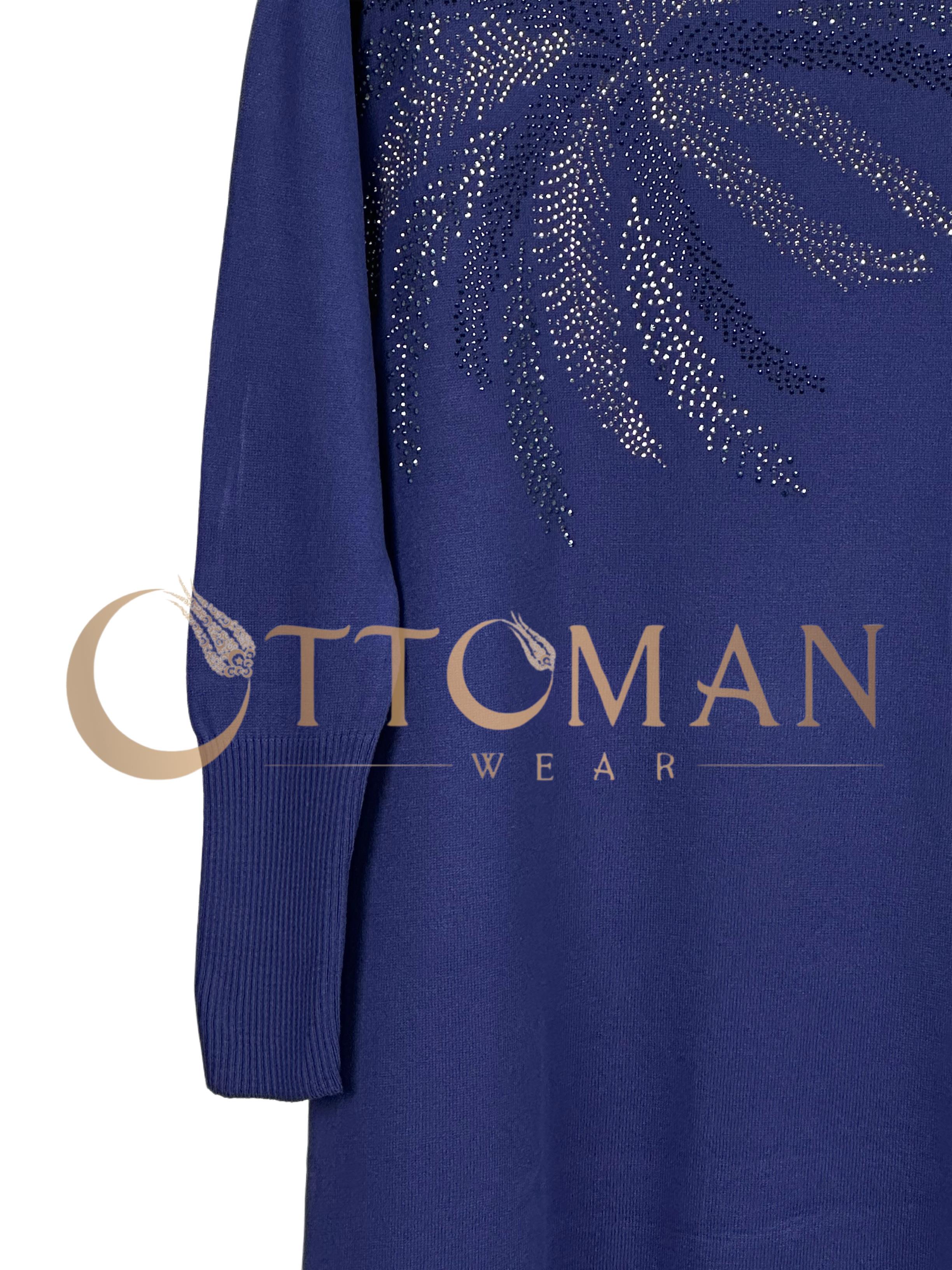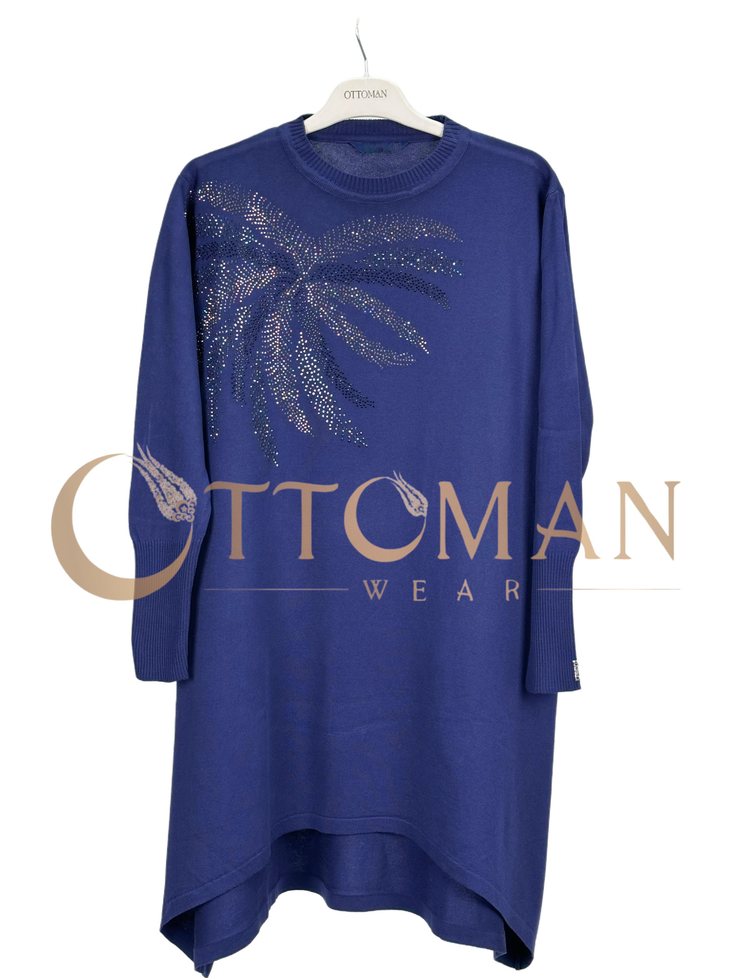 Taş İşlemeli Merserize Triko Tunik Lacivert OTW884-1