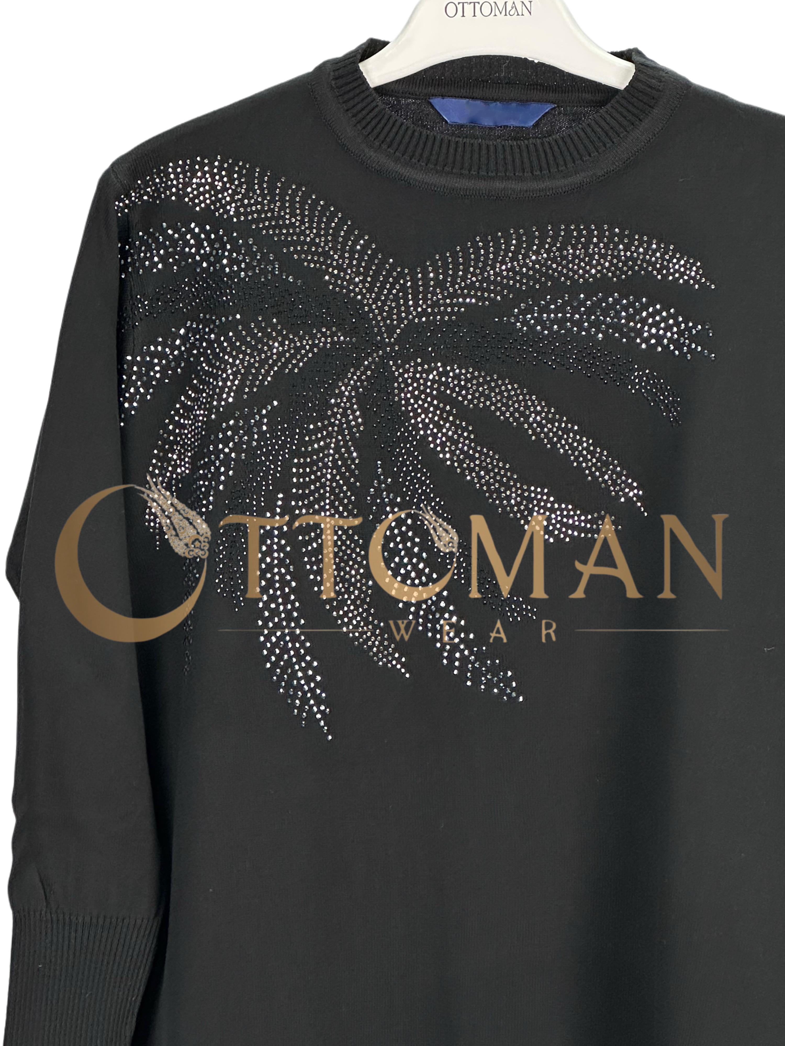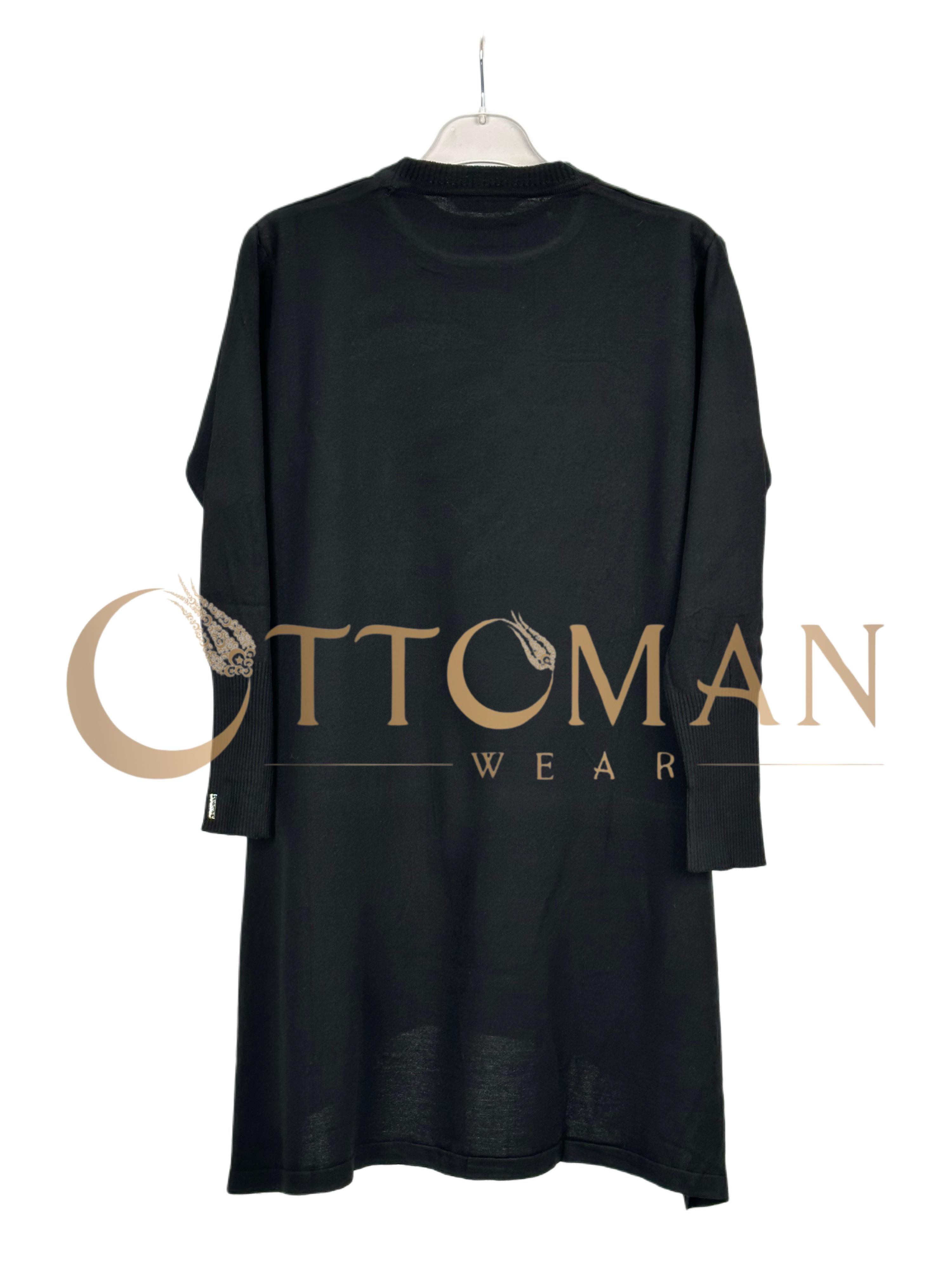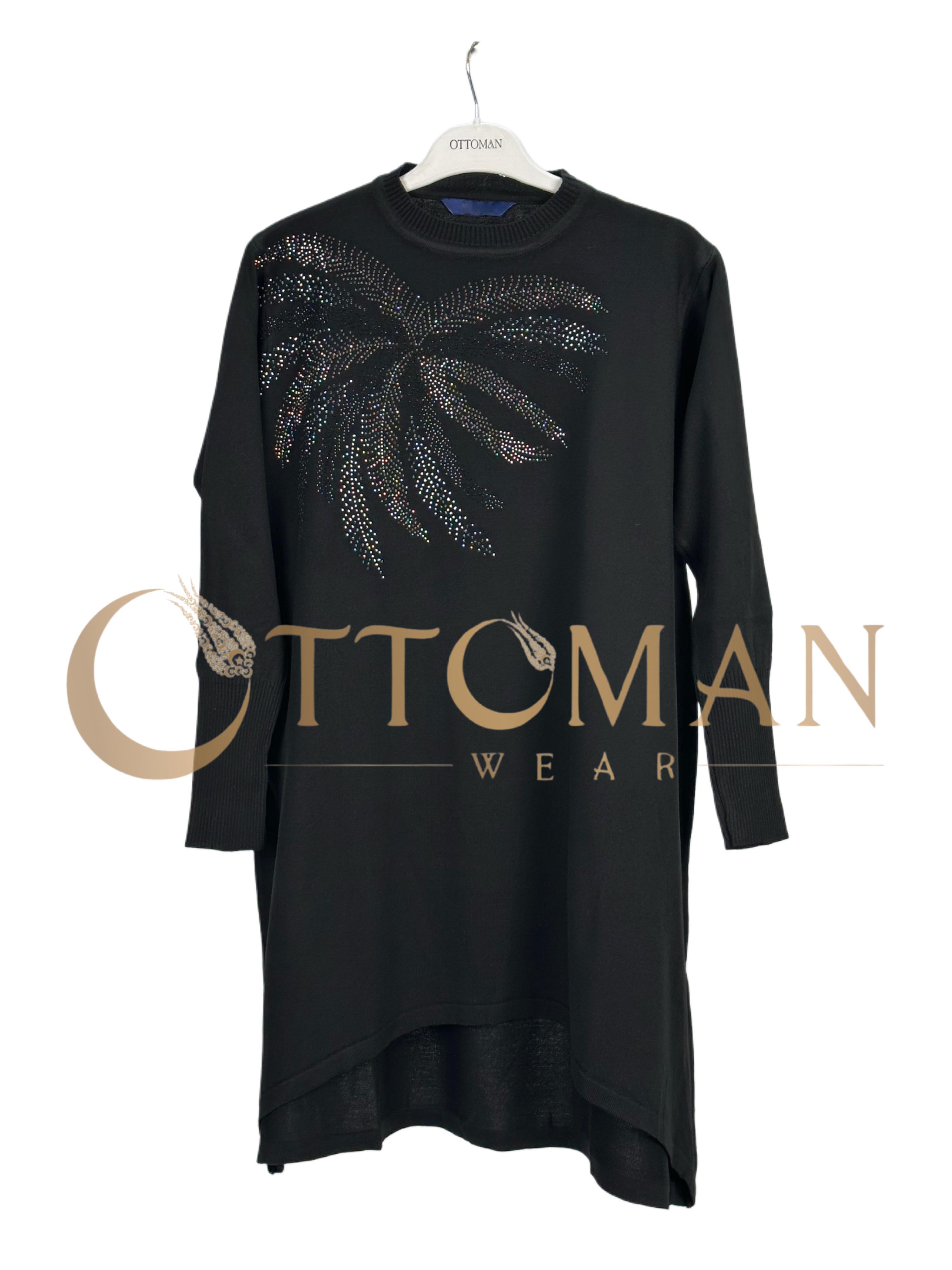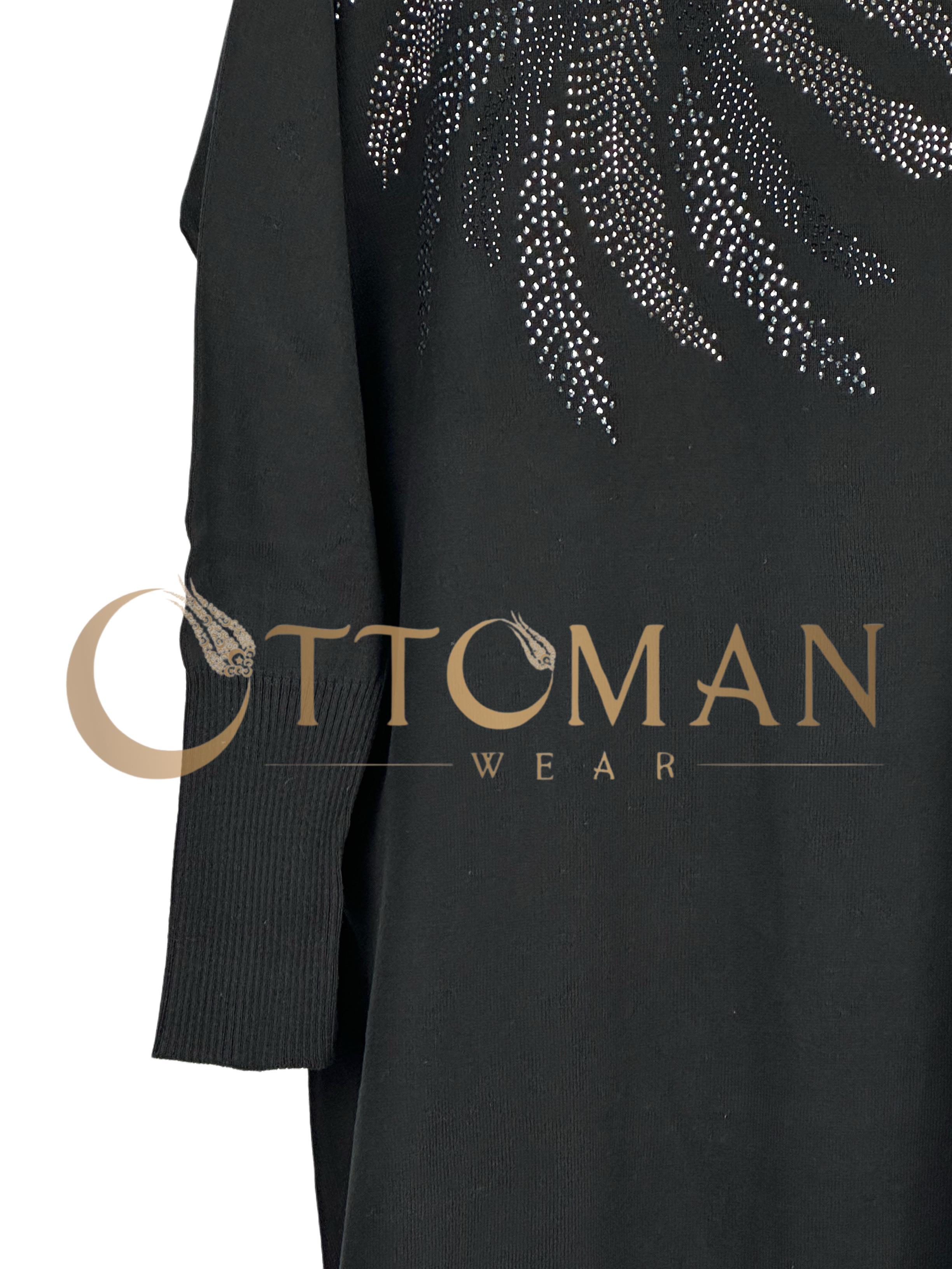 Taş İşlemeli Merserize Triko Tunik Siyah OTW884-1