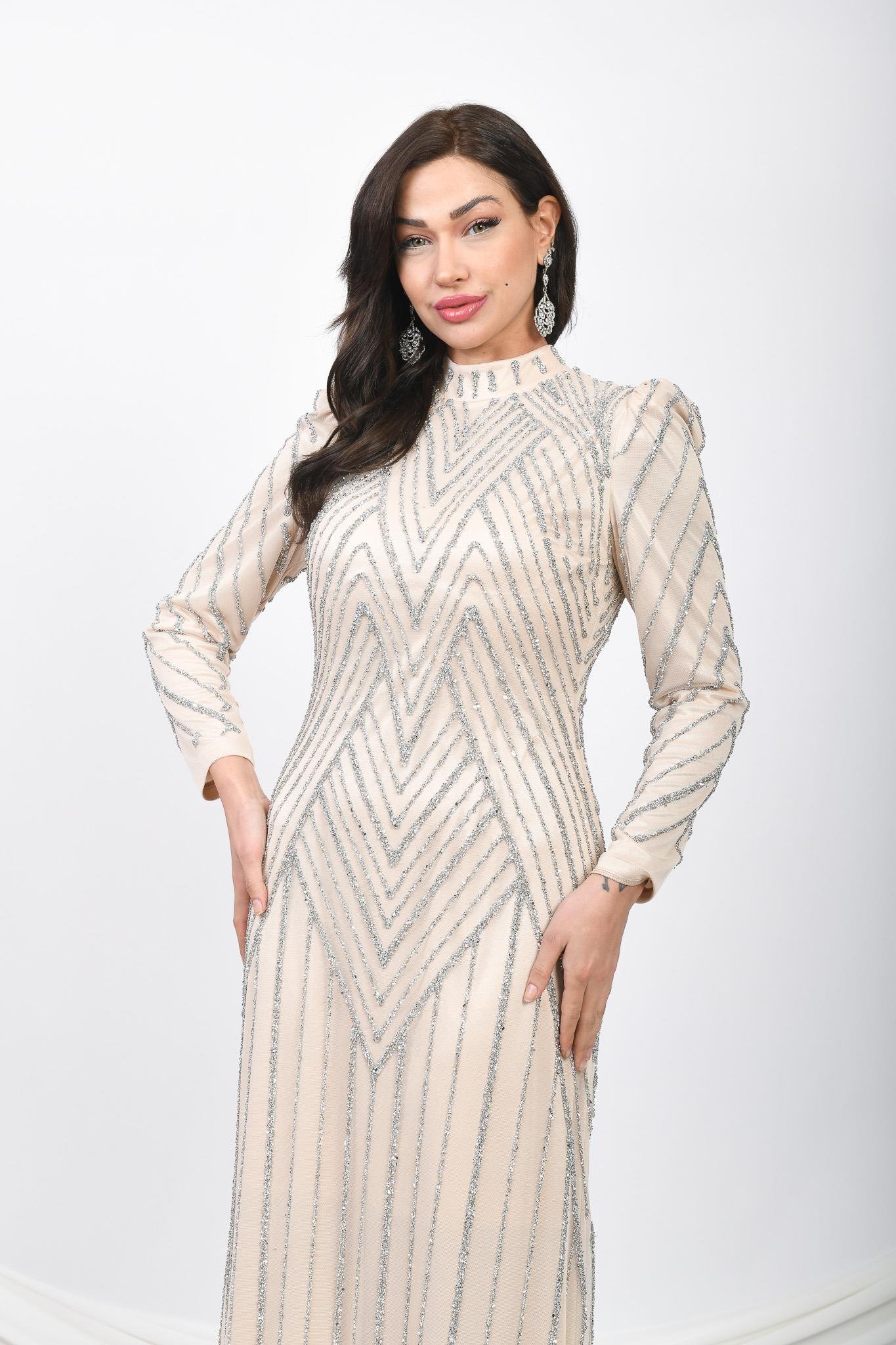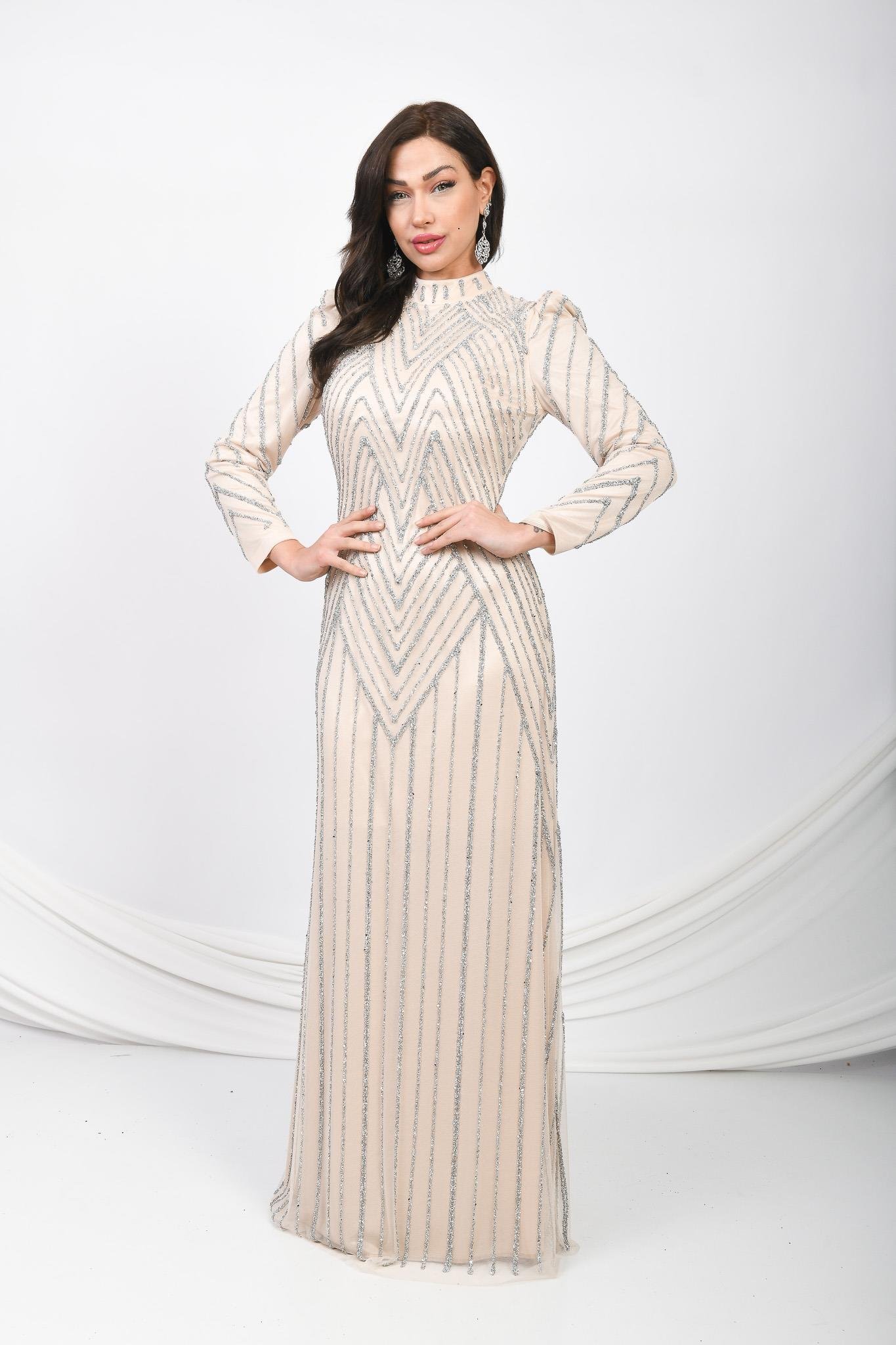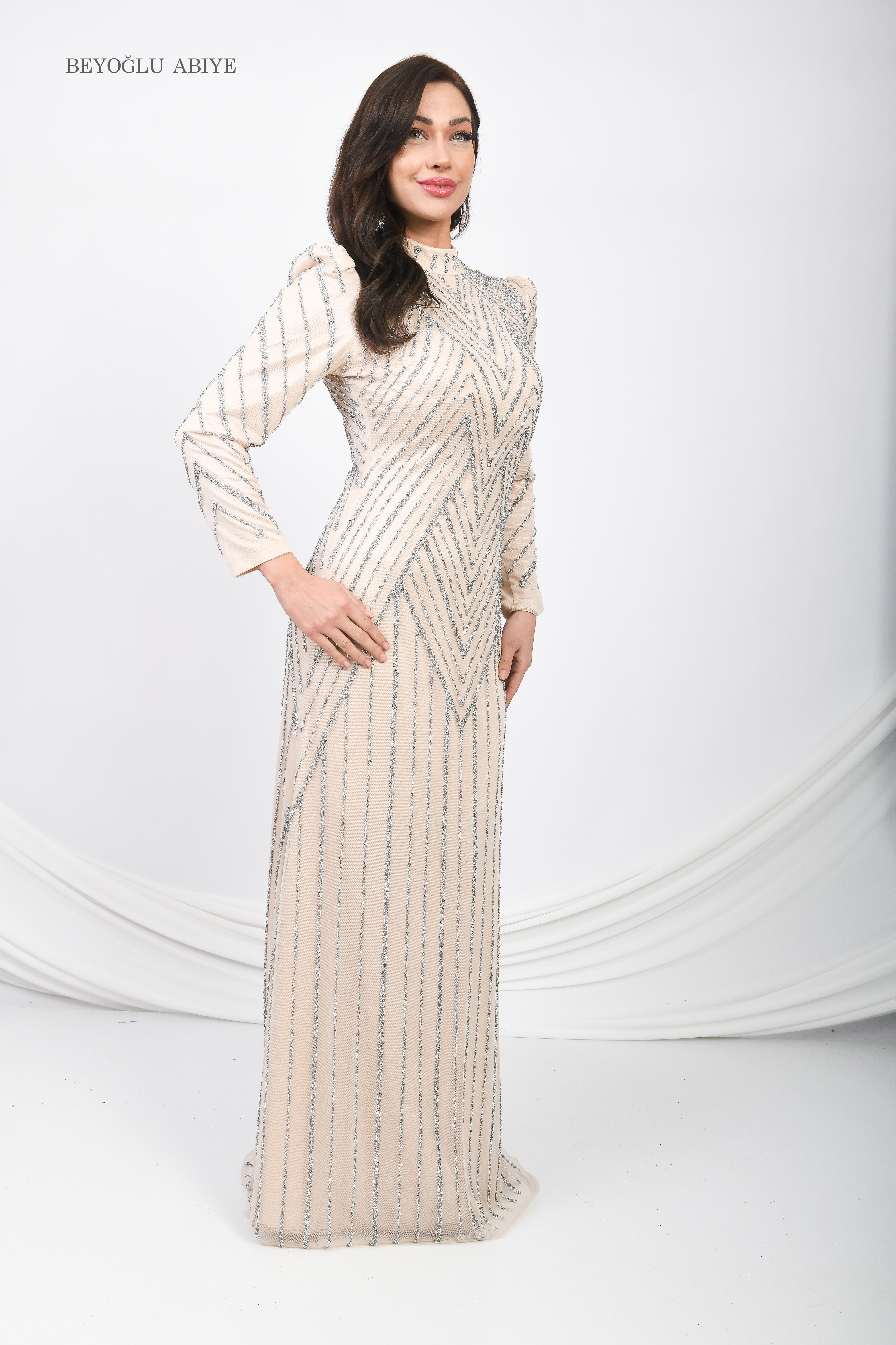 Taş İşlemeli Simli Uzun Abiye Lacivert OTW5101