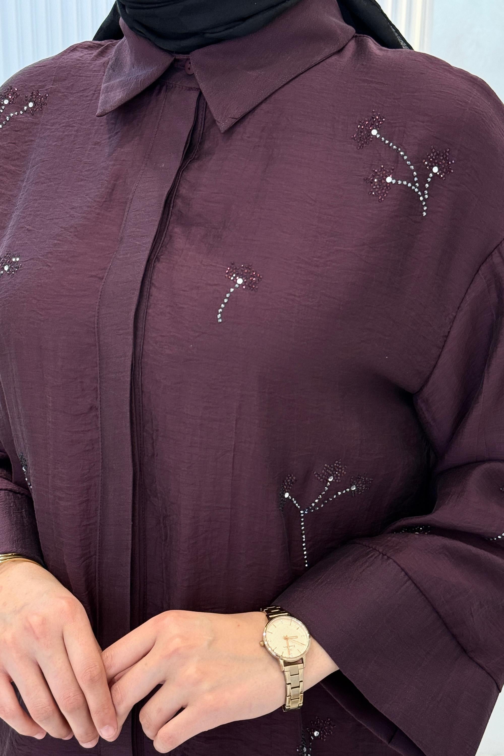 Taş İşlemeli Tesettür Takım Bordo OTW8640