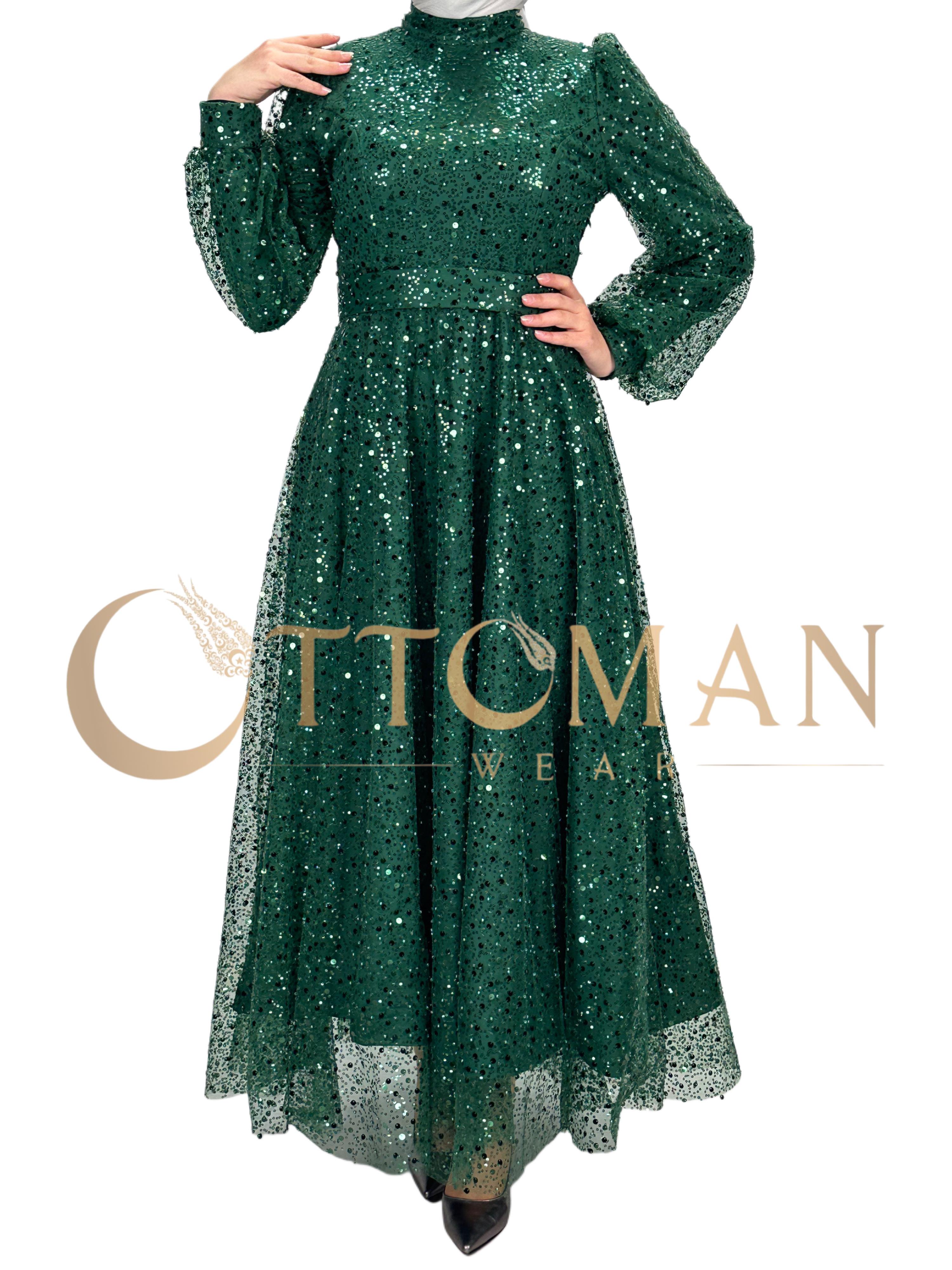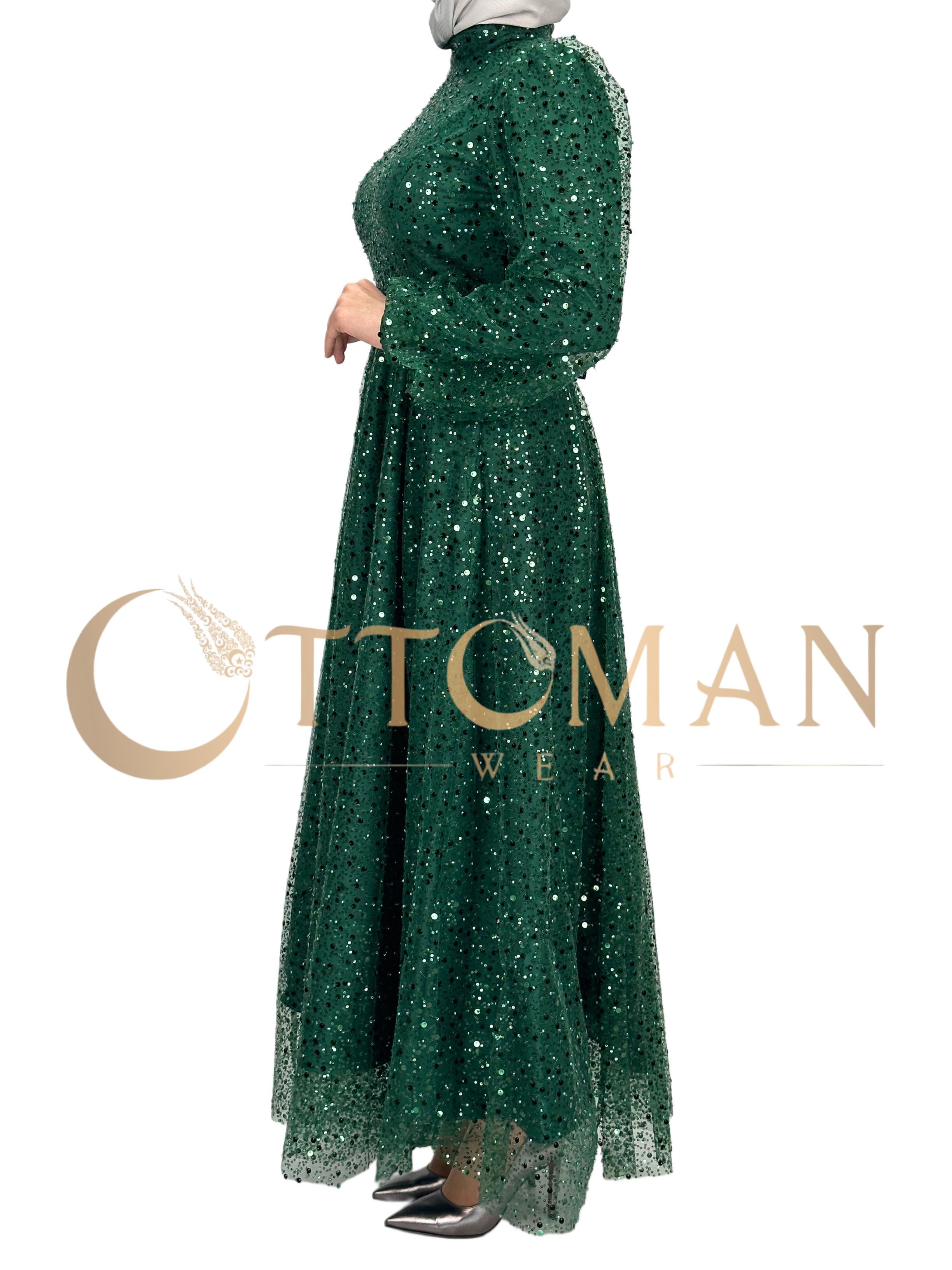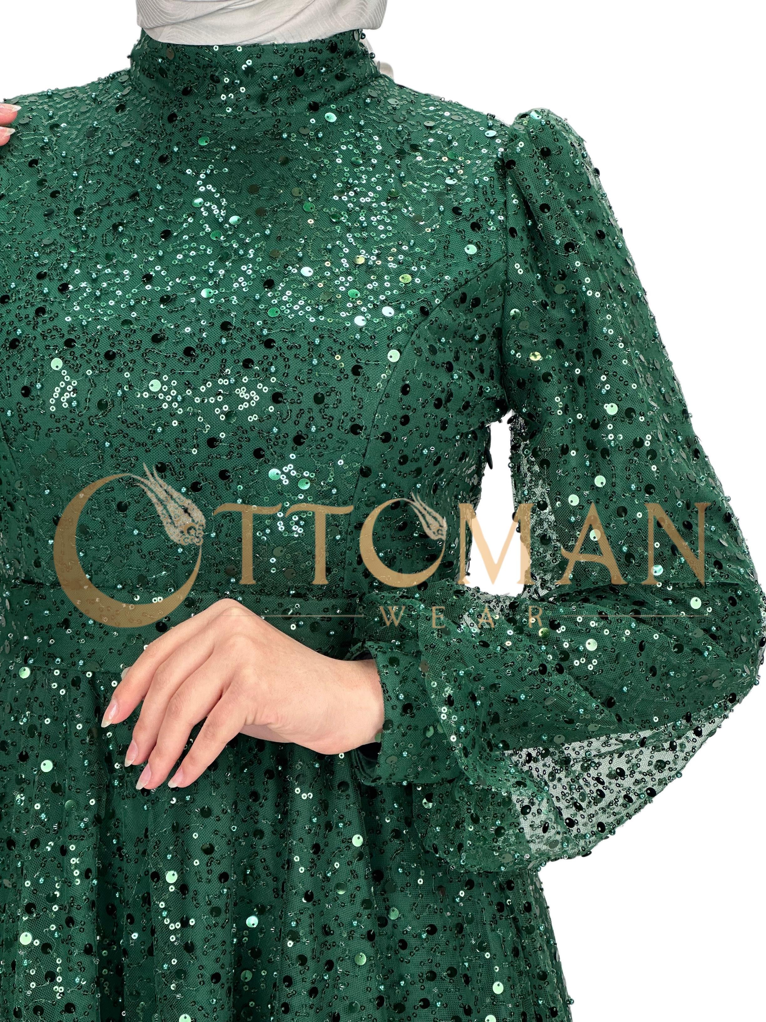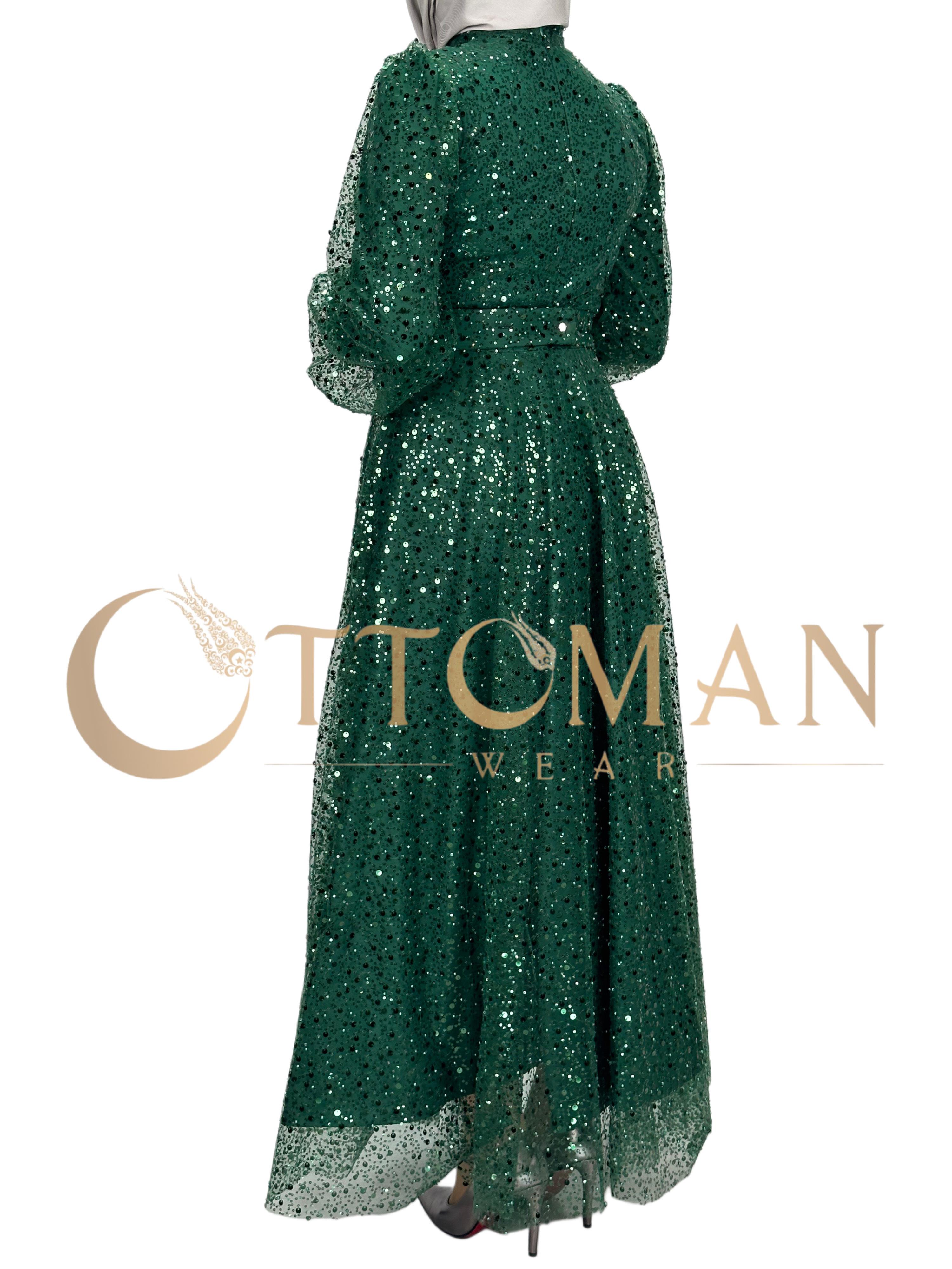 Taşlı Abiye Elbise Yeşil OTW4533