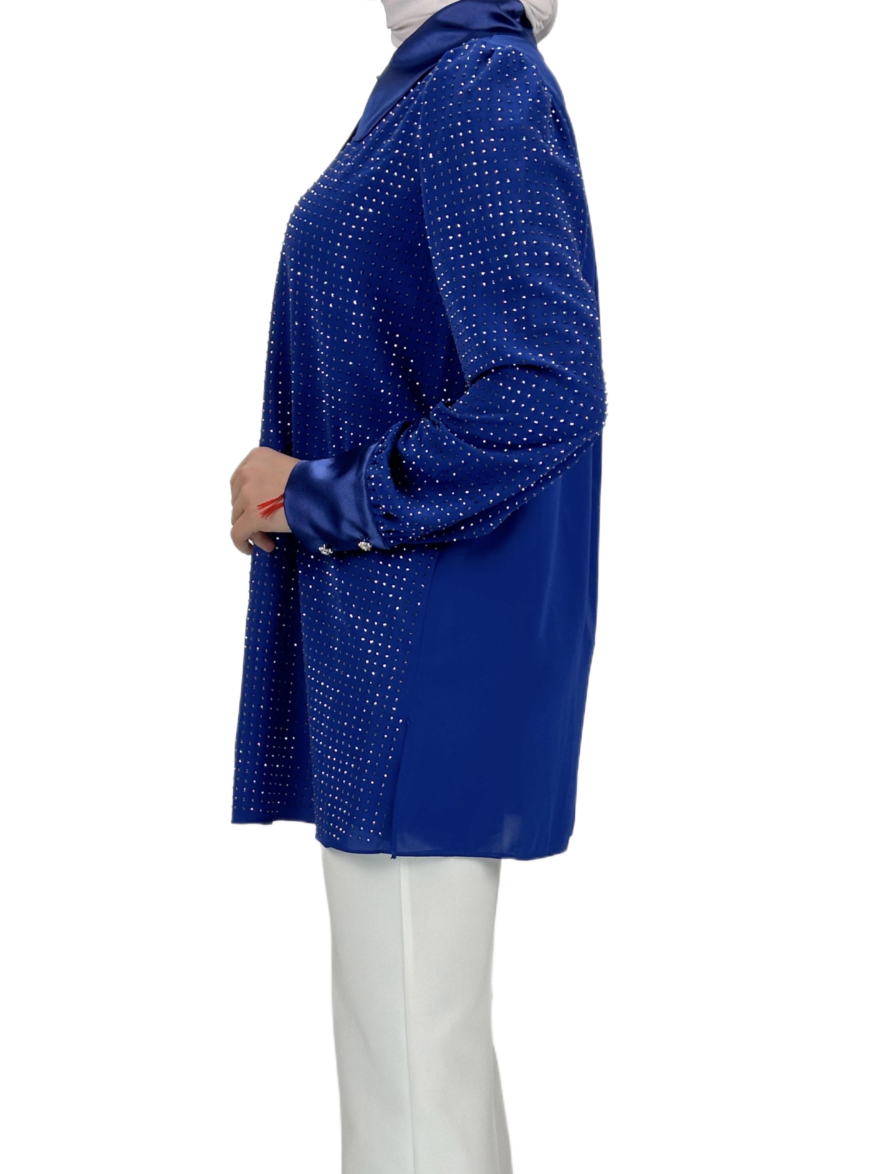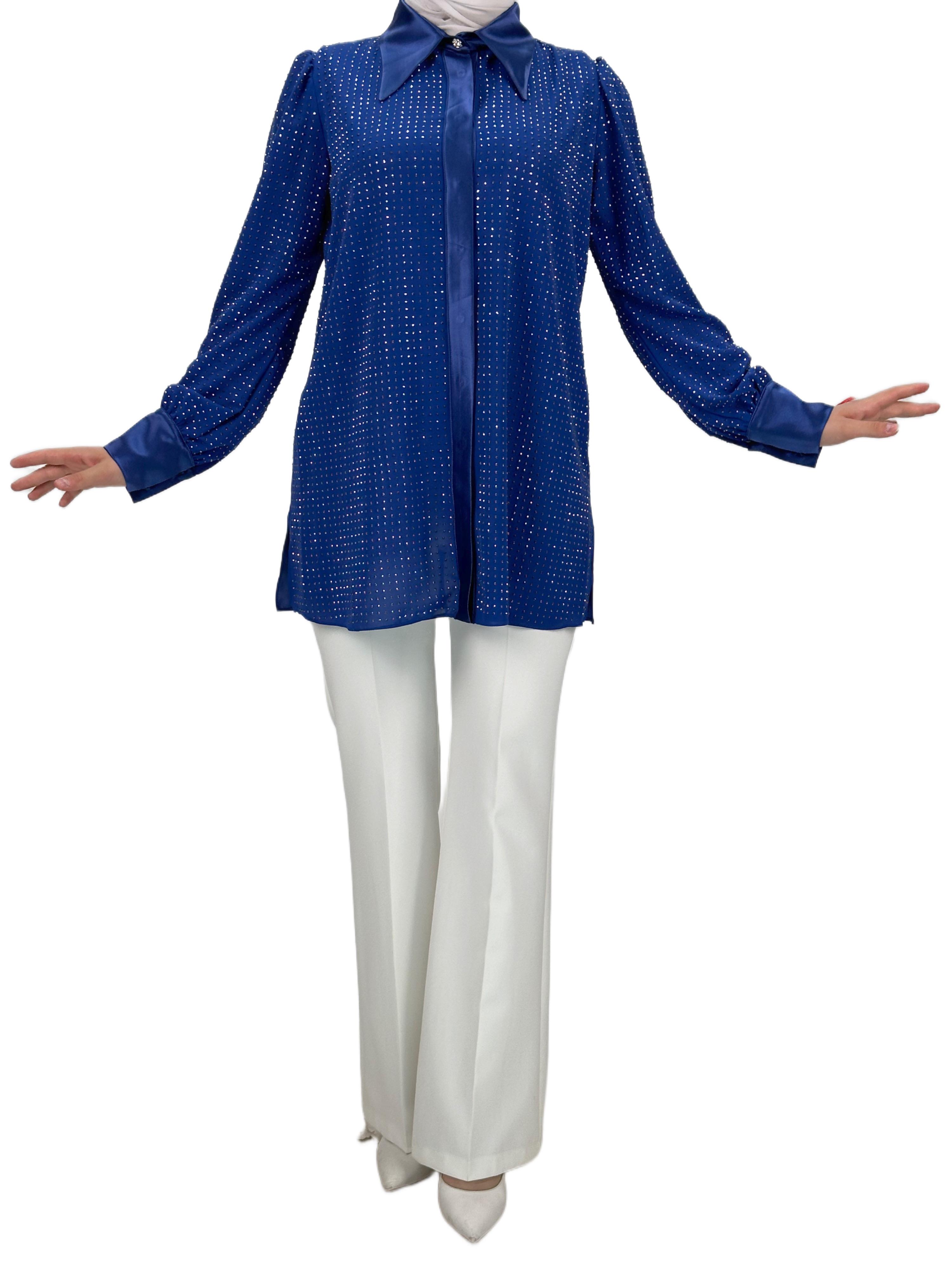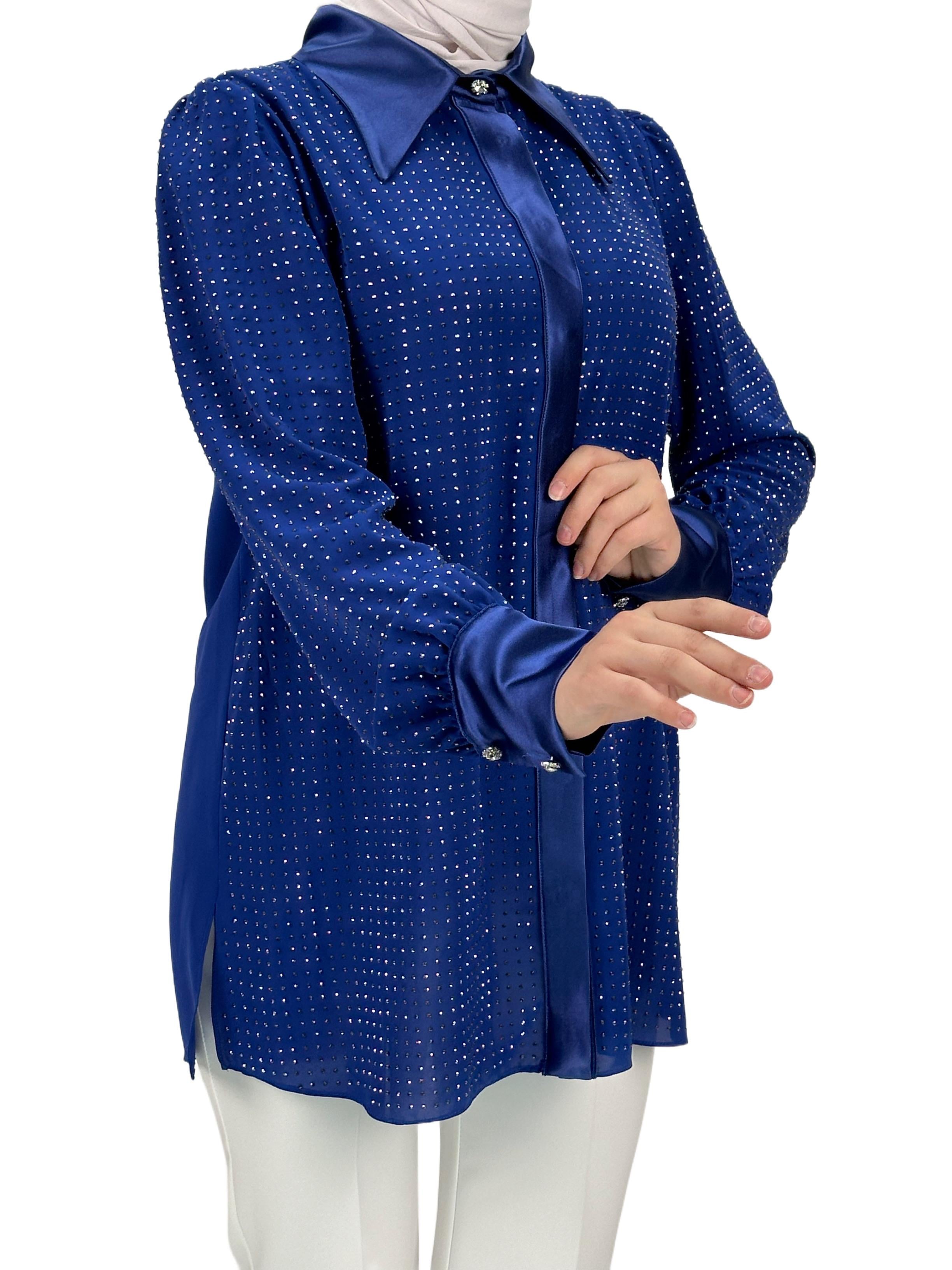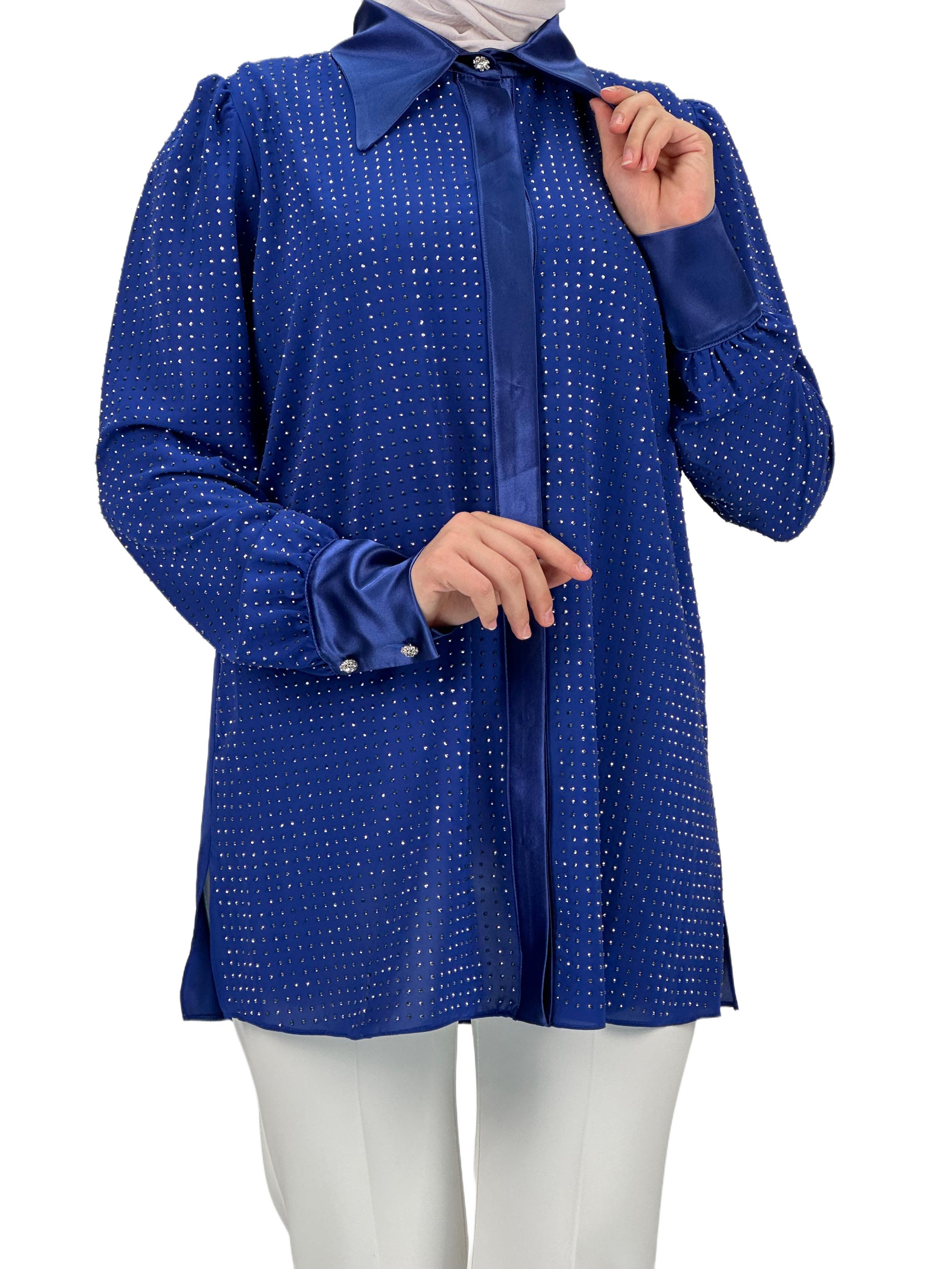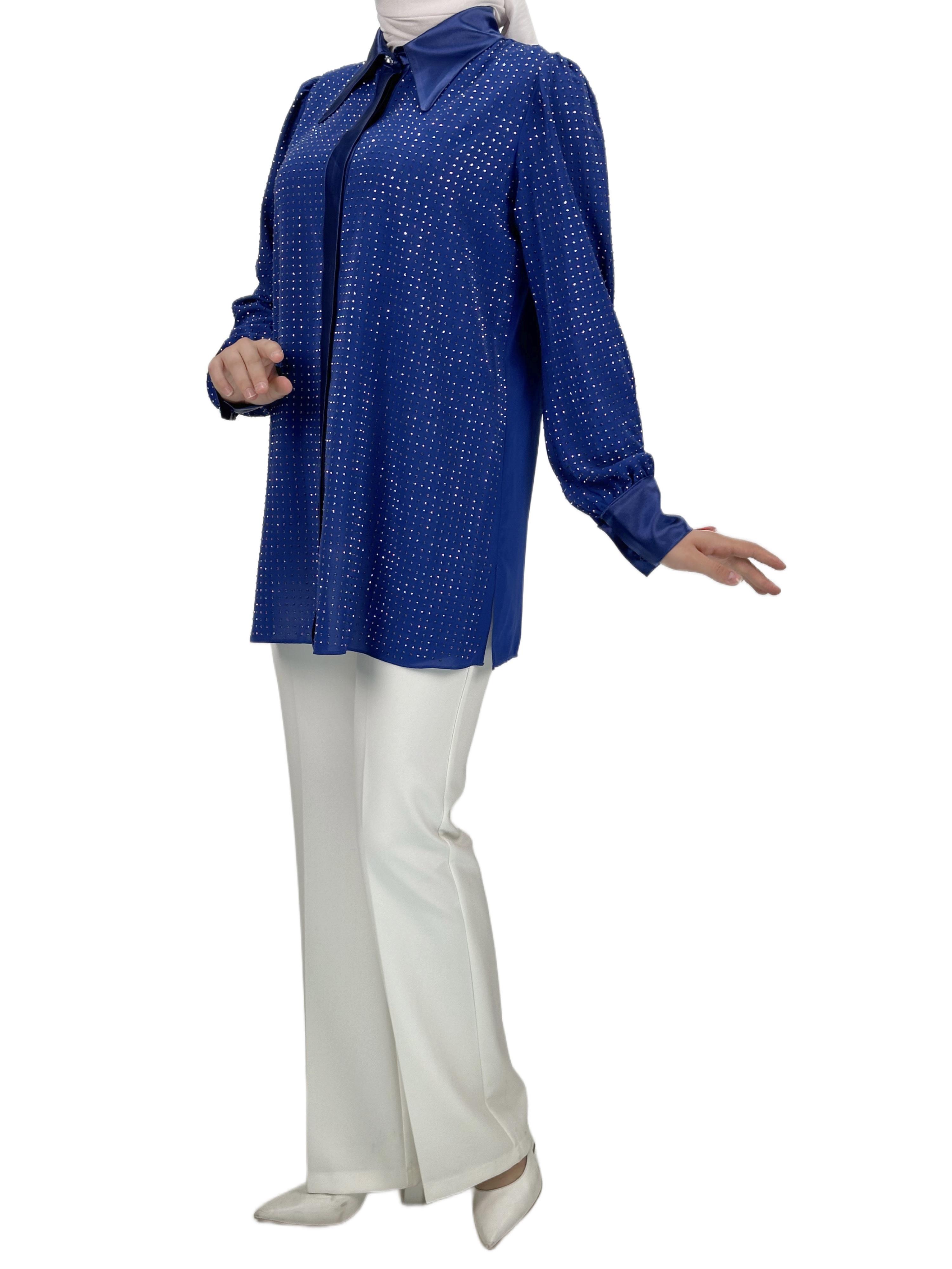 Taşlı Gömlek Saks OTW40429
