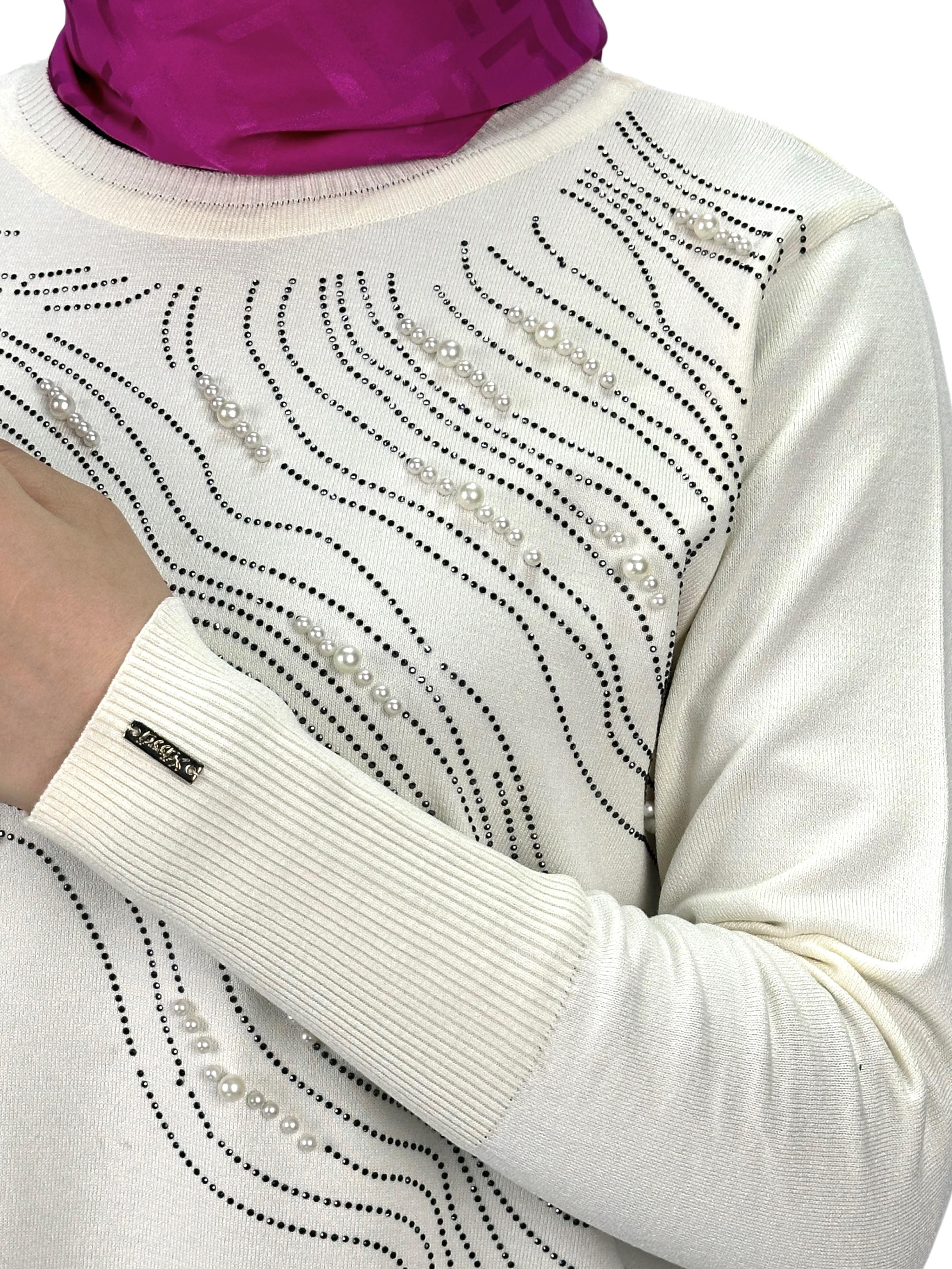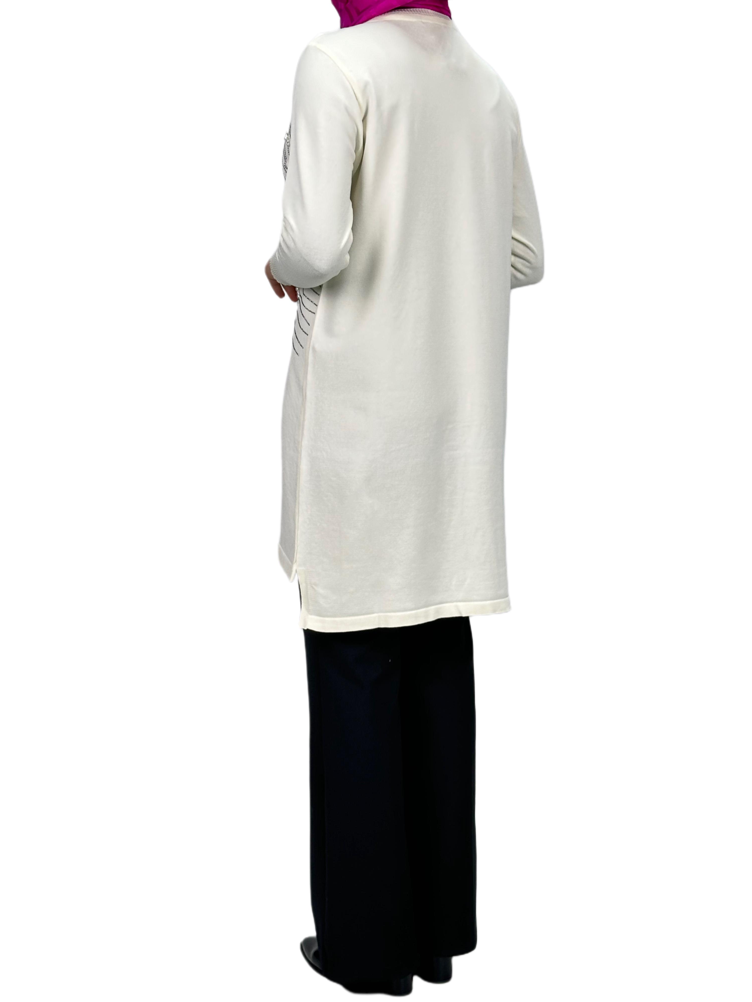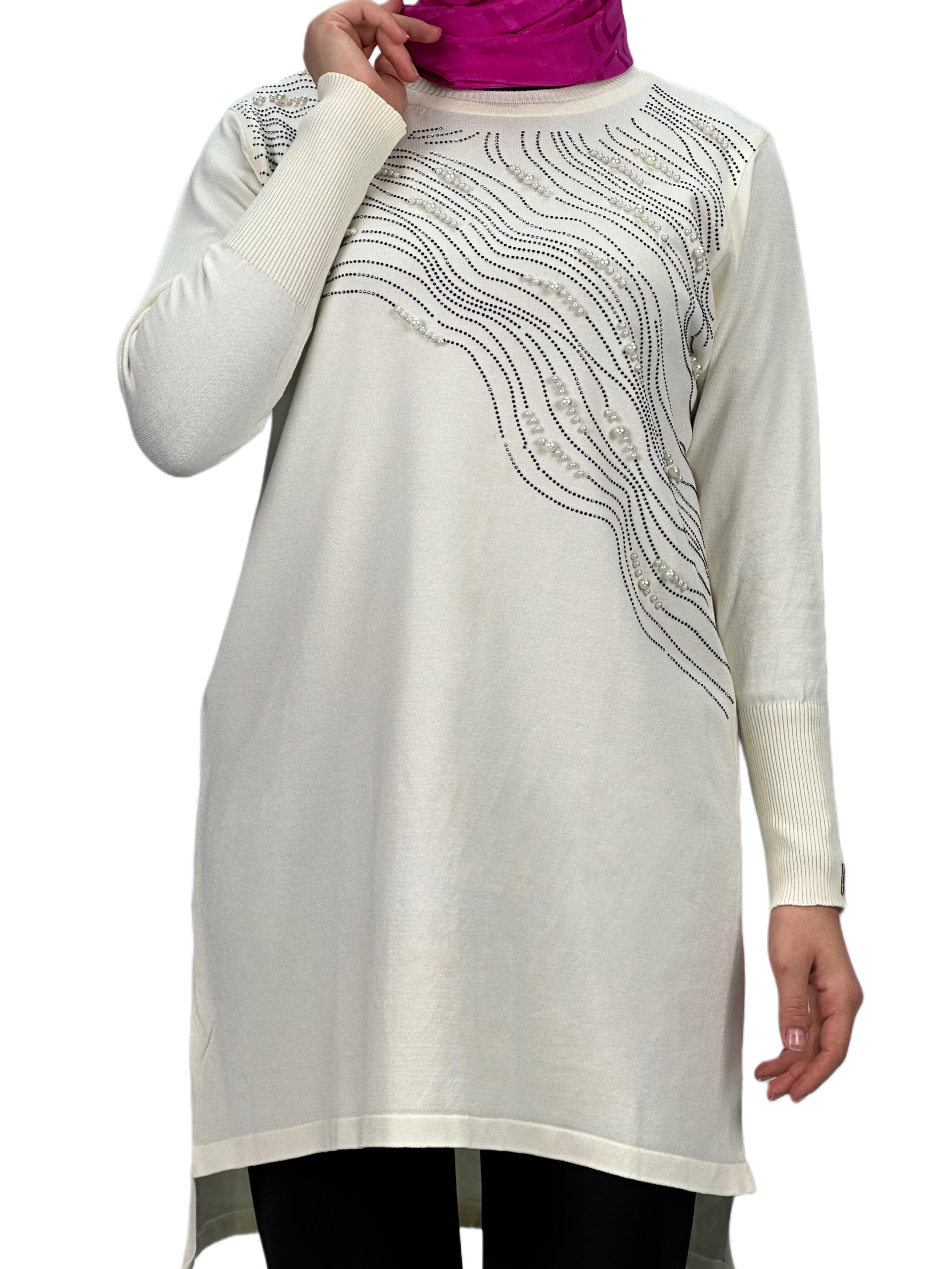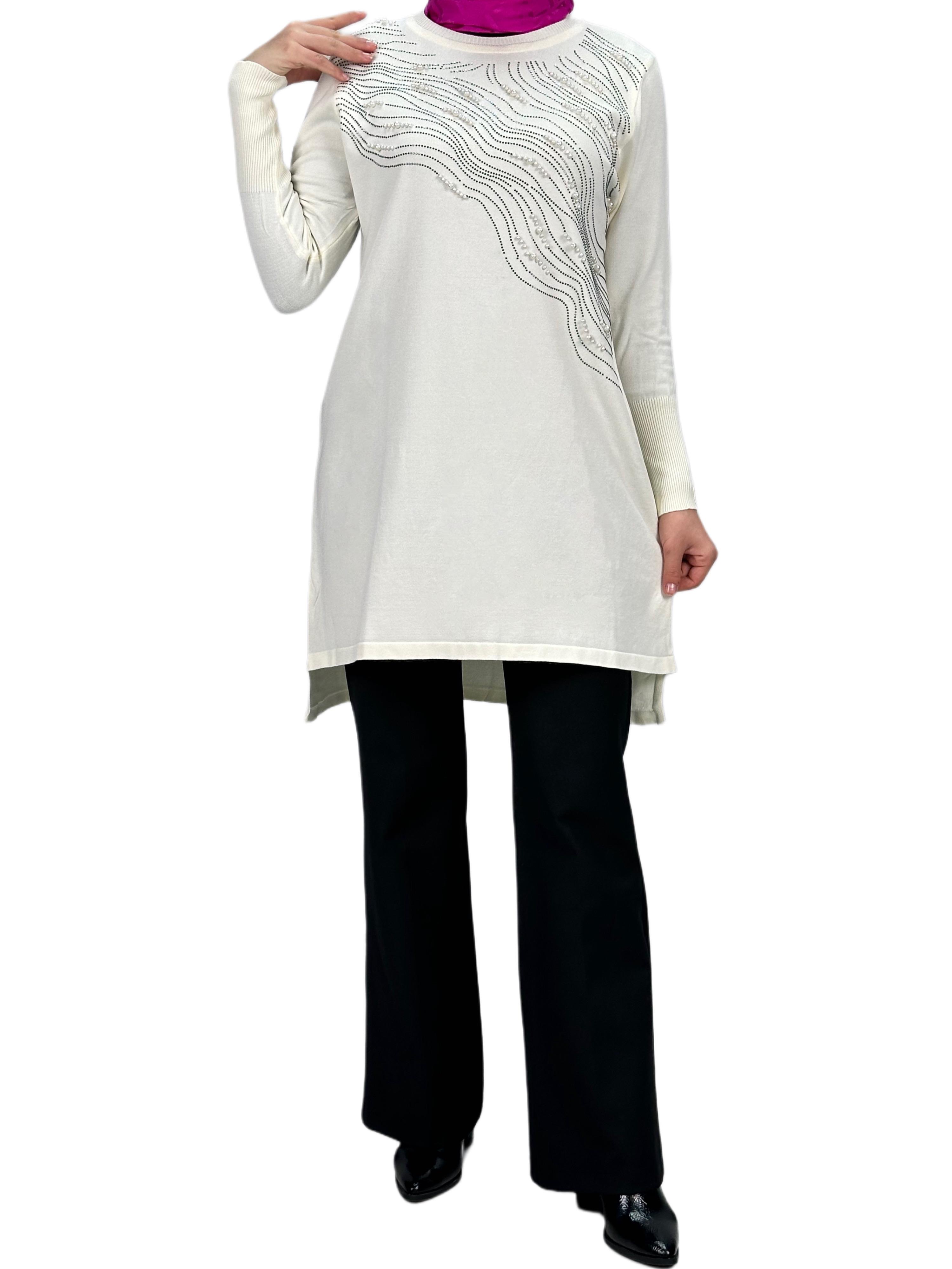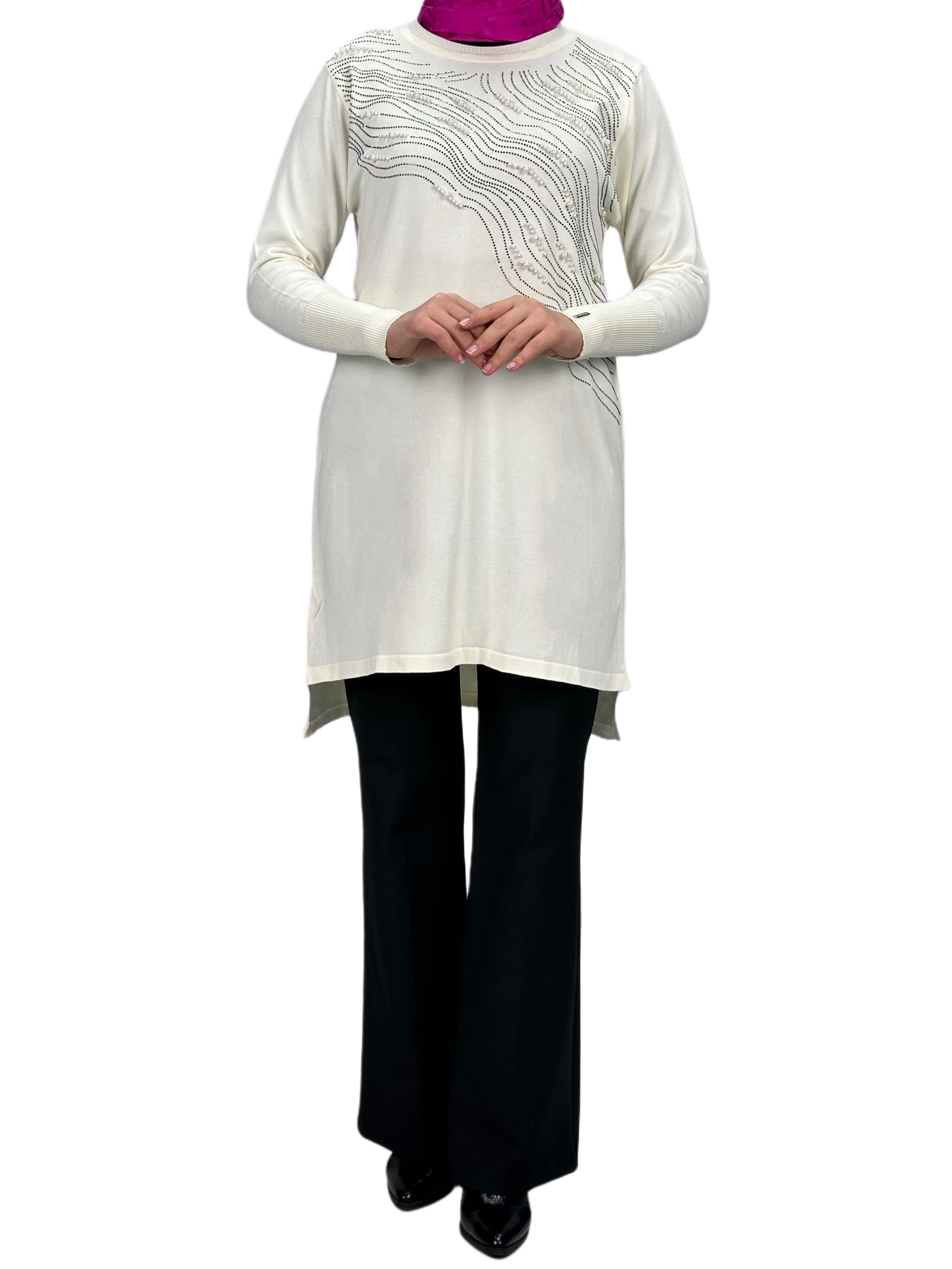 Taşlı Merserize Triko Tunik Ekru OTW121