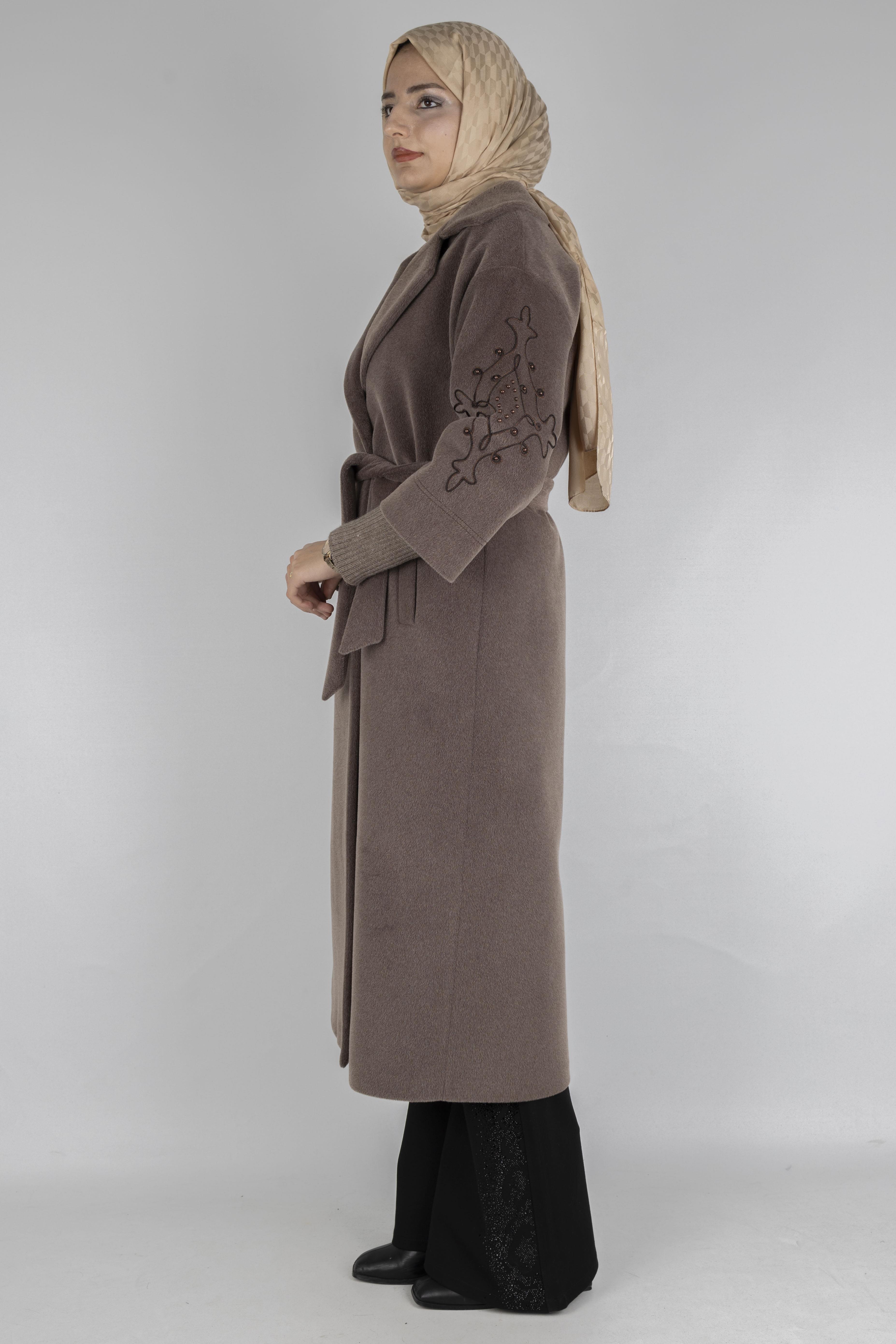 Yumuşacık angora dokusu ve astarlı yapısıyla kış sezonunda maksimum sıcaklık sunan bu kaban, 38–48 beden aralığında özel kalıbıyla hem rahat hem de şık bir kullanım sağlar. Triko ribanalı kol detayı ve zarif işlemeleriyle model, tesettür ve büyük beden giyimde modern bir duruş yaratır. Kuşaklı tasarımı vücut hatlarını daha ince gösterirken, uzun kesimi ile tam kapanış sağlar. Günlük kombinlerde, ofis stilinde veya özel günlerde rahatlıkla tercih edilebilecek zamansız bir parçadır.