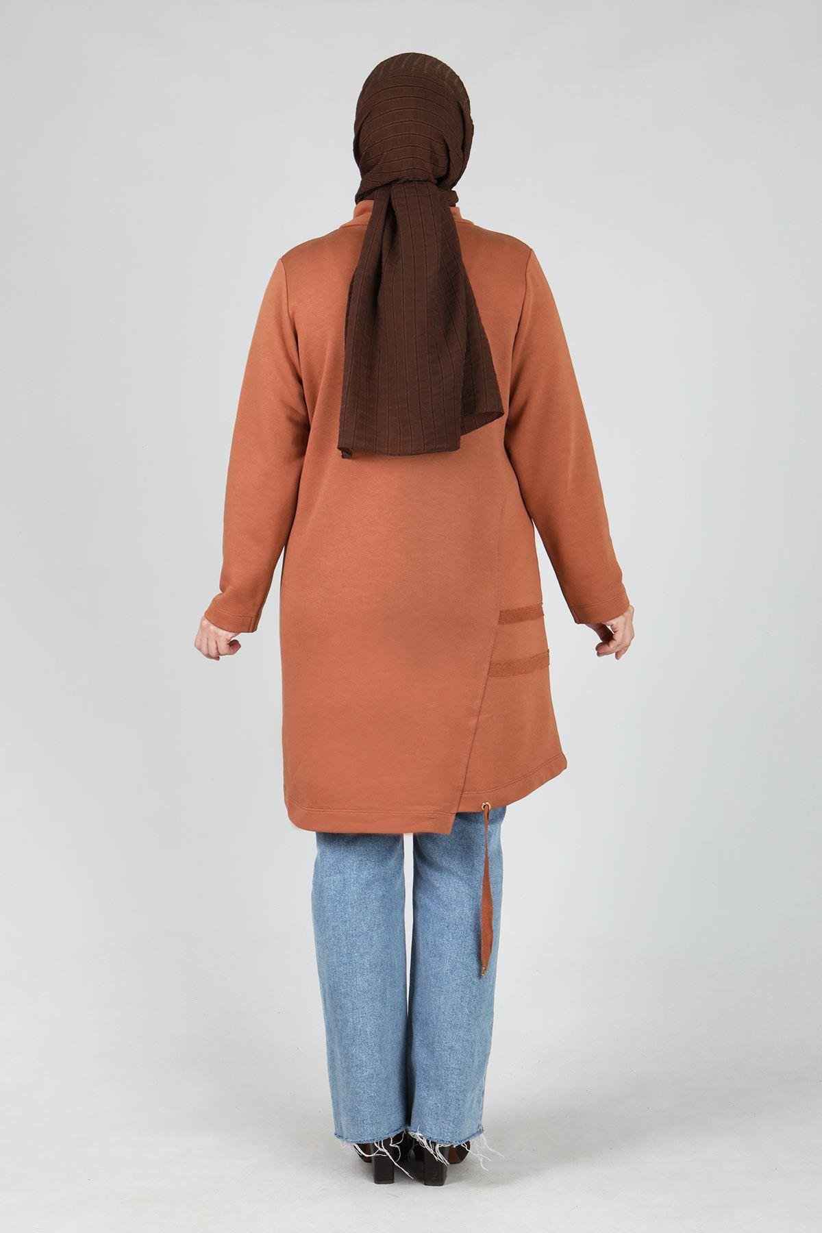 Ürün Detayları: Dik Yaka Asimetrik Kesim Ürünümüz Zincirli Şerit Detayı ile Hareketlendirilmiştir.