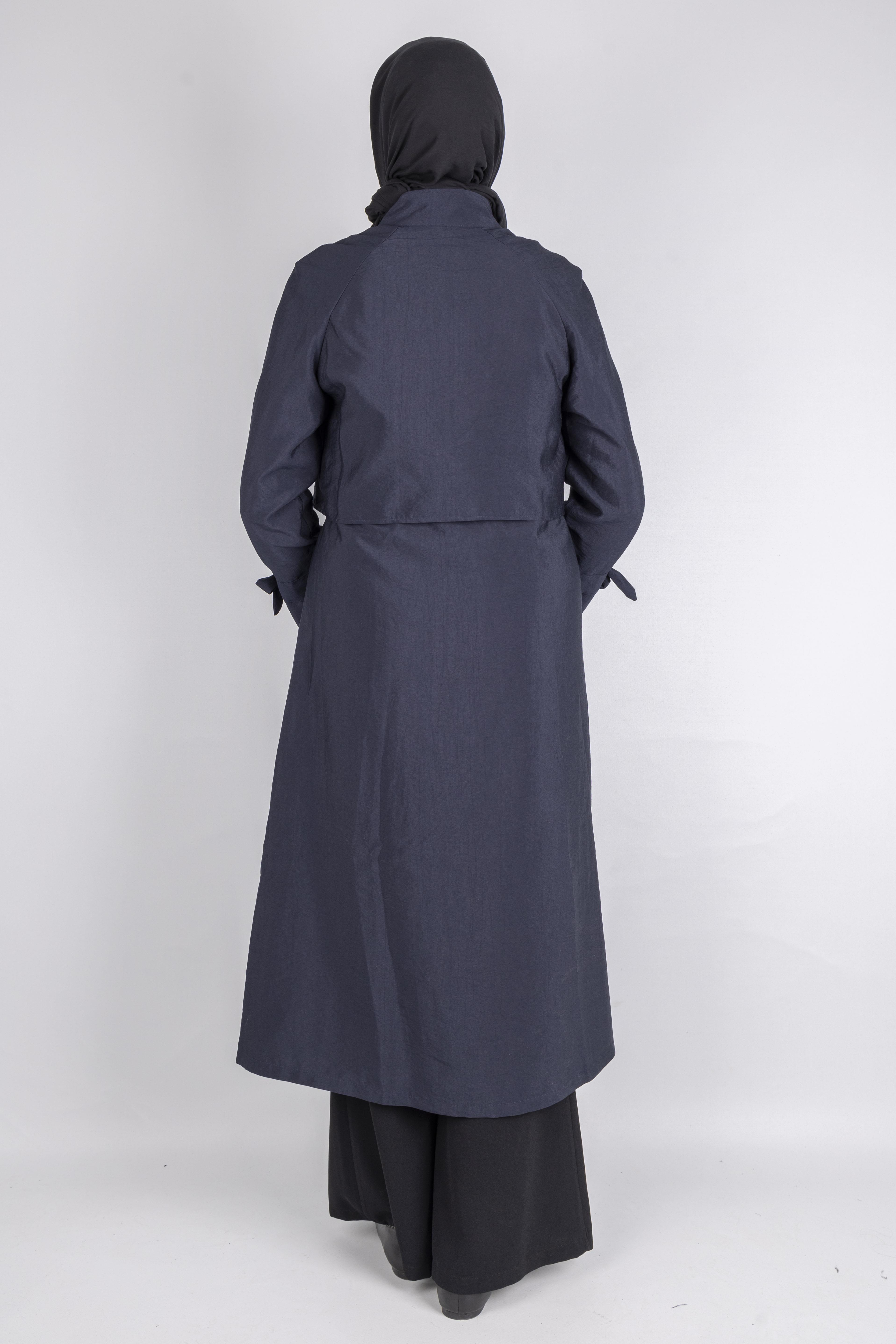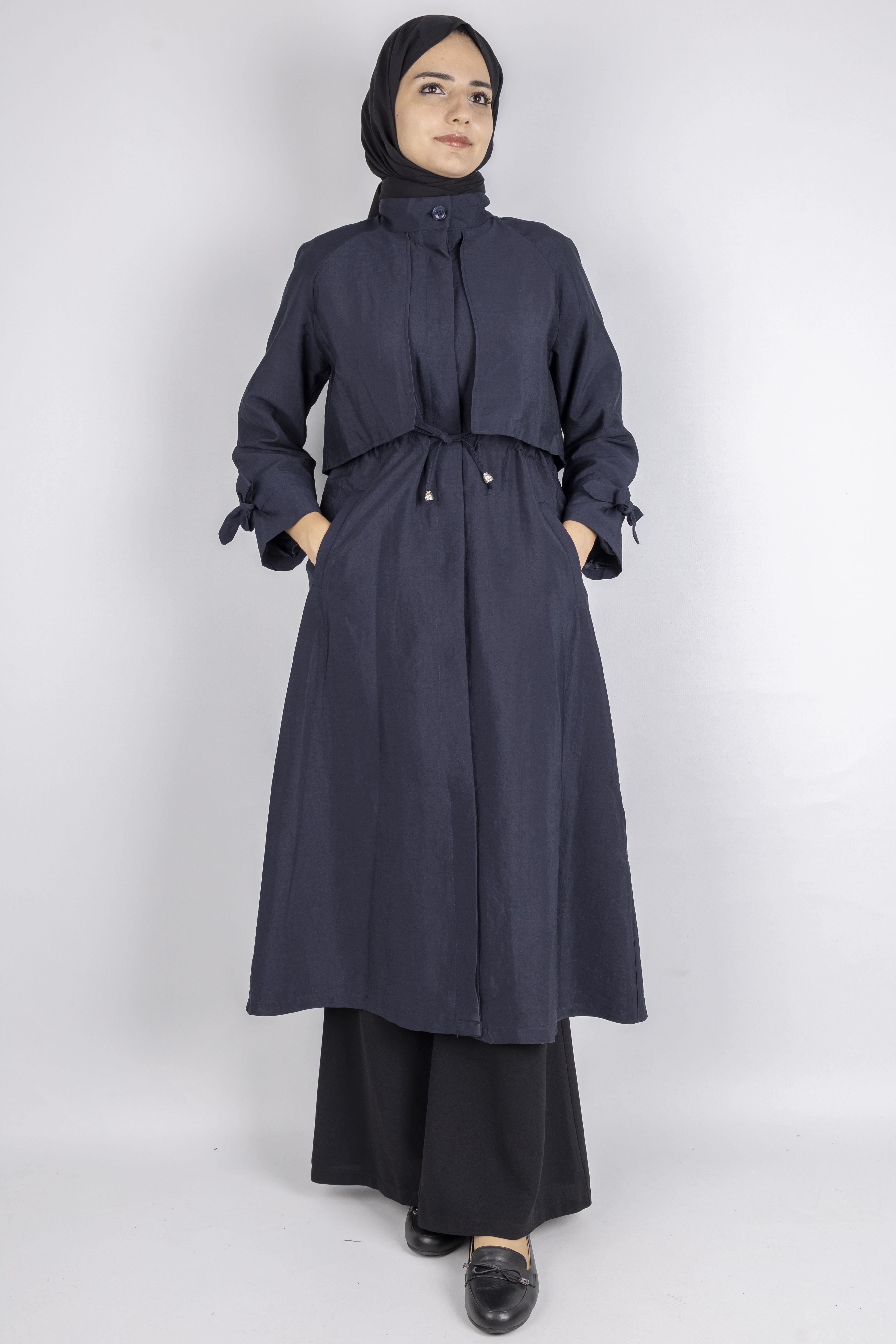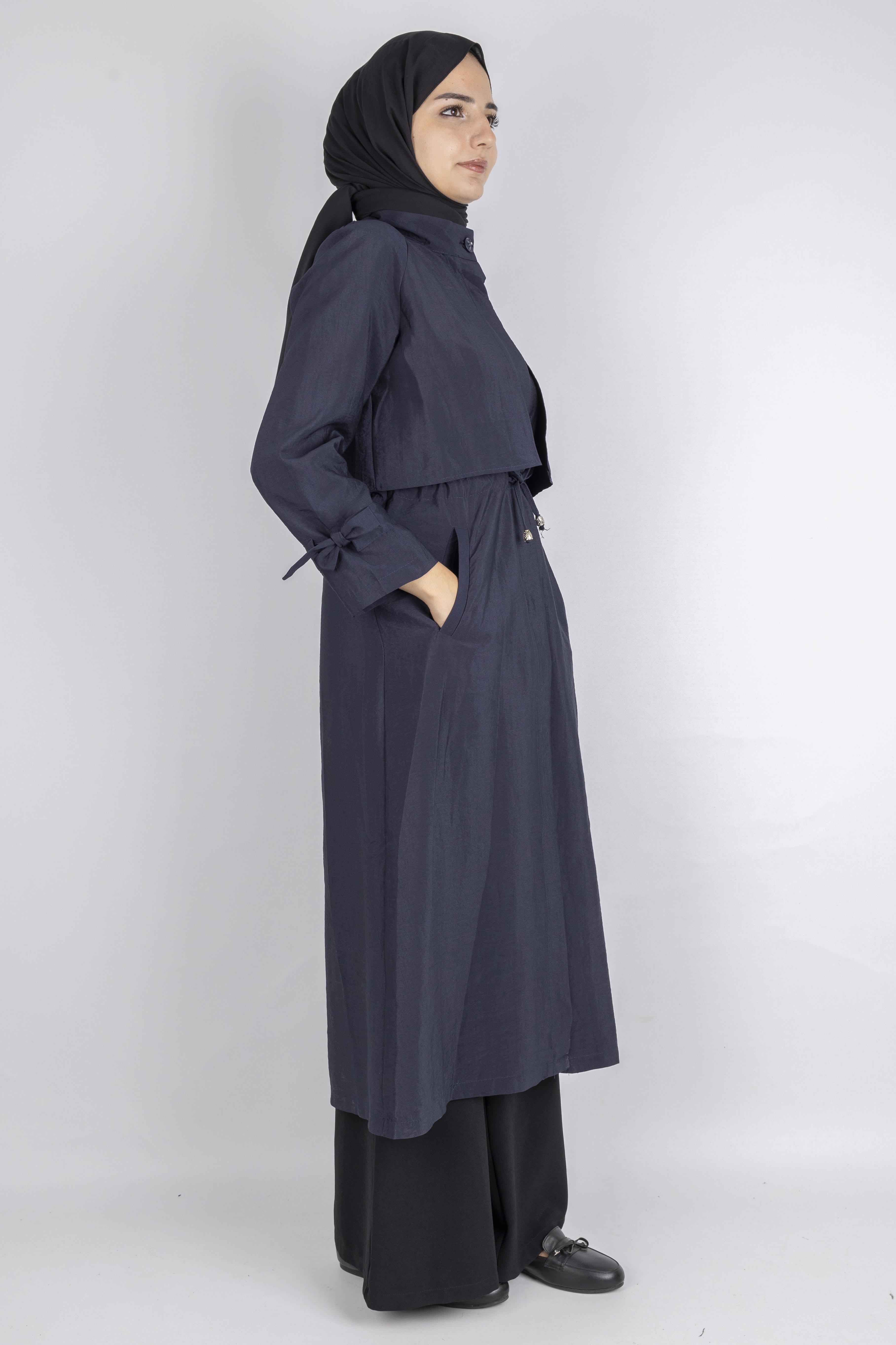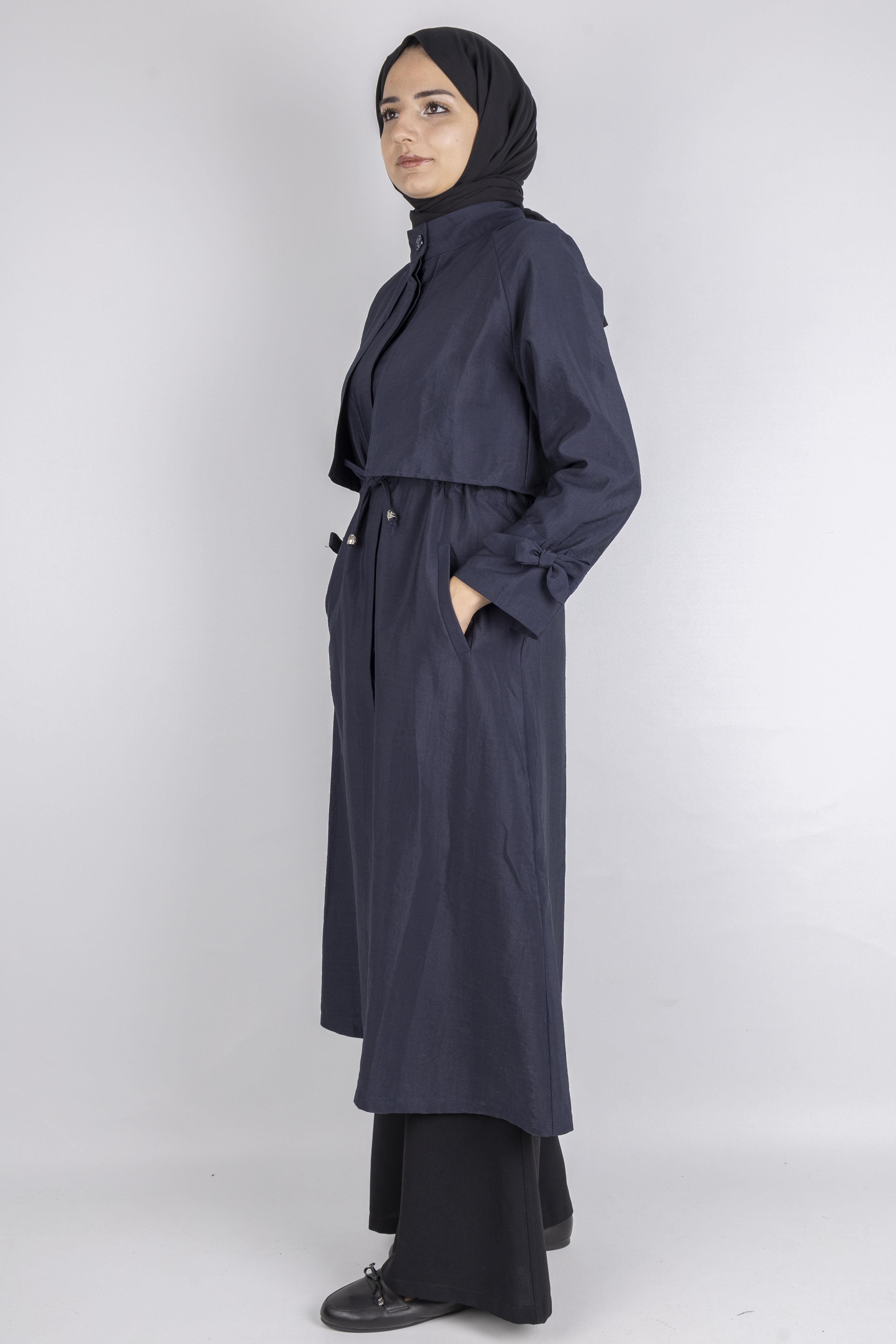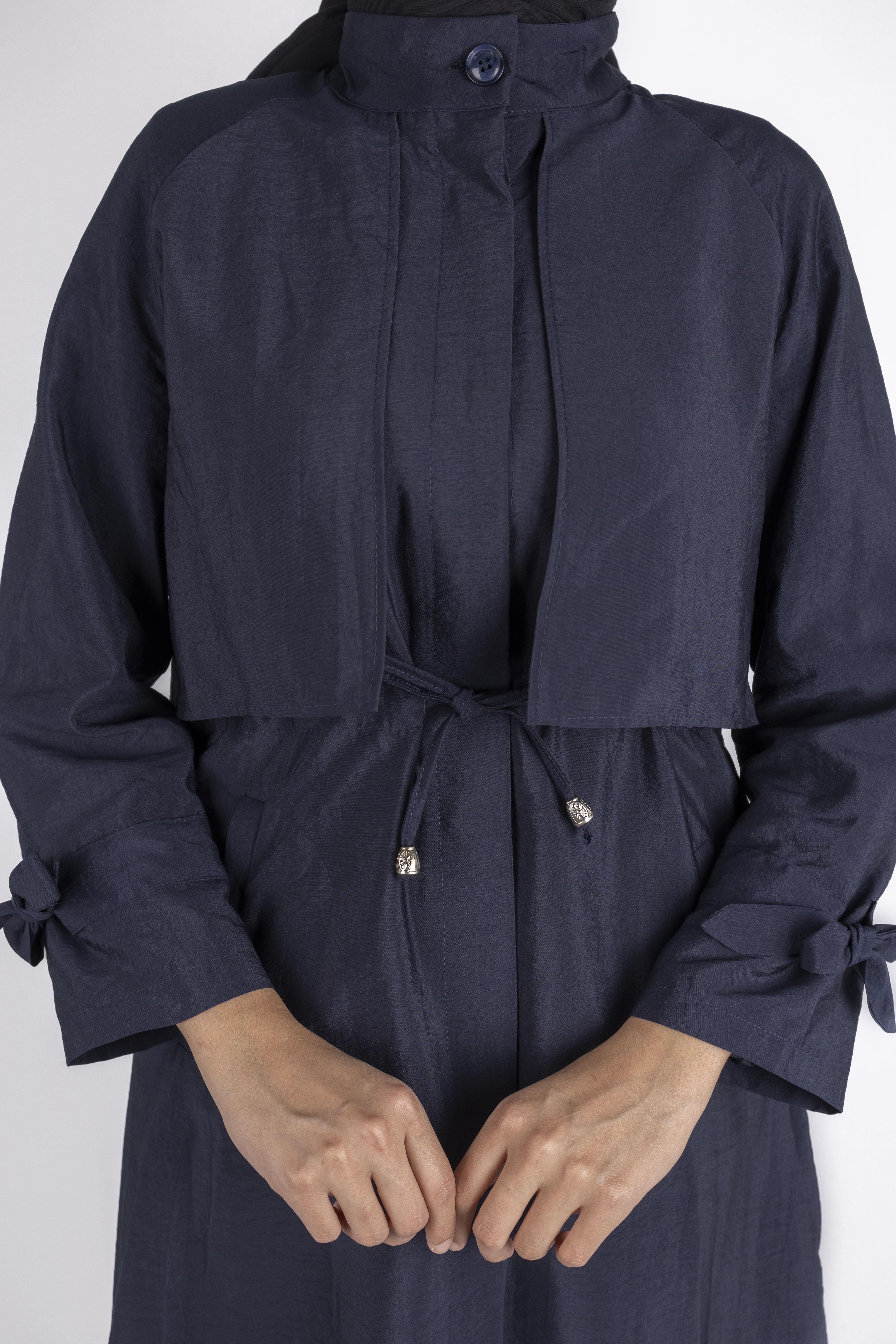Üst Kapak Detaylı Kuşaklı Trençkot Lacivert OTW4176