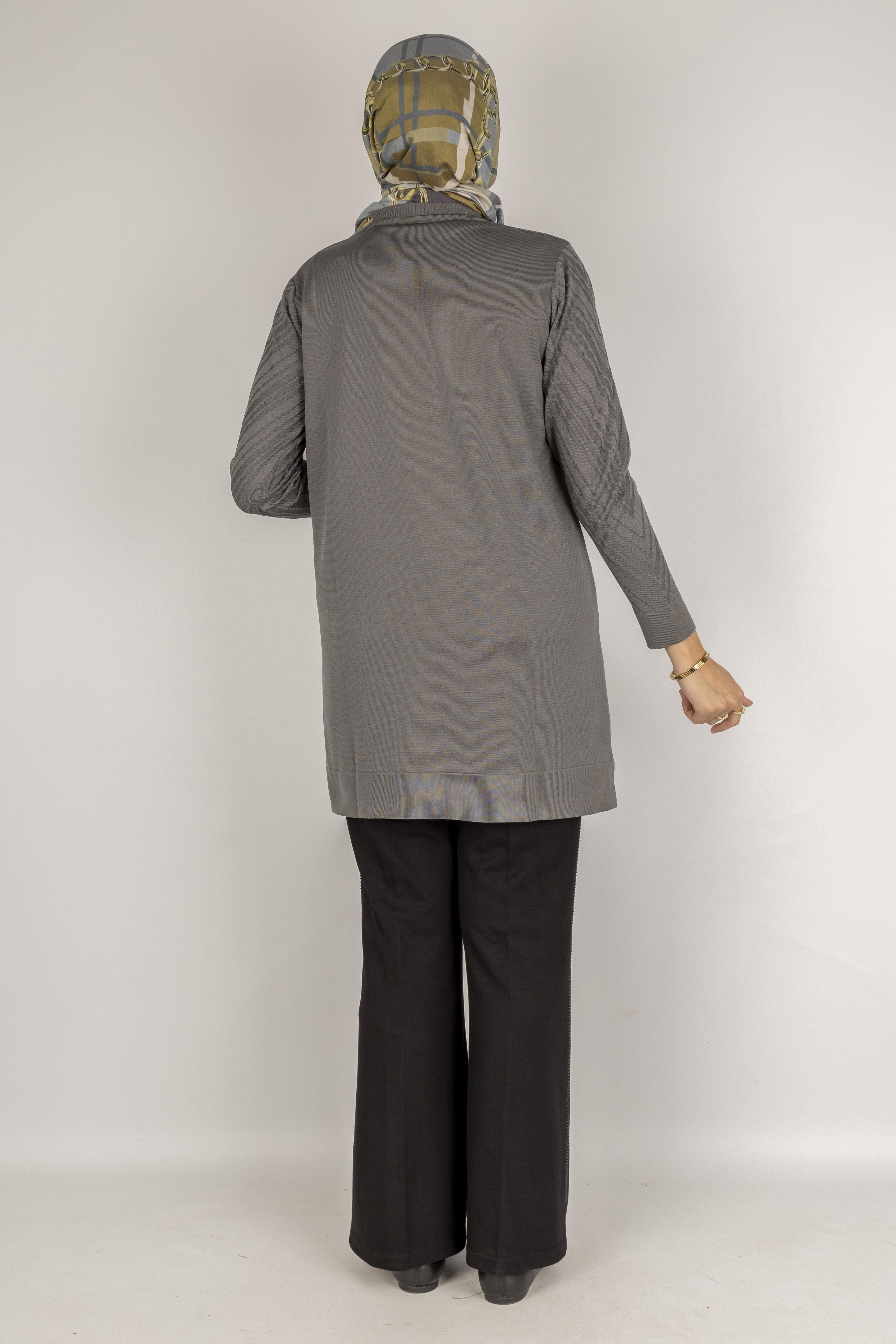 V Desenli Tesettür Merserize Tunik Gri OTW1035