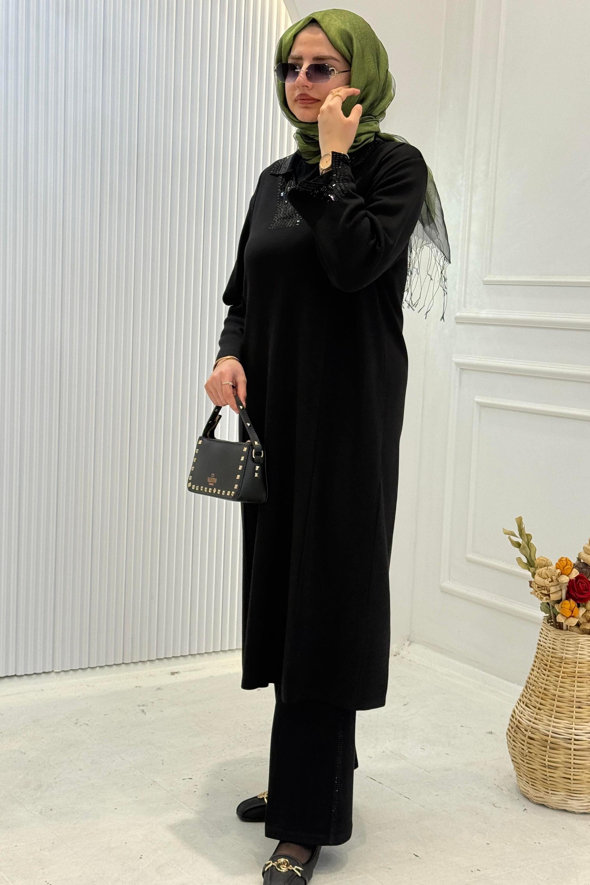 Çelik örme kumaşıyla dökümlü duruş sunan bu büyük beden tunik, rahat kalıbı ve zamansız tasarımıyla günlük ve klasik kombinler için idealdir. V yaka detayı şıklık katarken, esnek yapısı gün boyu konfor sağlar.