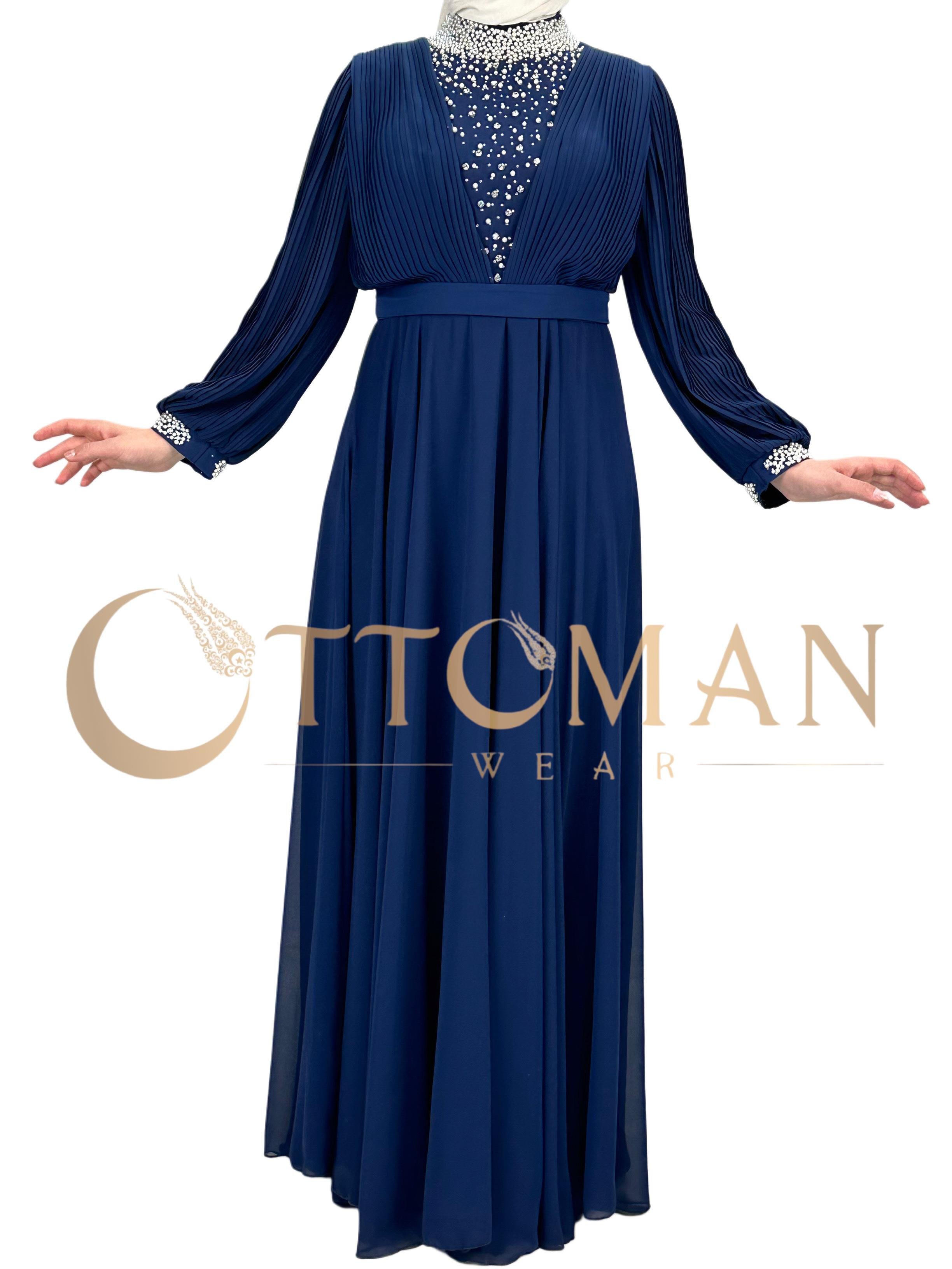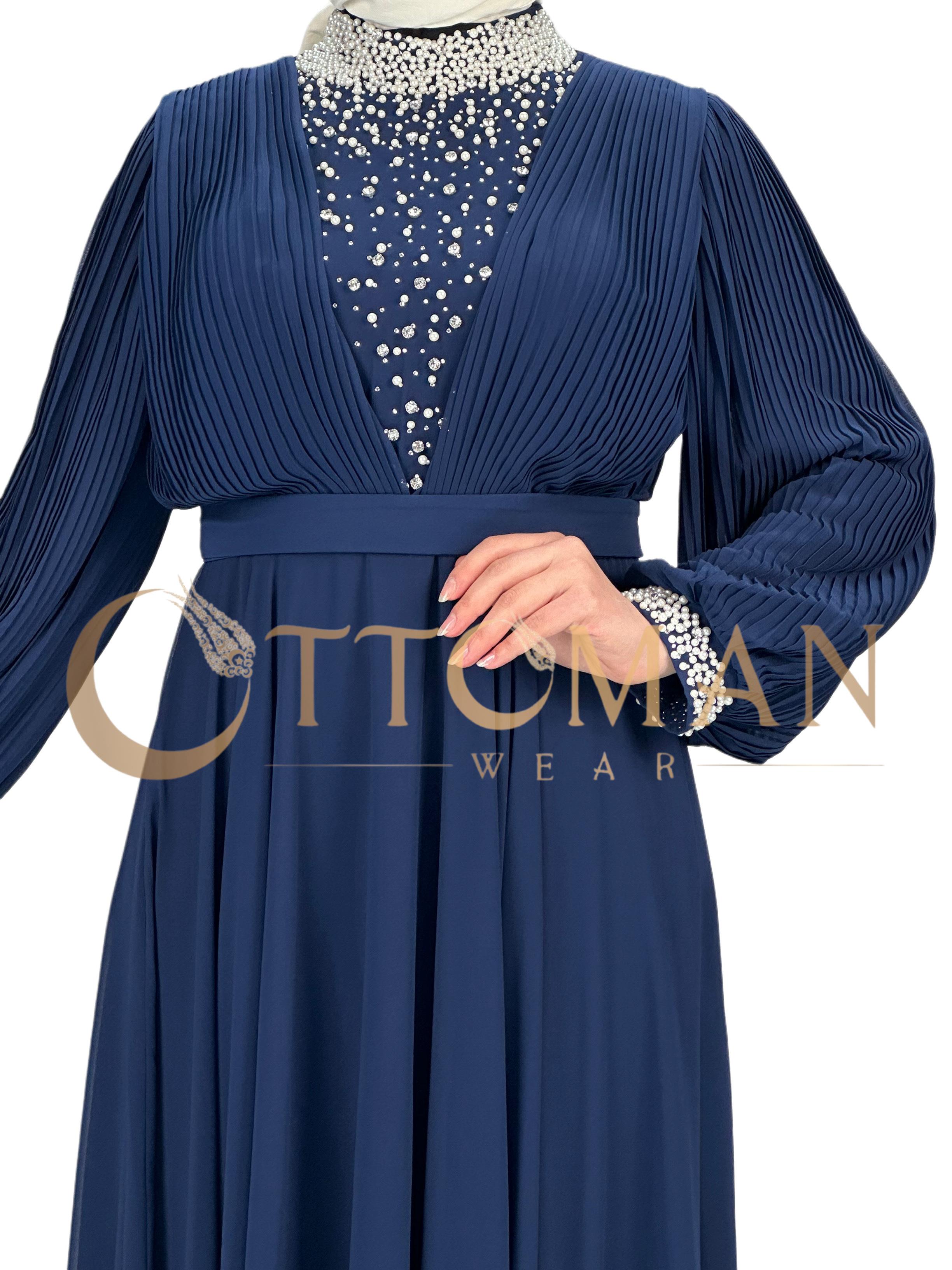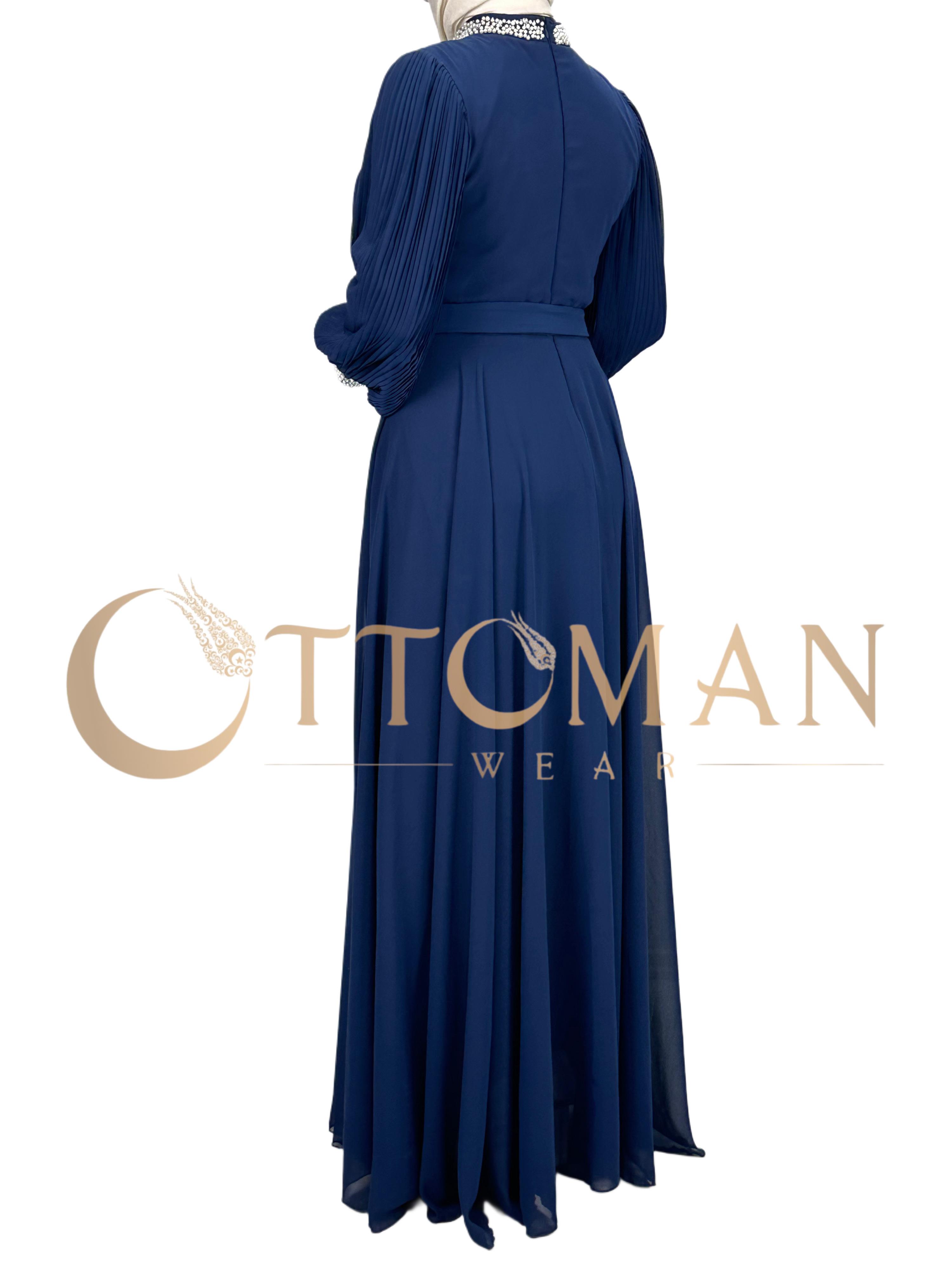 Yakası Taşlı Abiye Elbise Lacivert OTW4620
