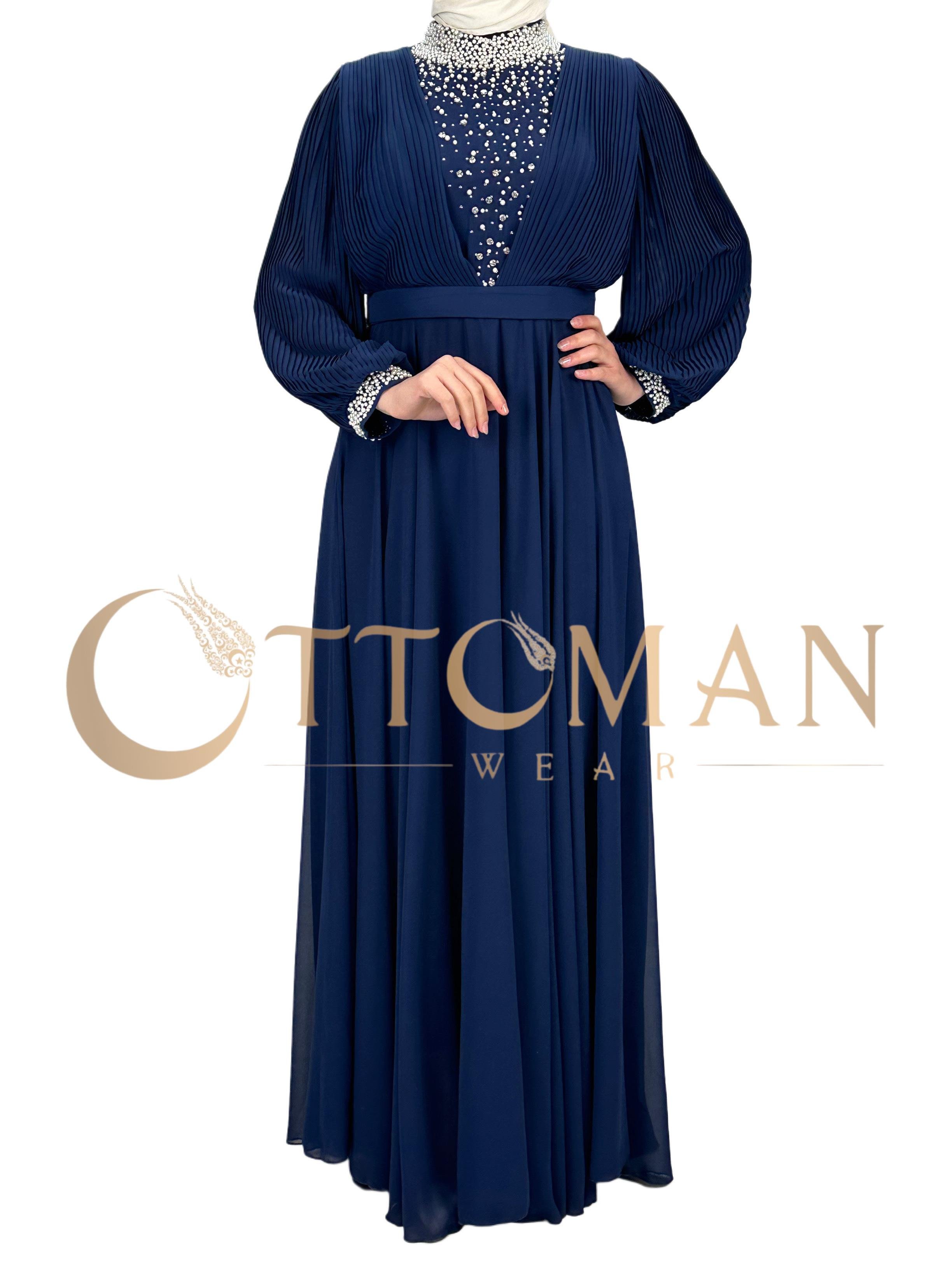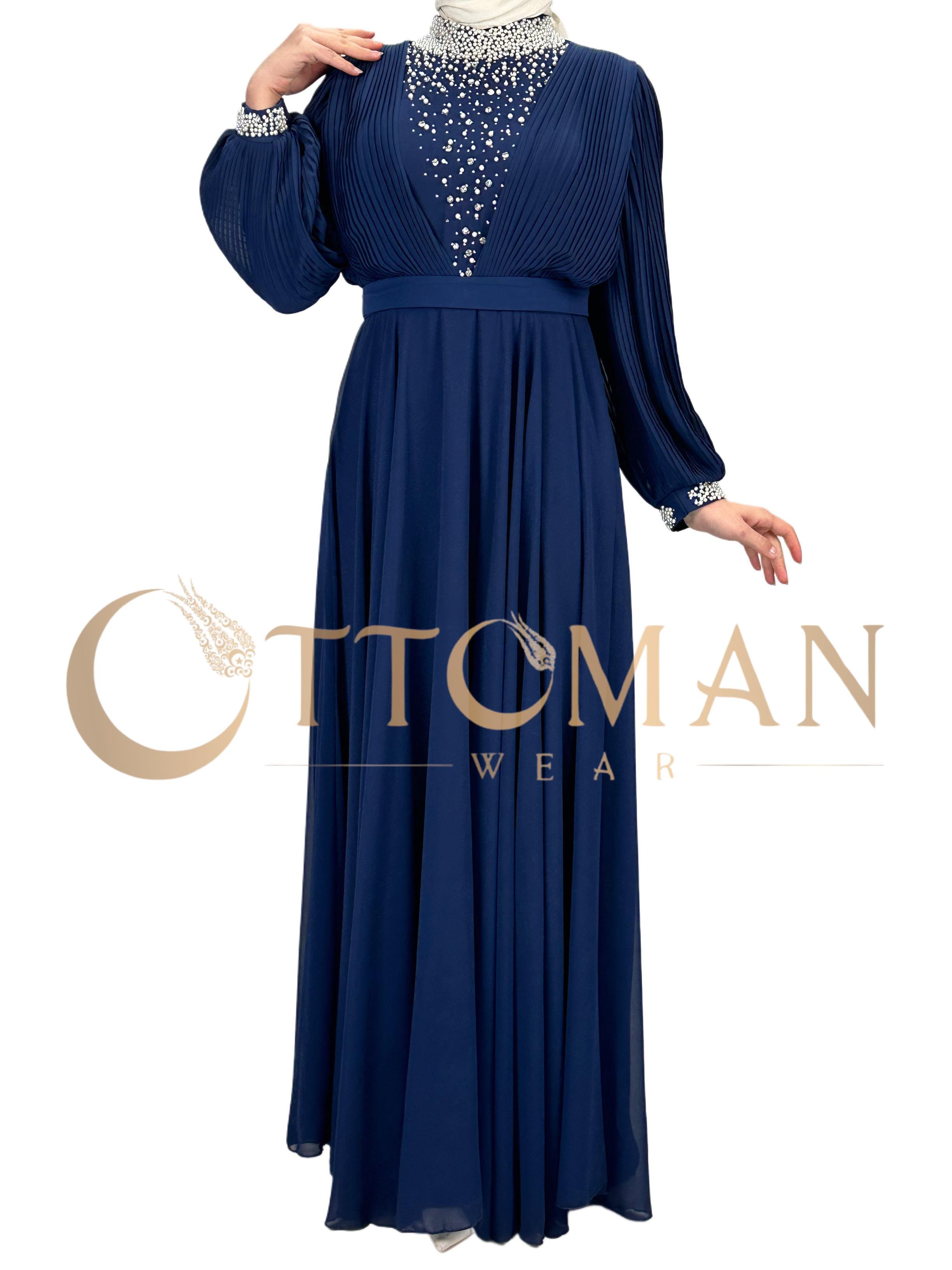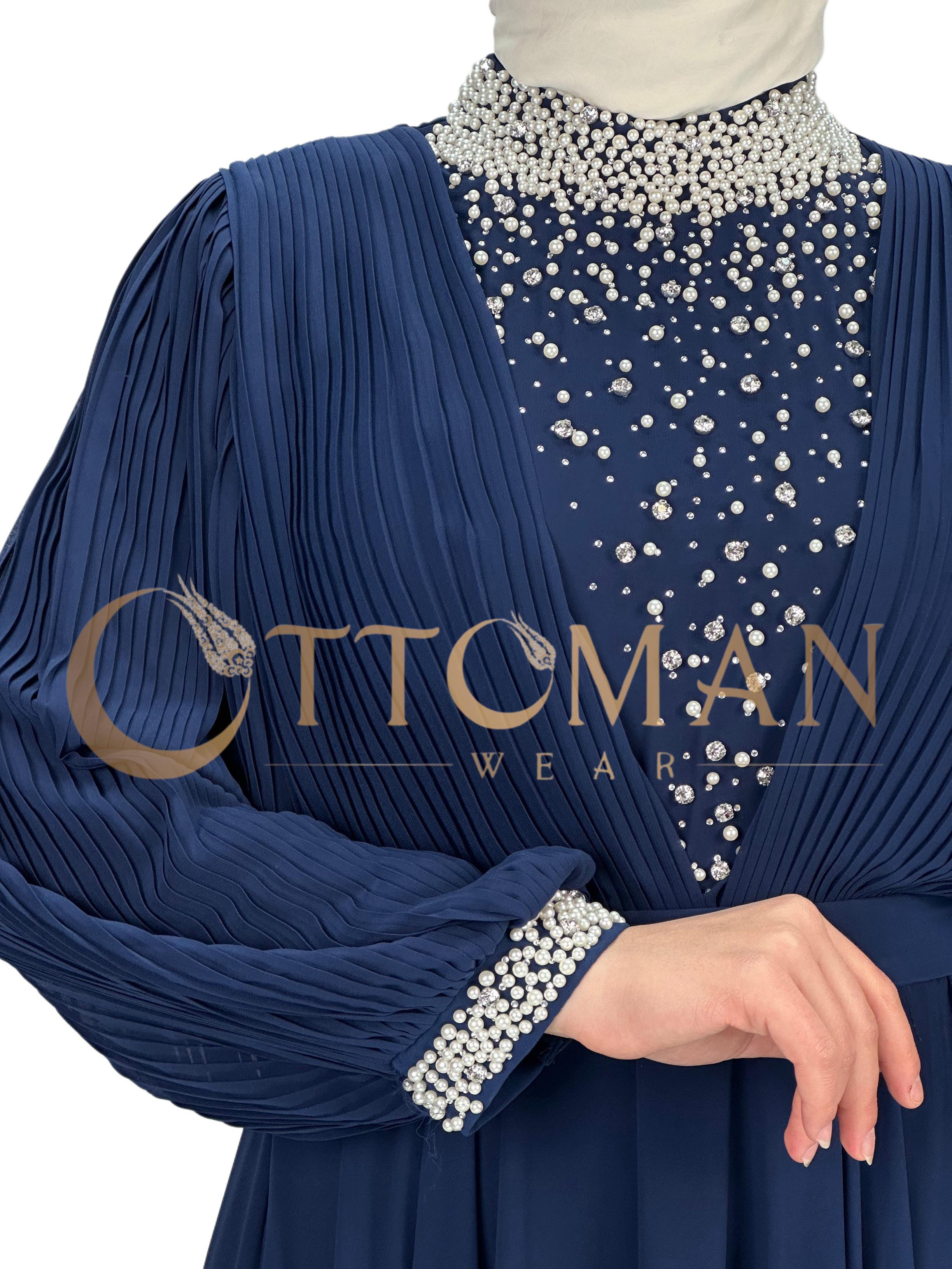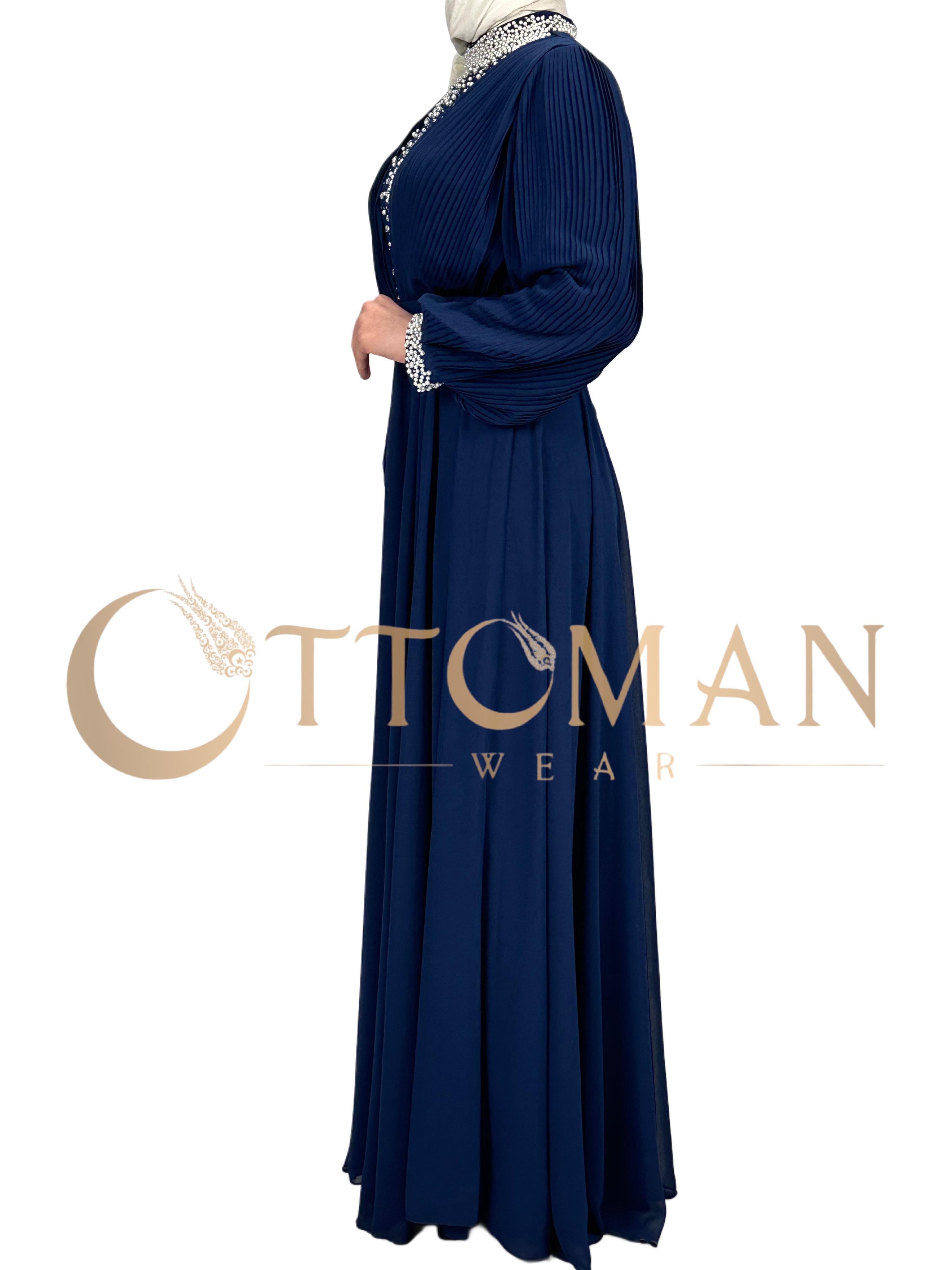 Yakası Taşlı Abiye Elbise Lacivert OTW4620
