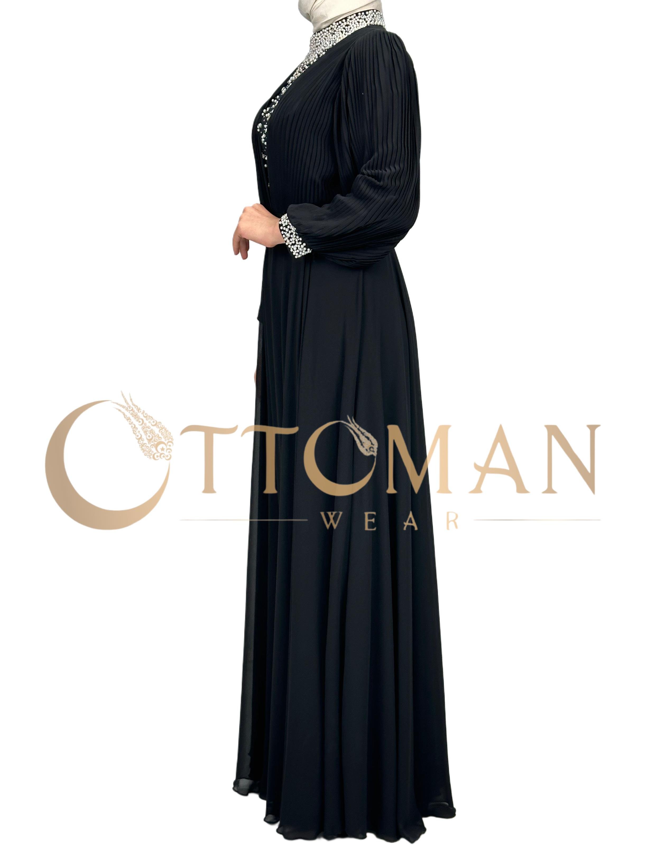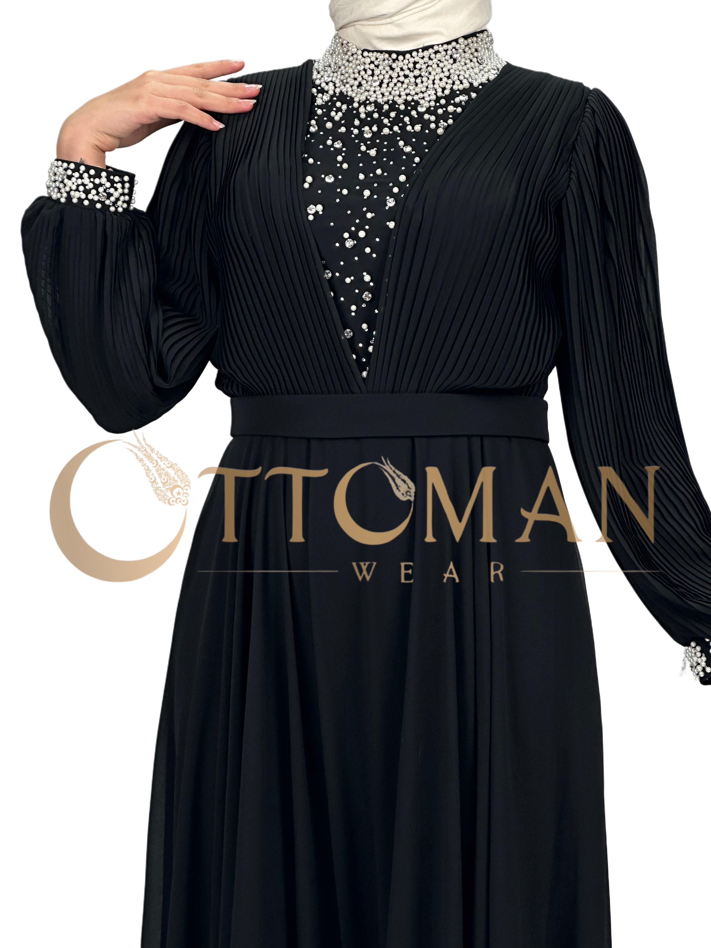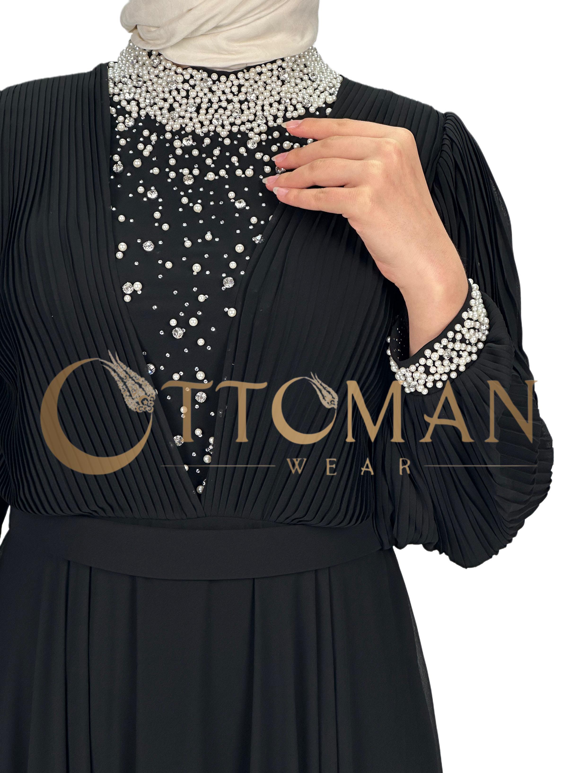 Yakası Taşlı Abiye Elbise Siyah OTW4620