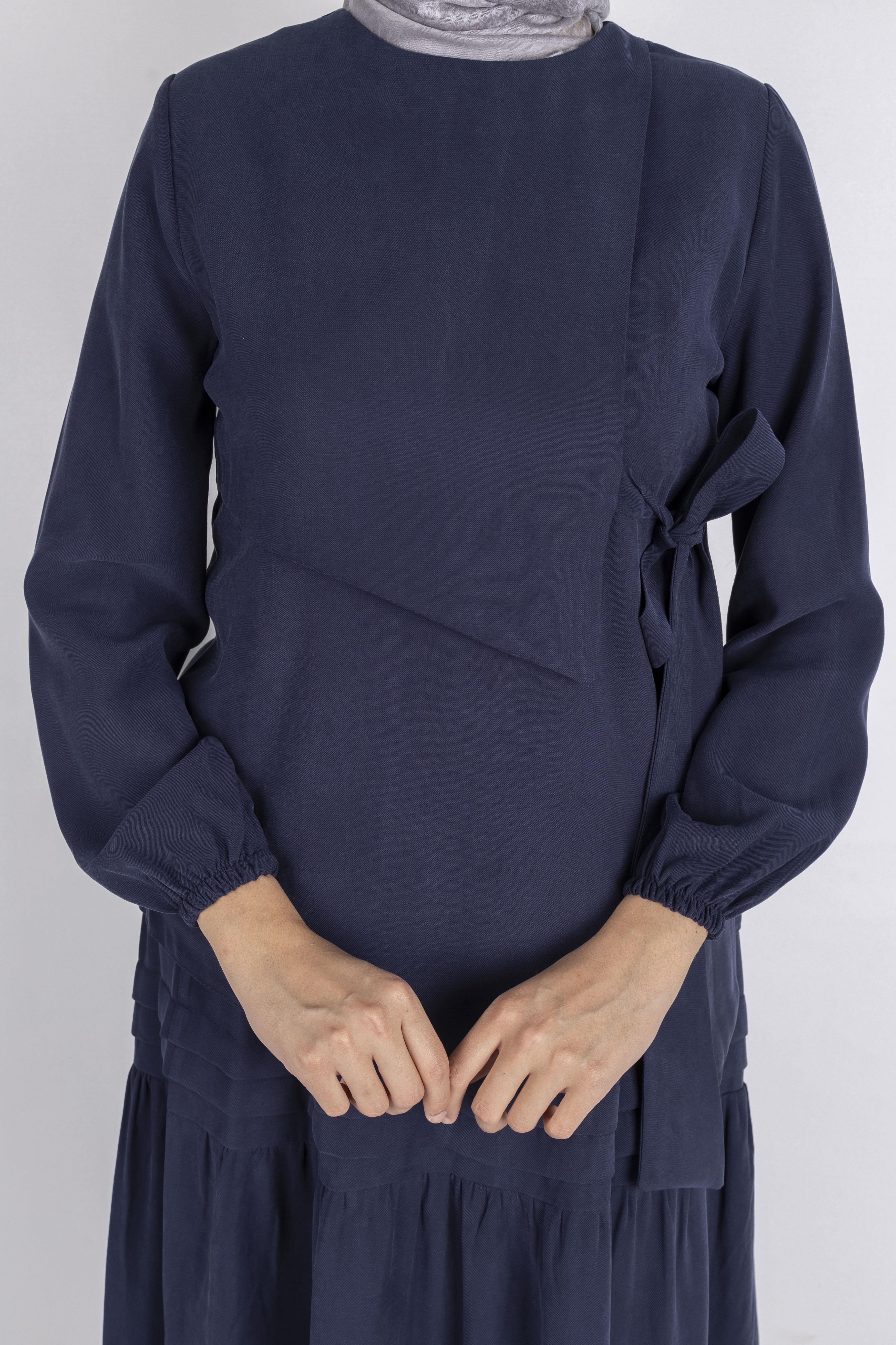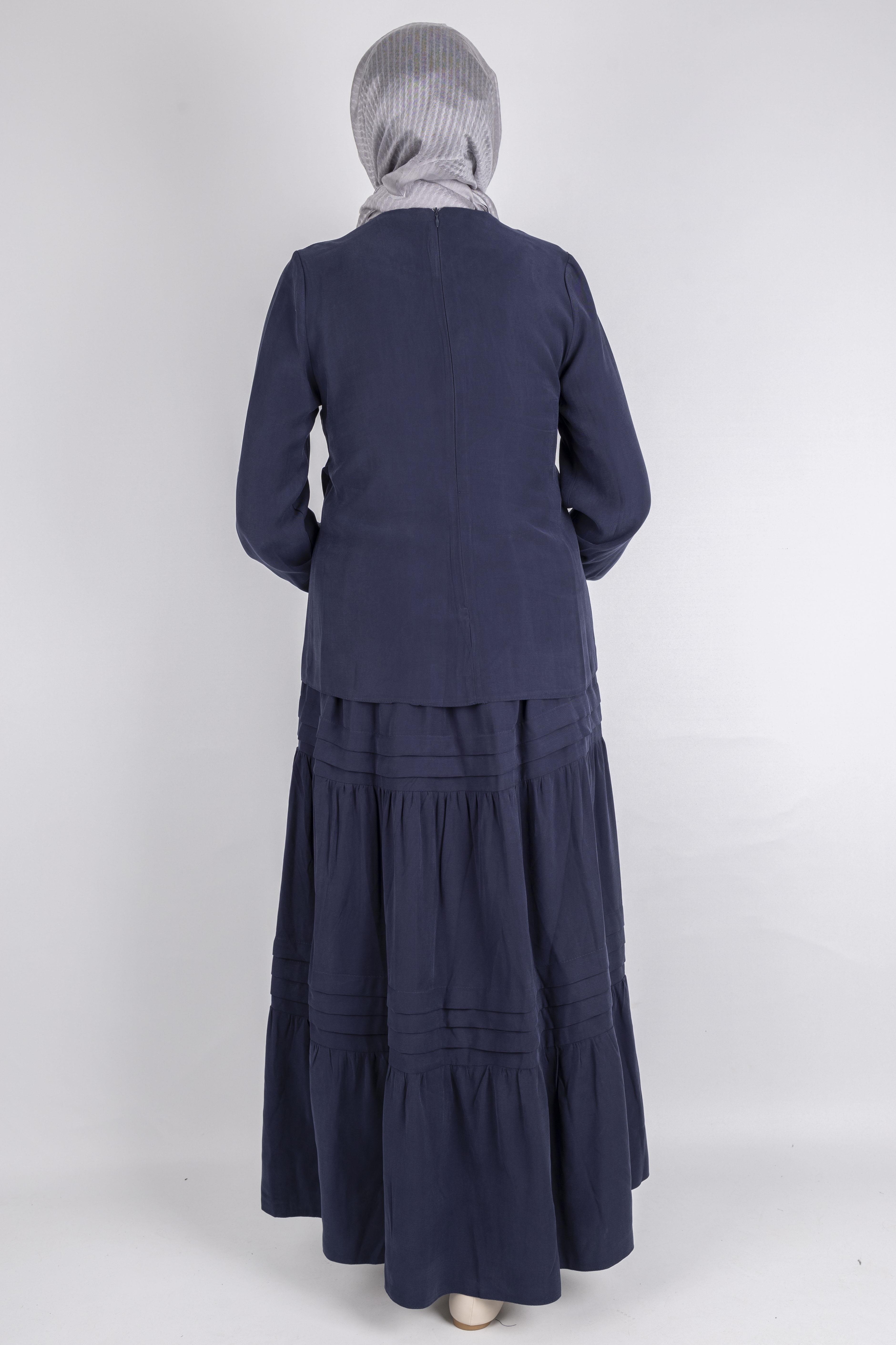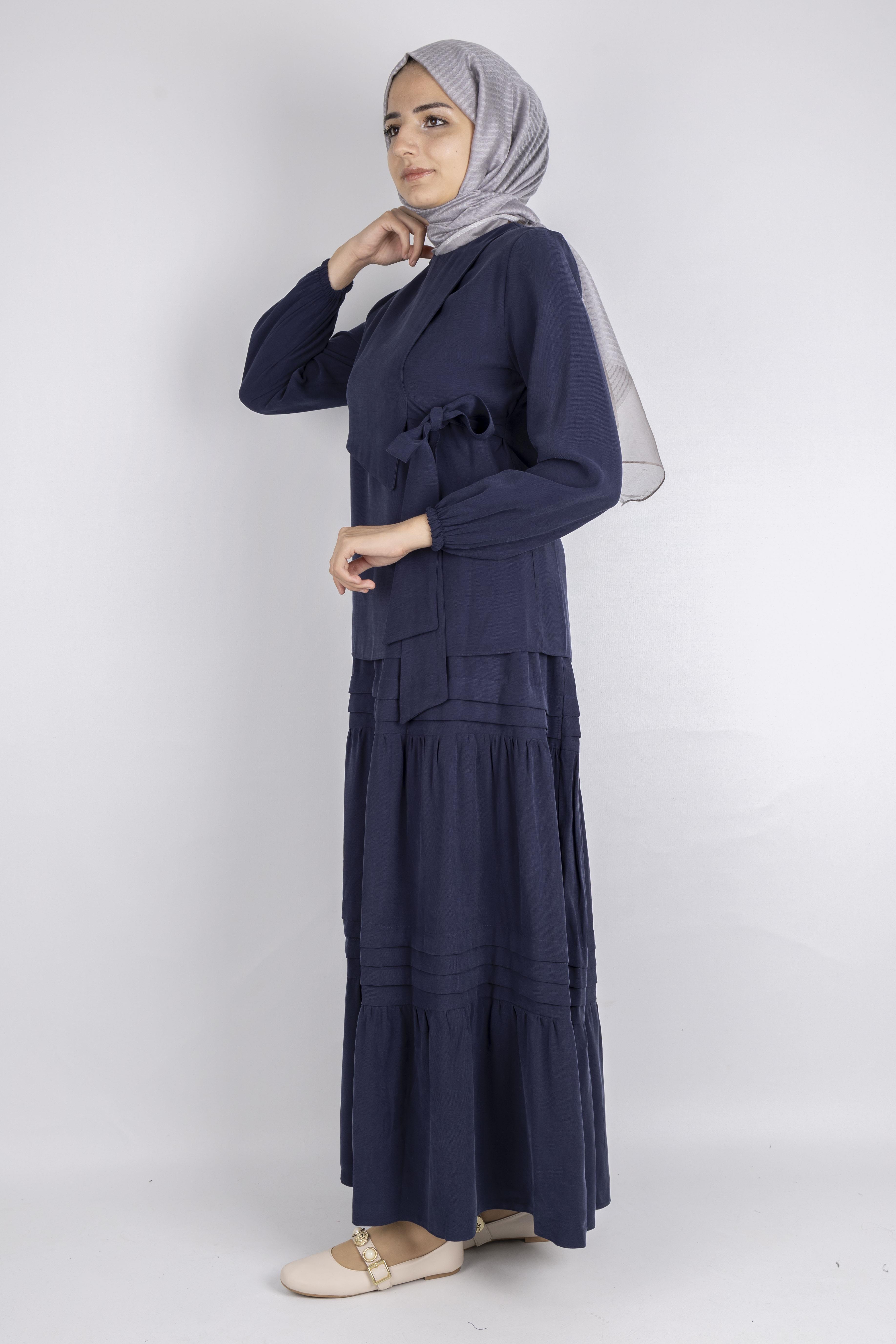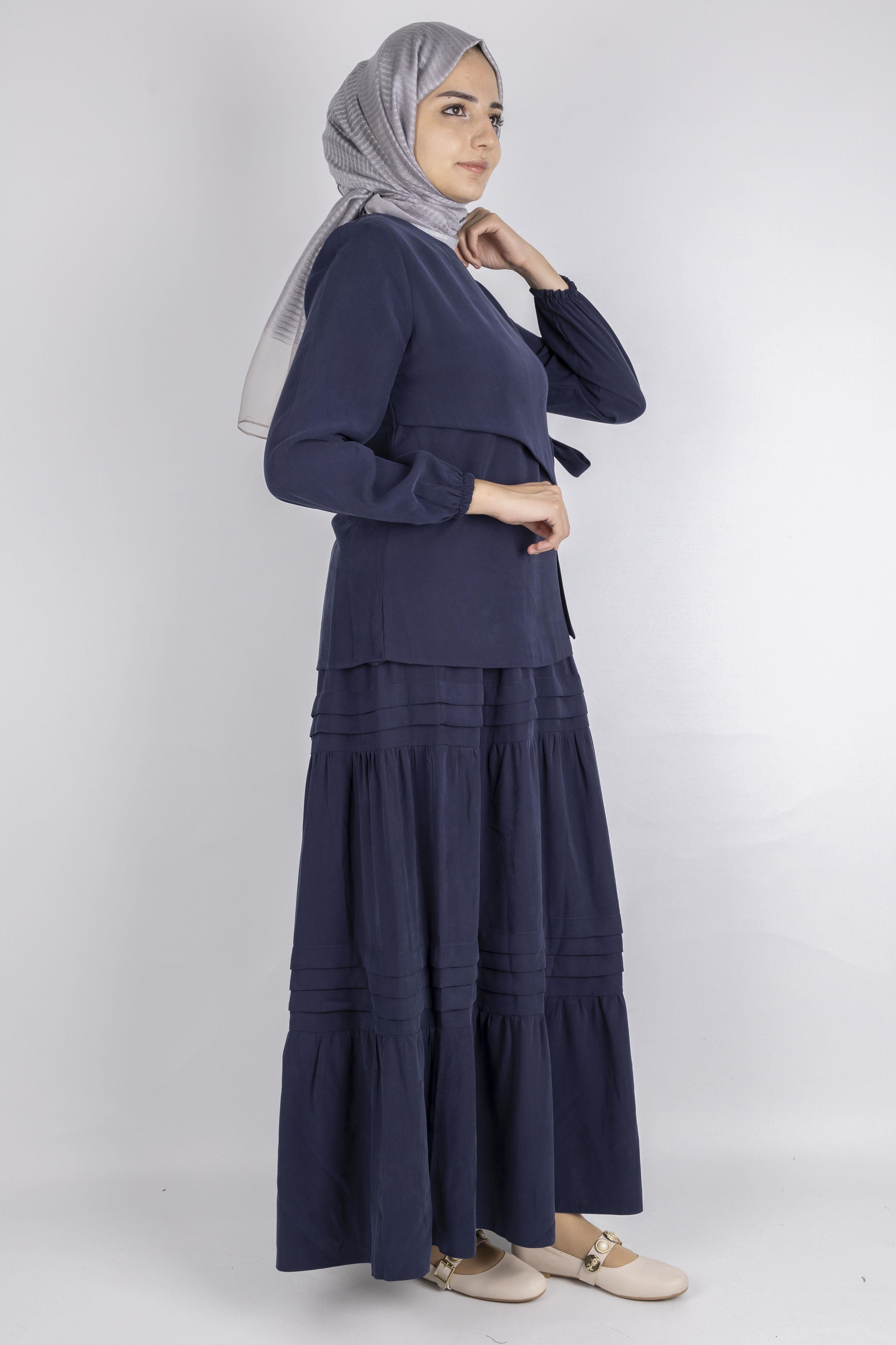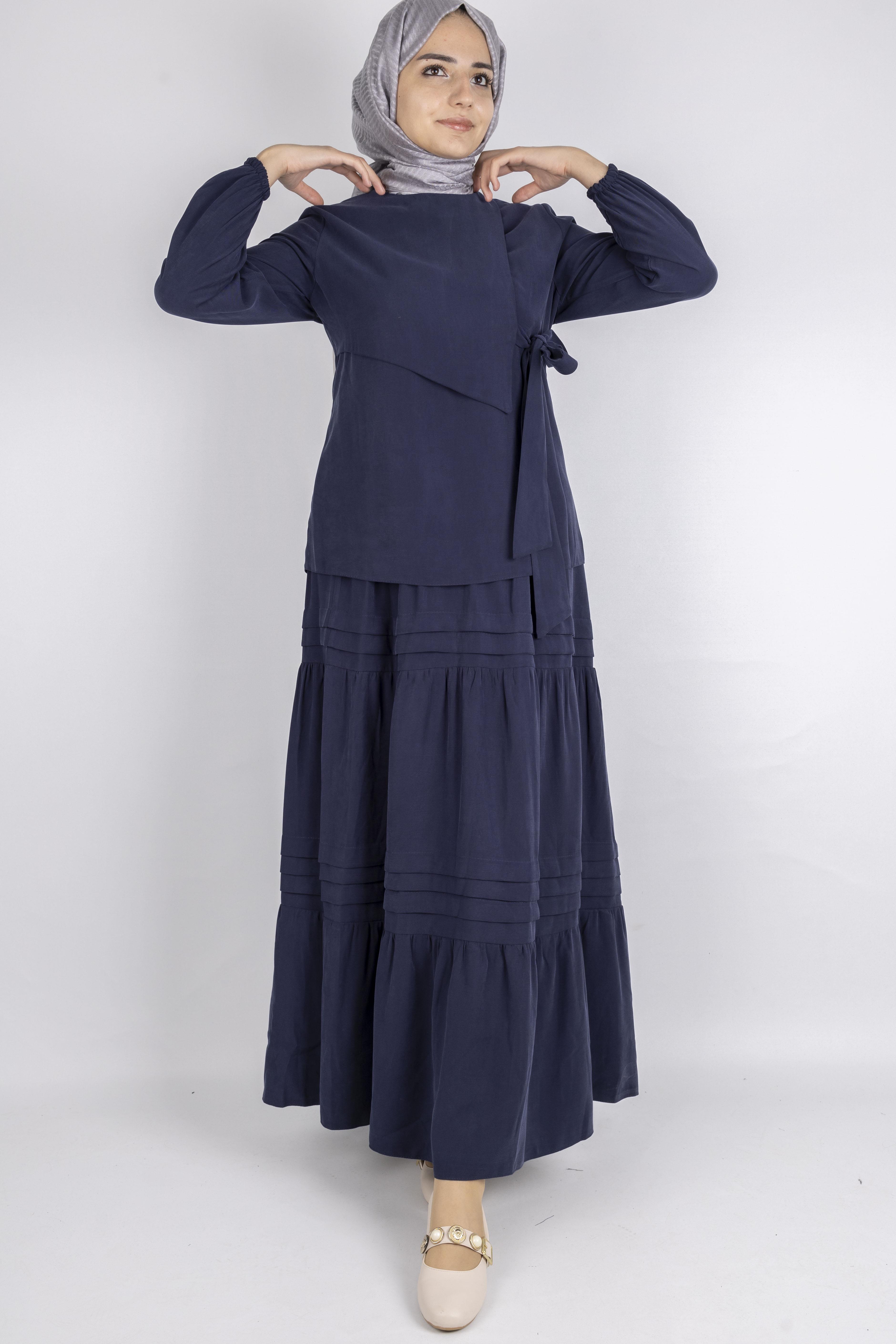 Yan Bağlamalı Üst ve Volanlı Etek İkili Takım Lacivert OTW8538