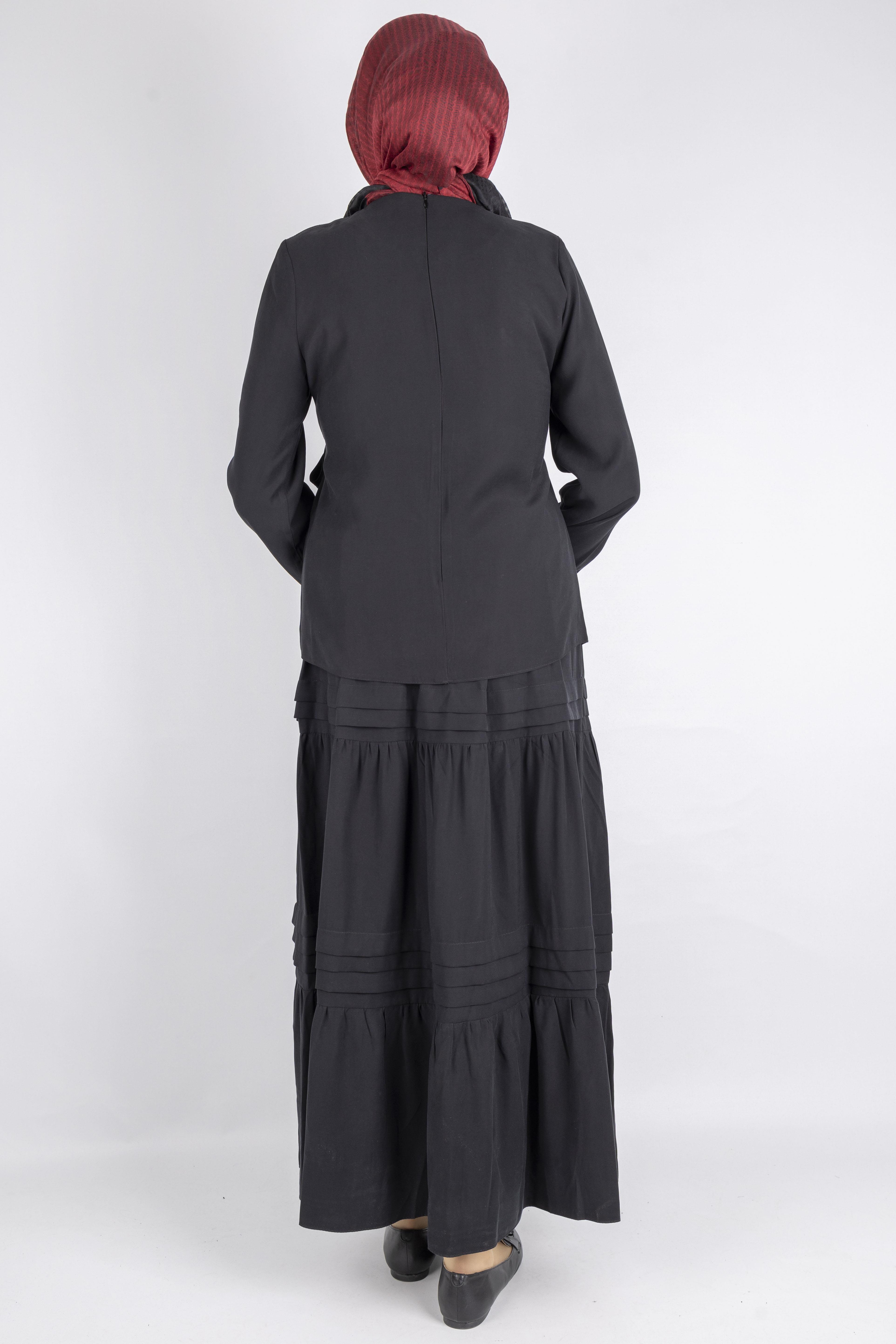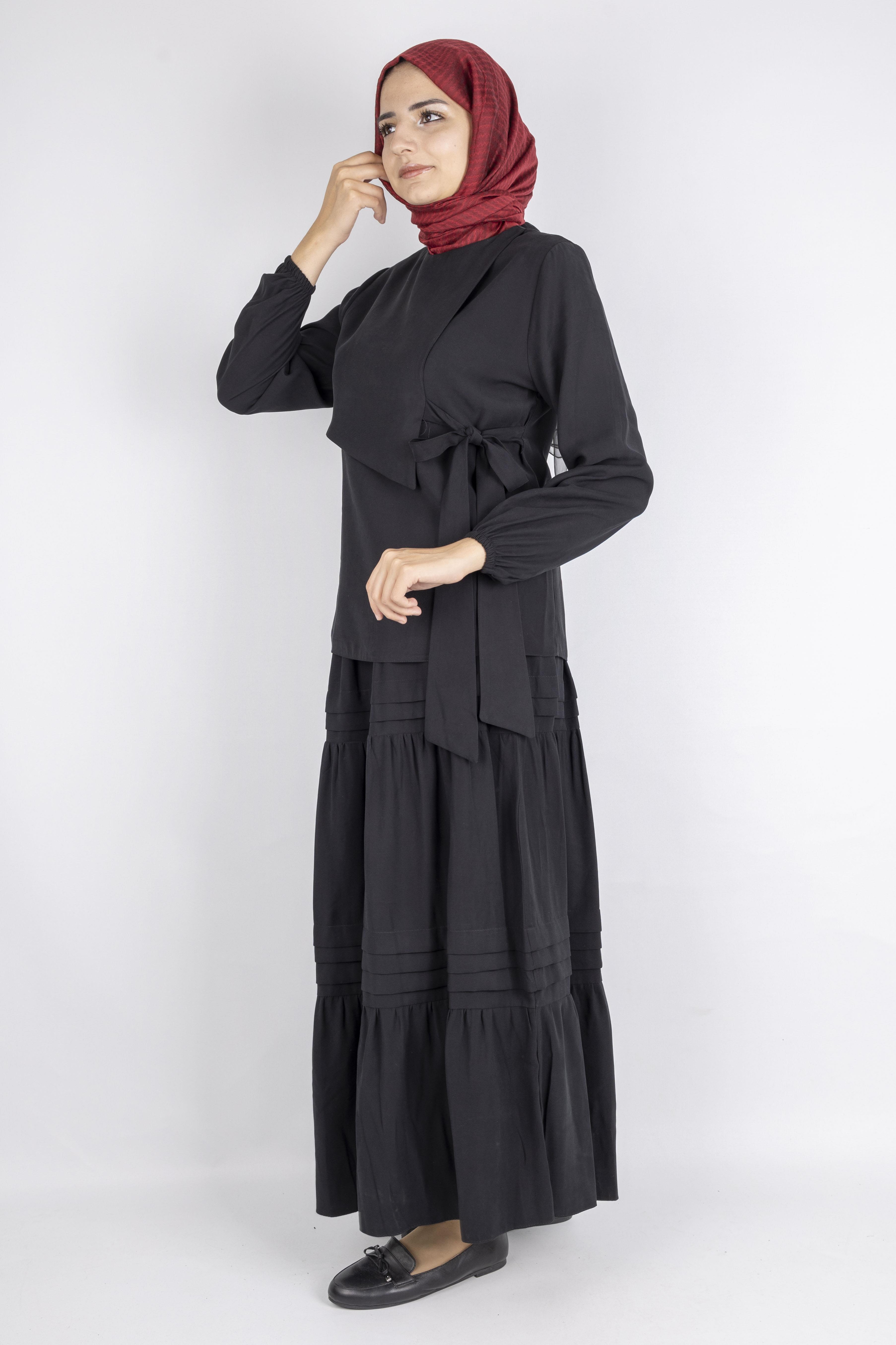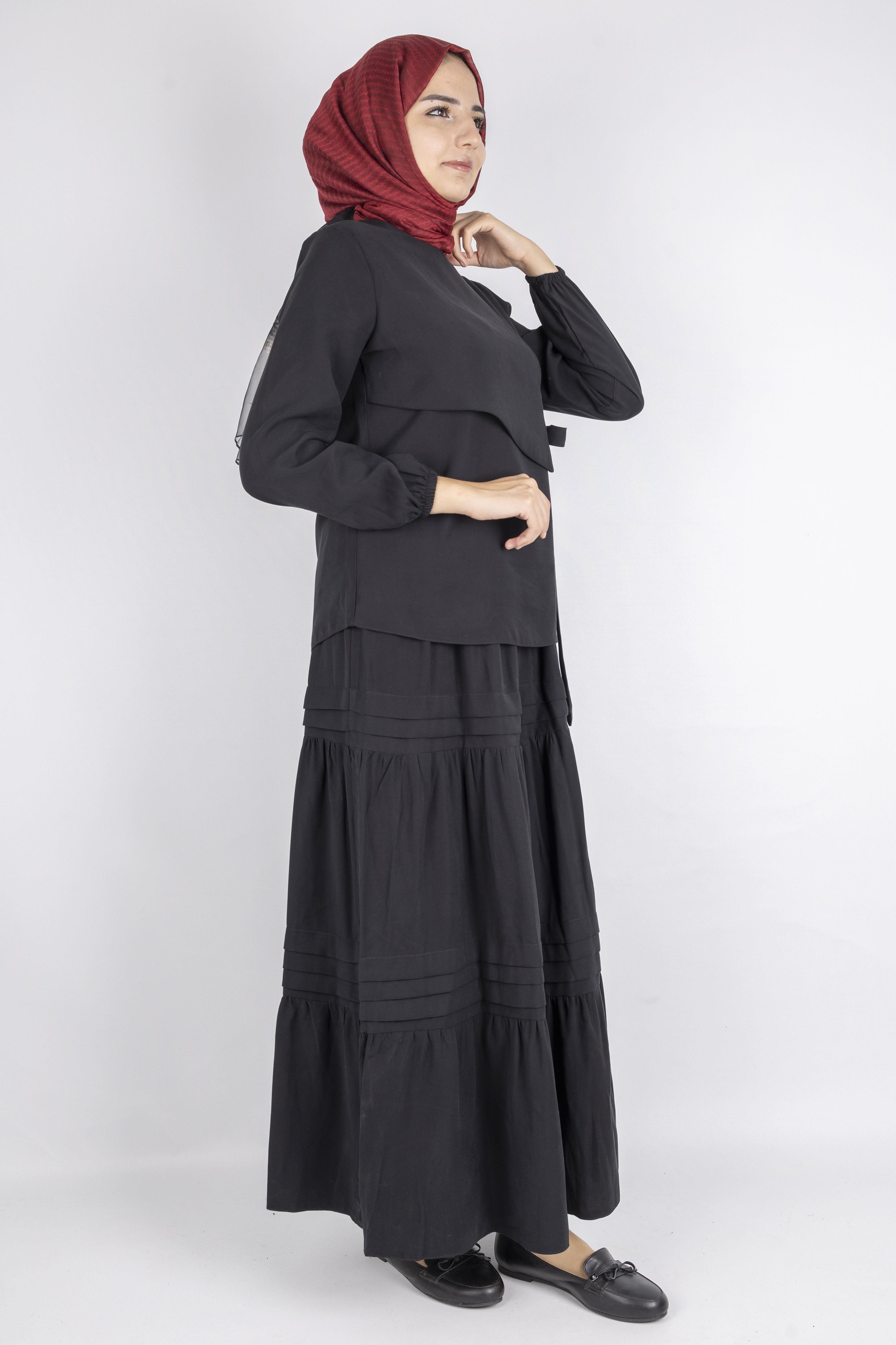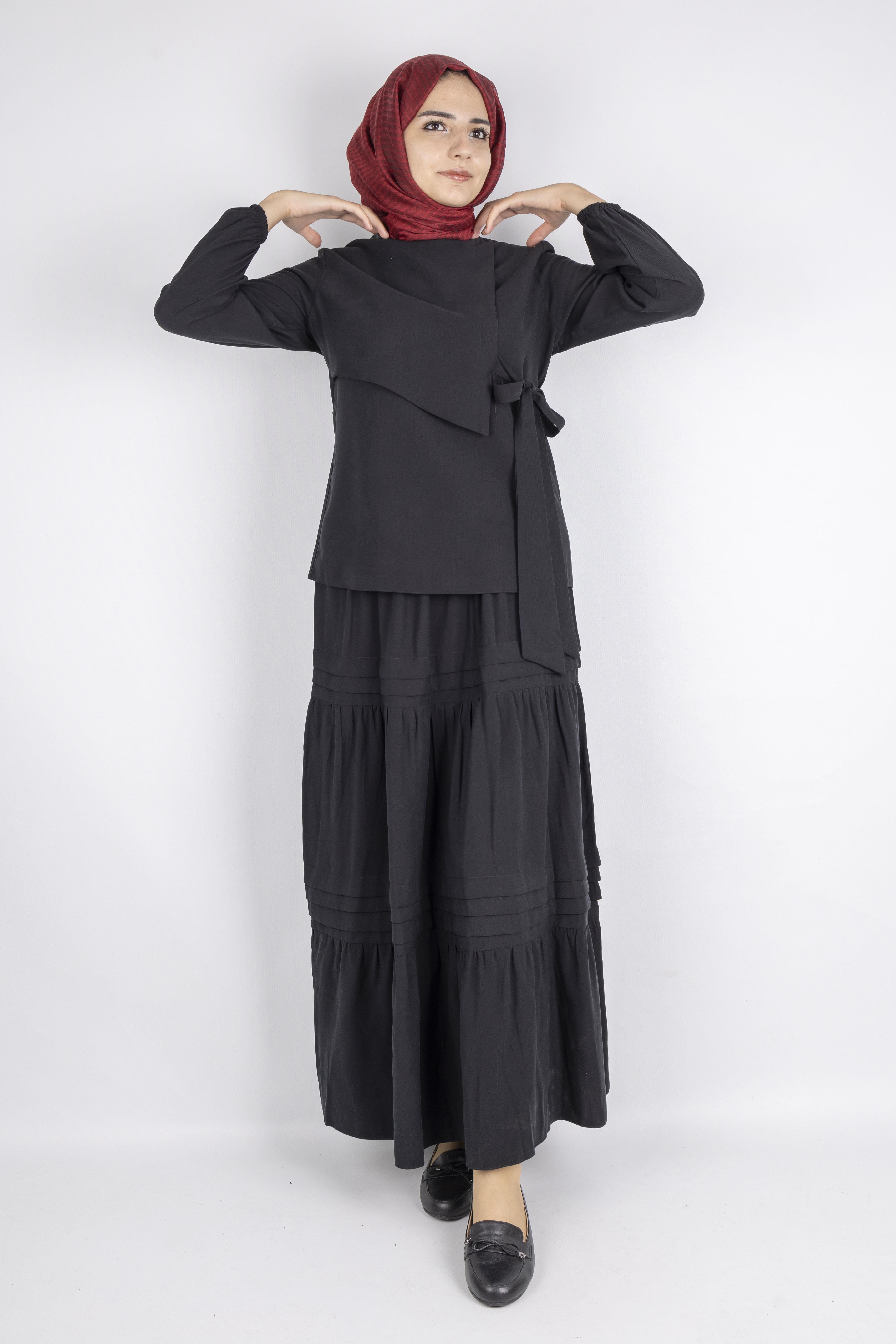 Yan Bağlamalı Üst ve Volanlı Etek İkili Takım Siyah OTW8538