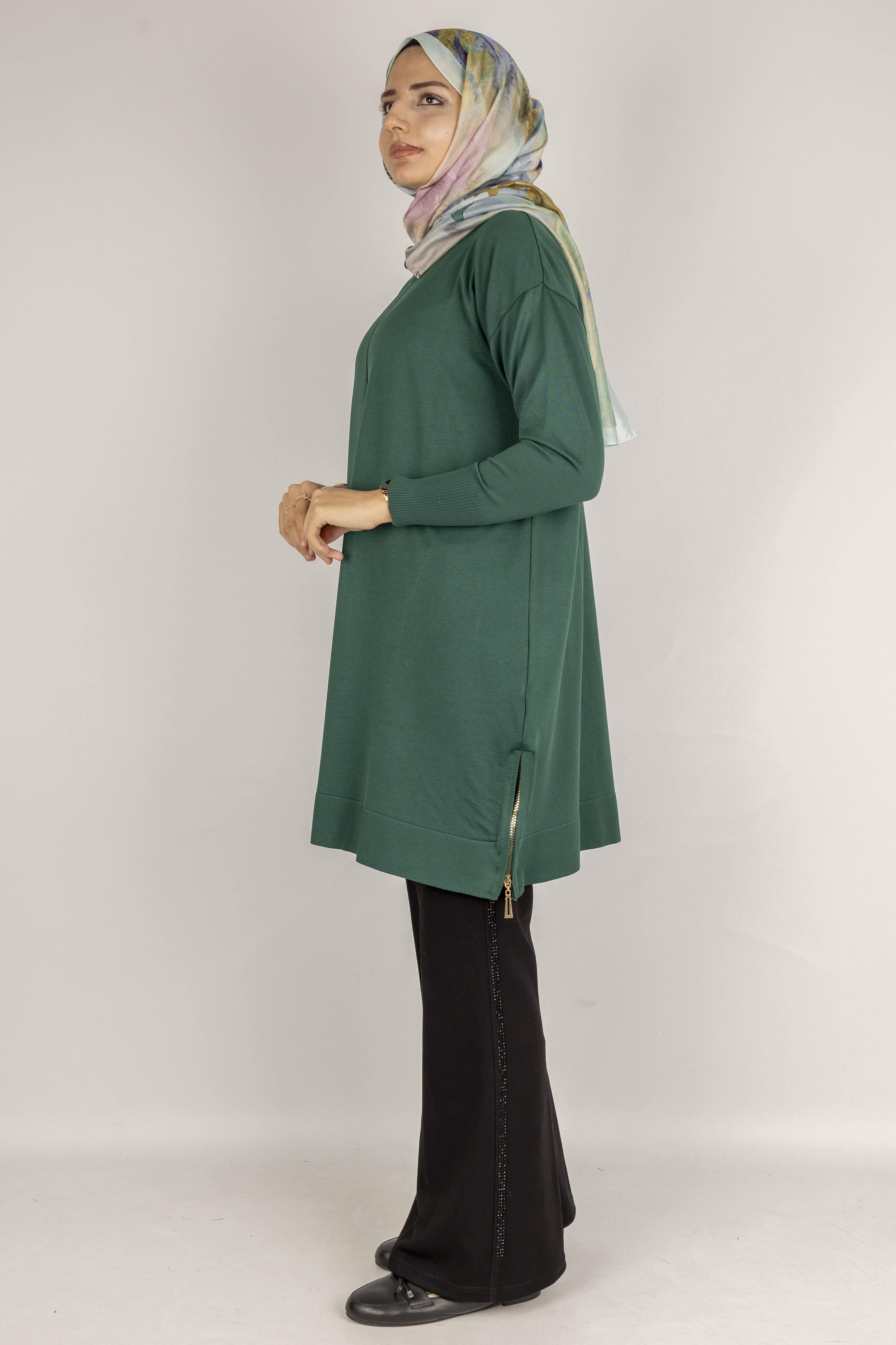 Zarif dökümlü yapısı, rahat kalıbı ve yan fermuar detayları ile bu merserize tunik hem günlük şıklığa hem de konfora önem veren kadınların favorisi oluyor. Hafif ve nefes alan merserize triko kumaşı sayesinde mevsim geçişlerinde ideal bir kullanım sunar.