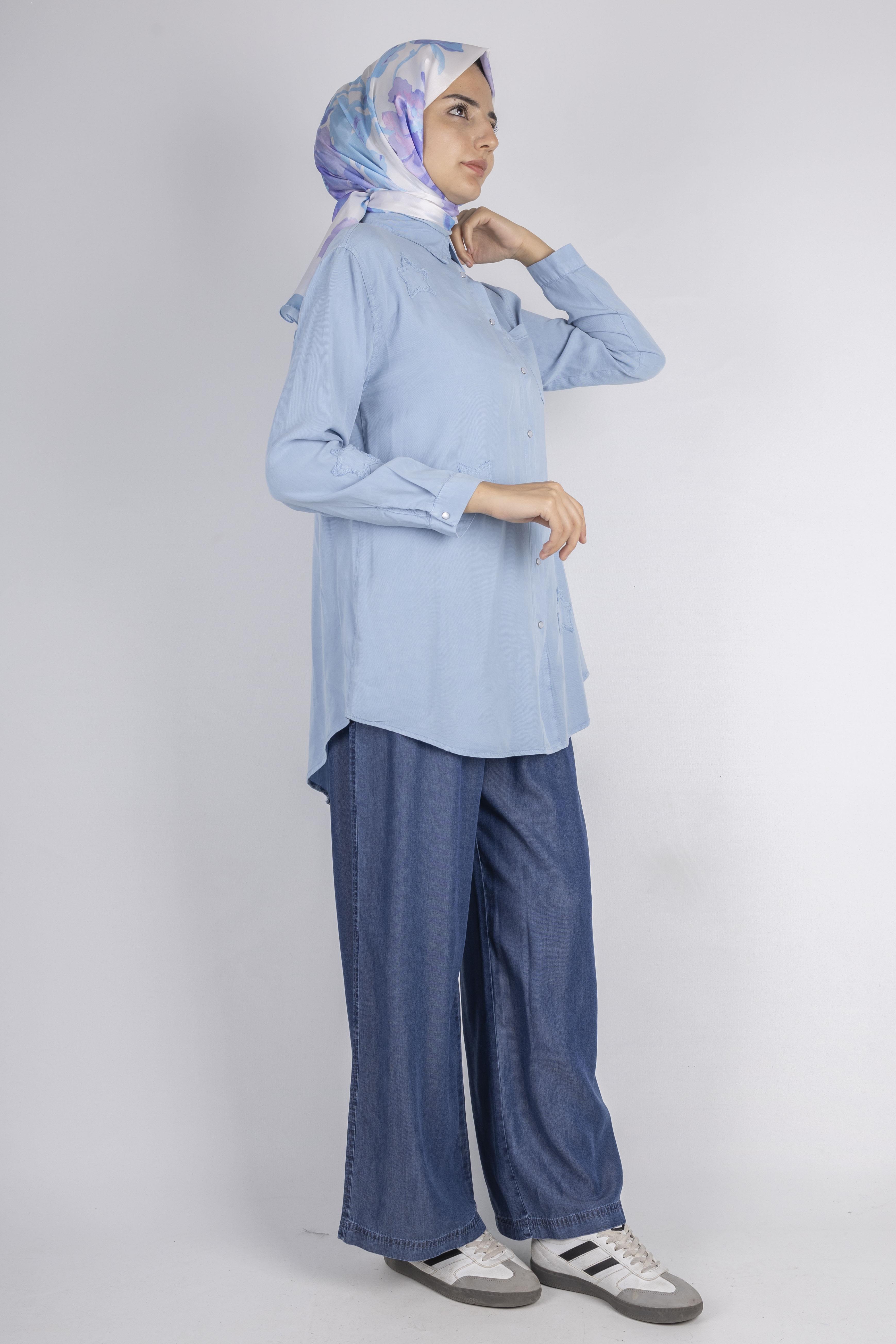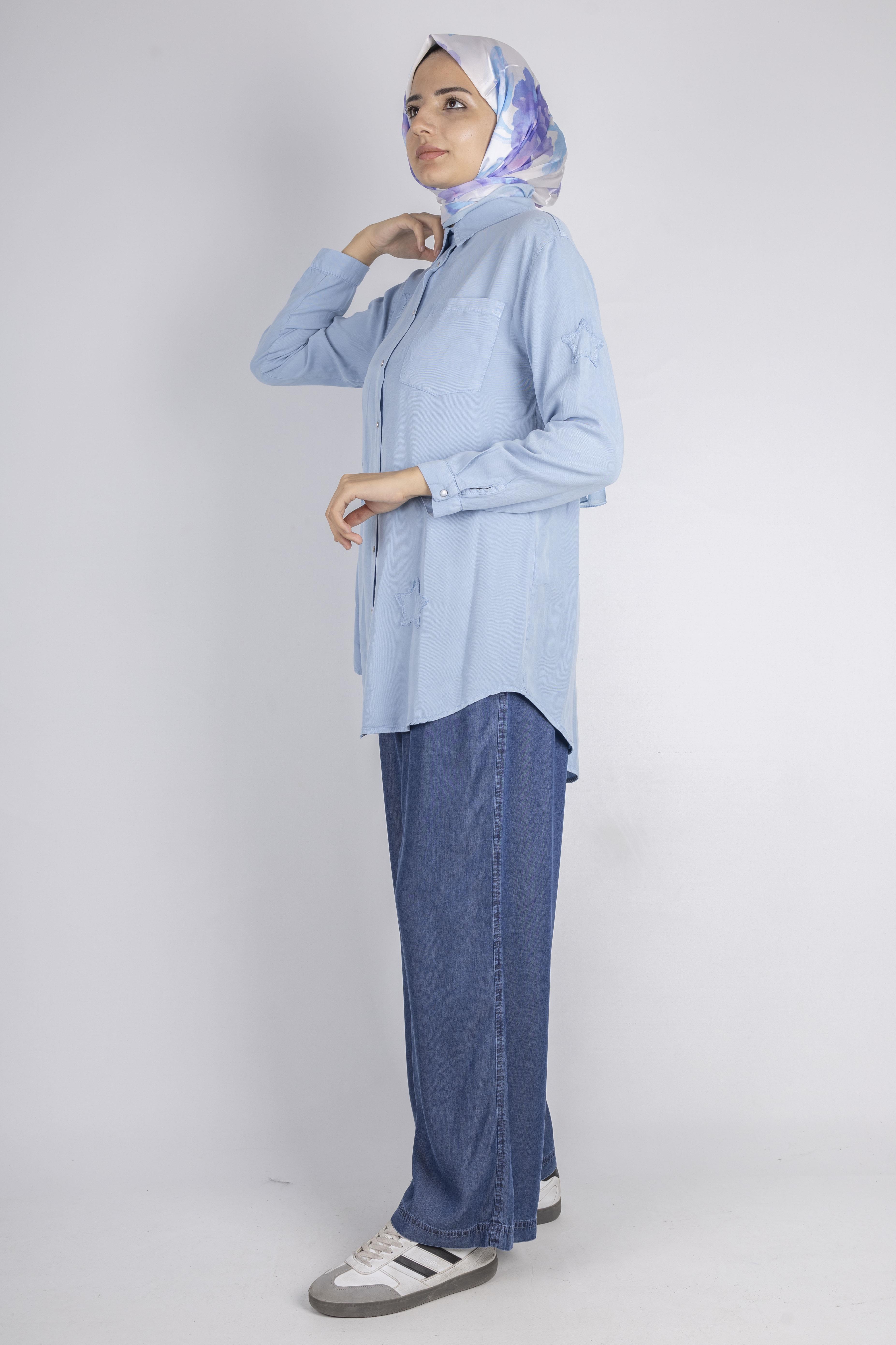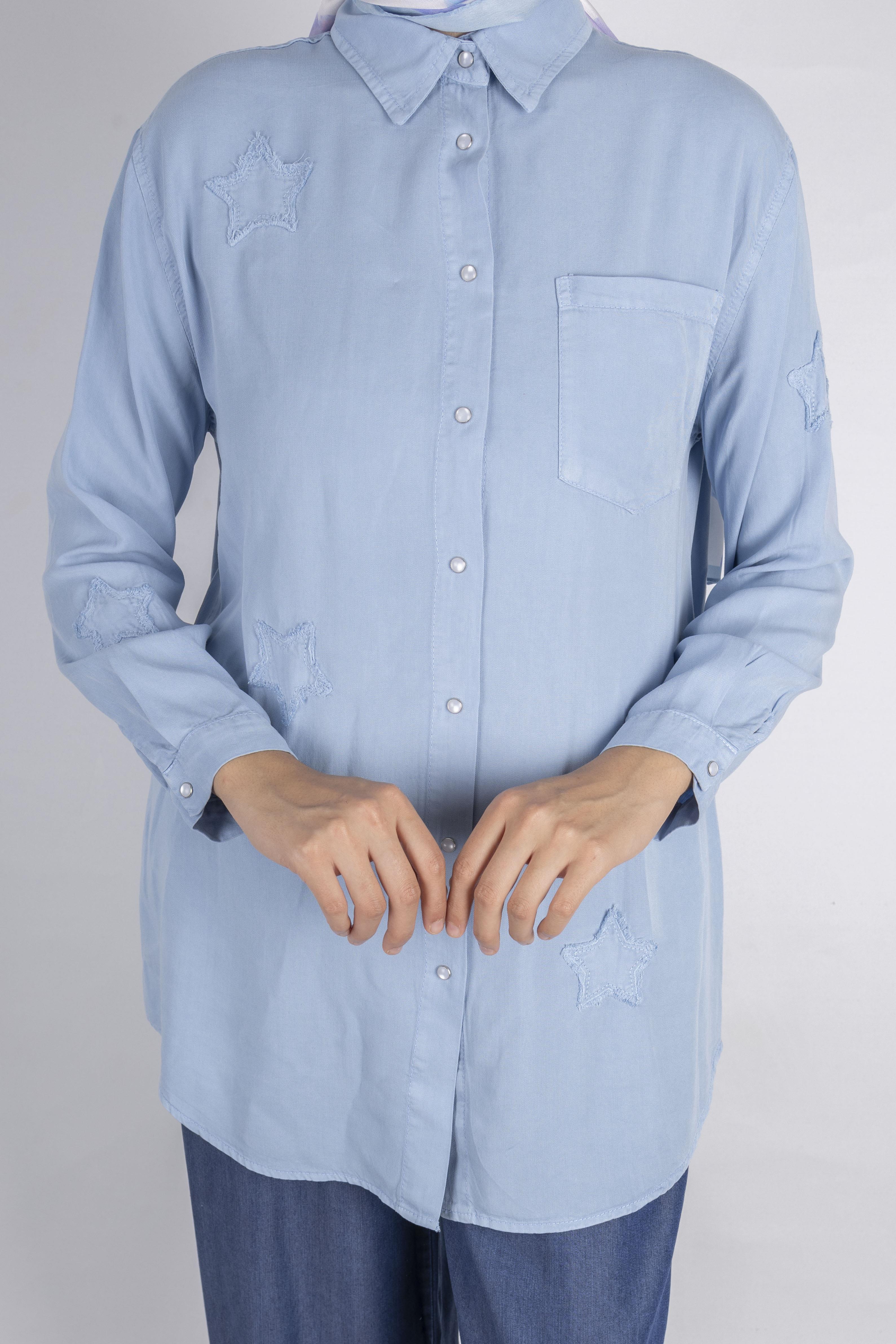 Yıldız Nakışlı Gömlek Mavi OTW7343