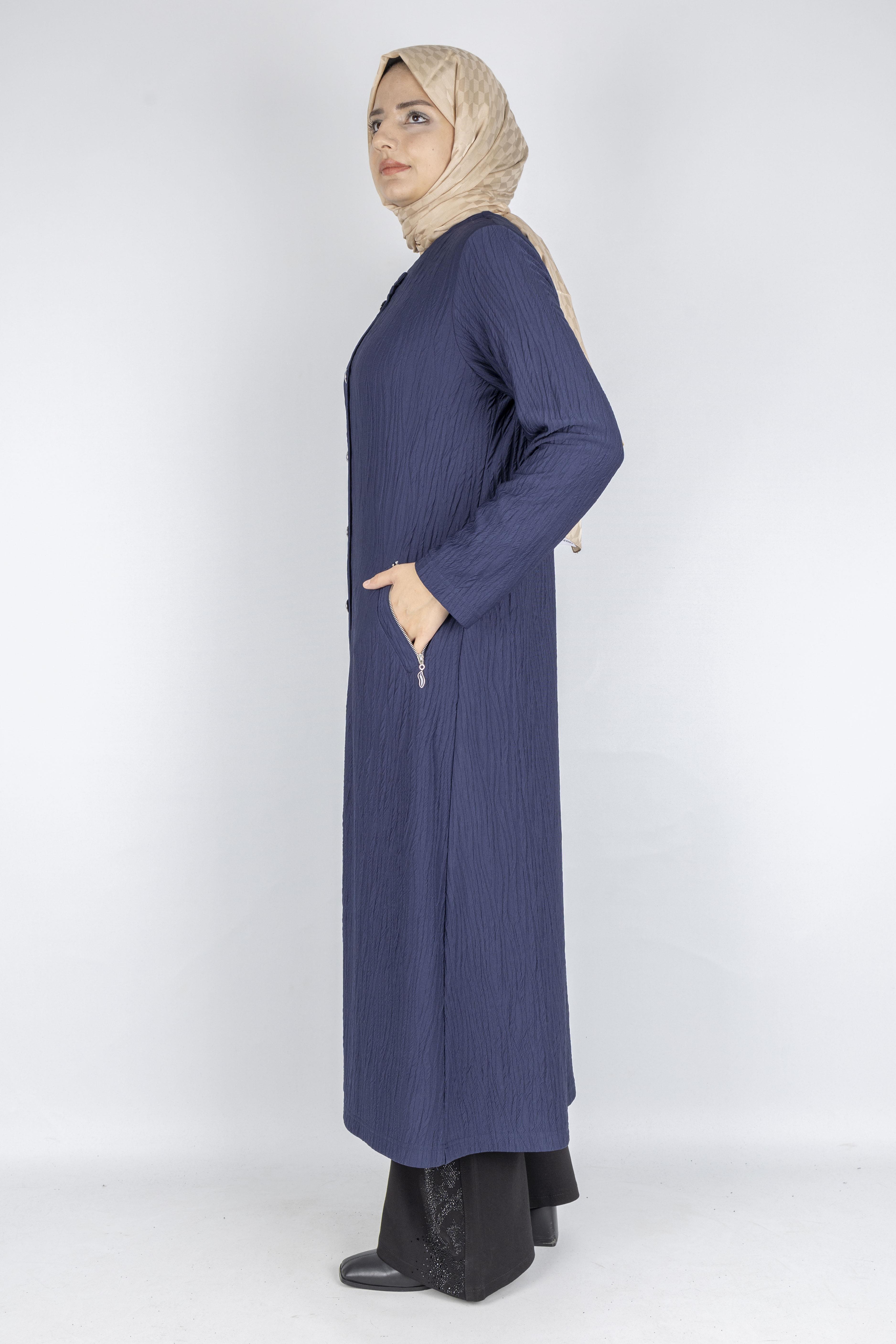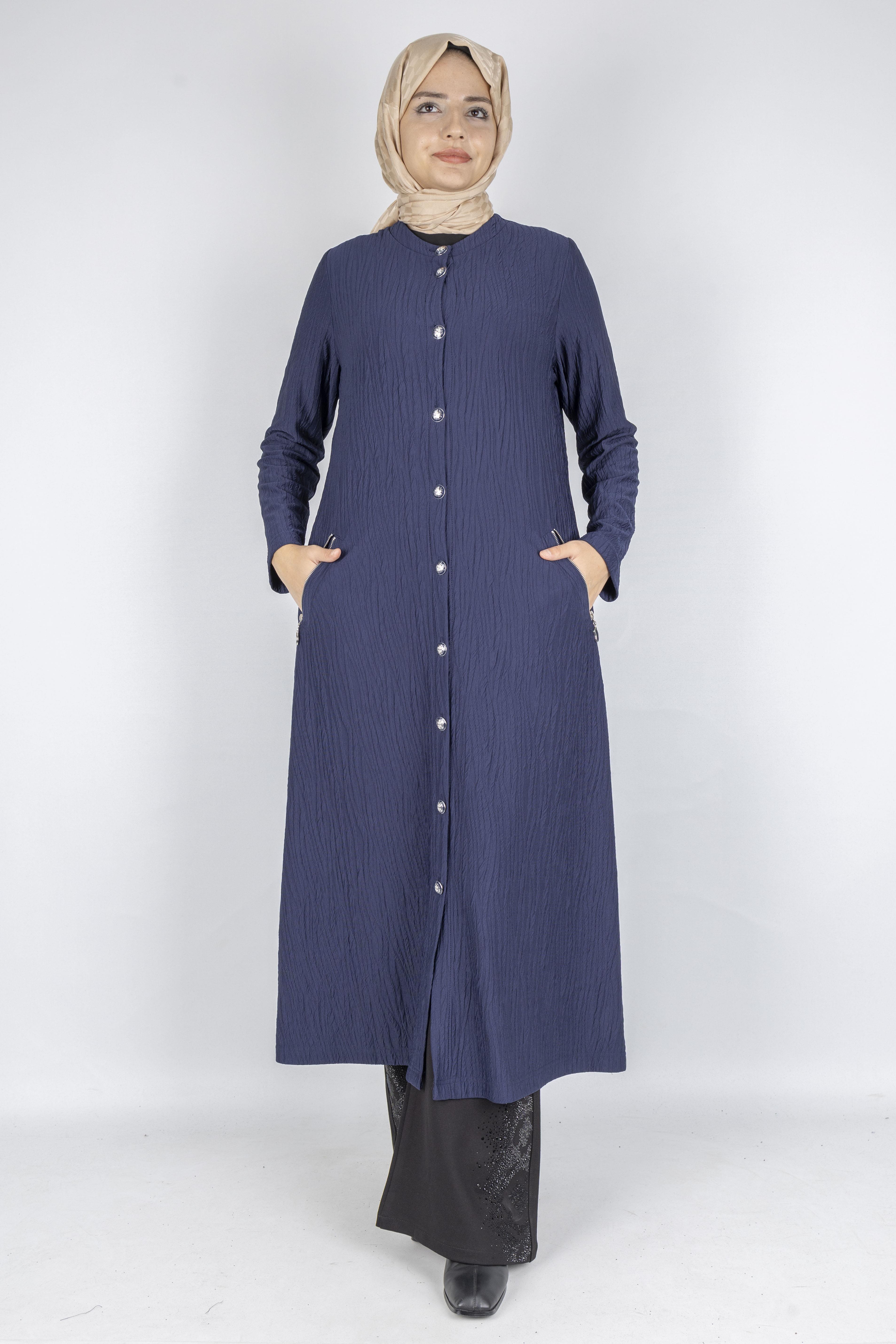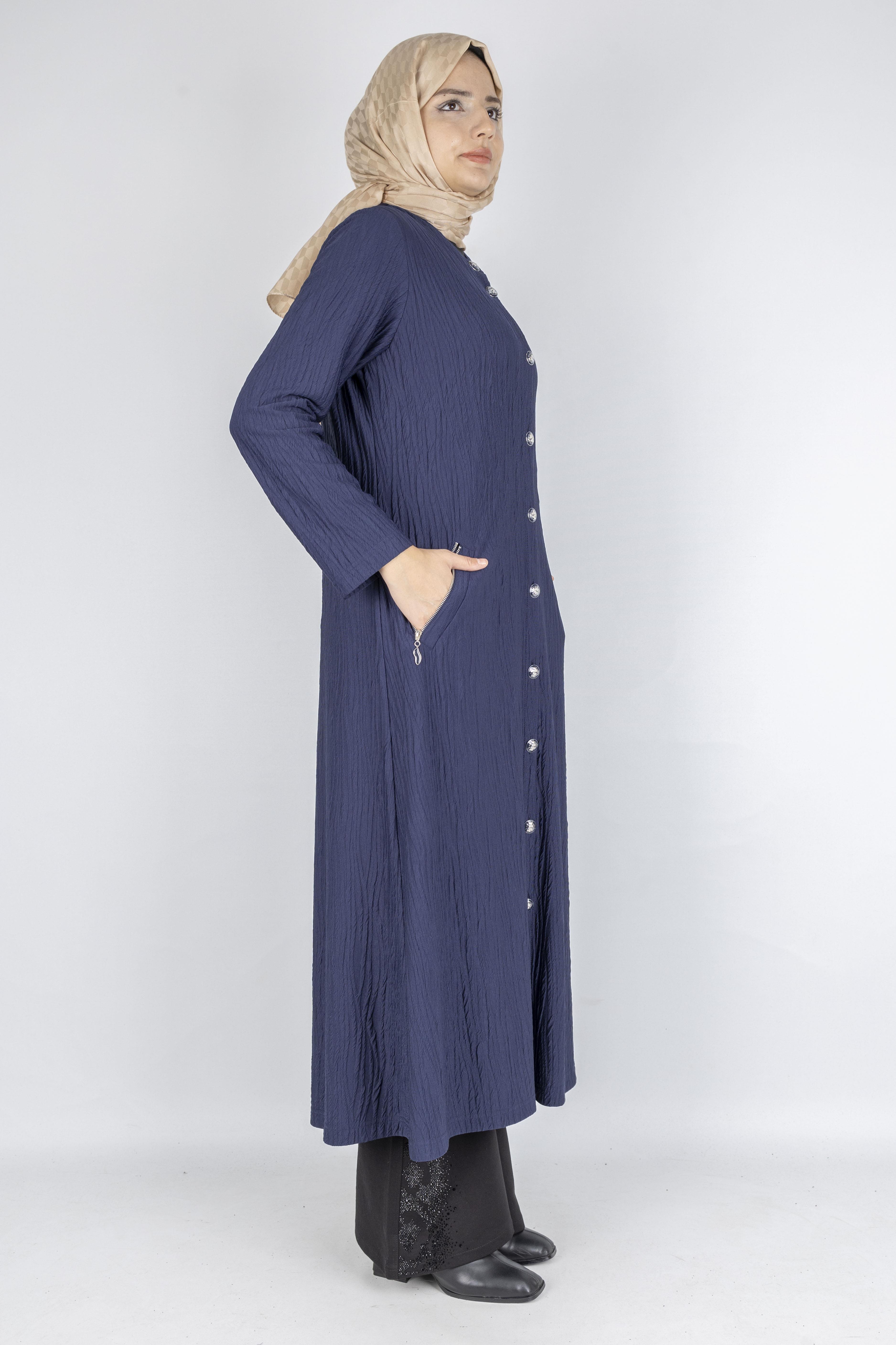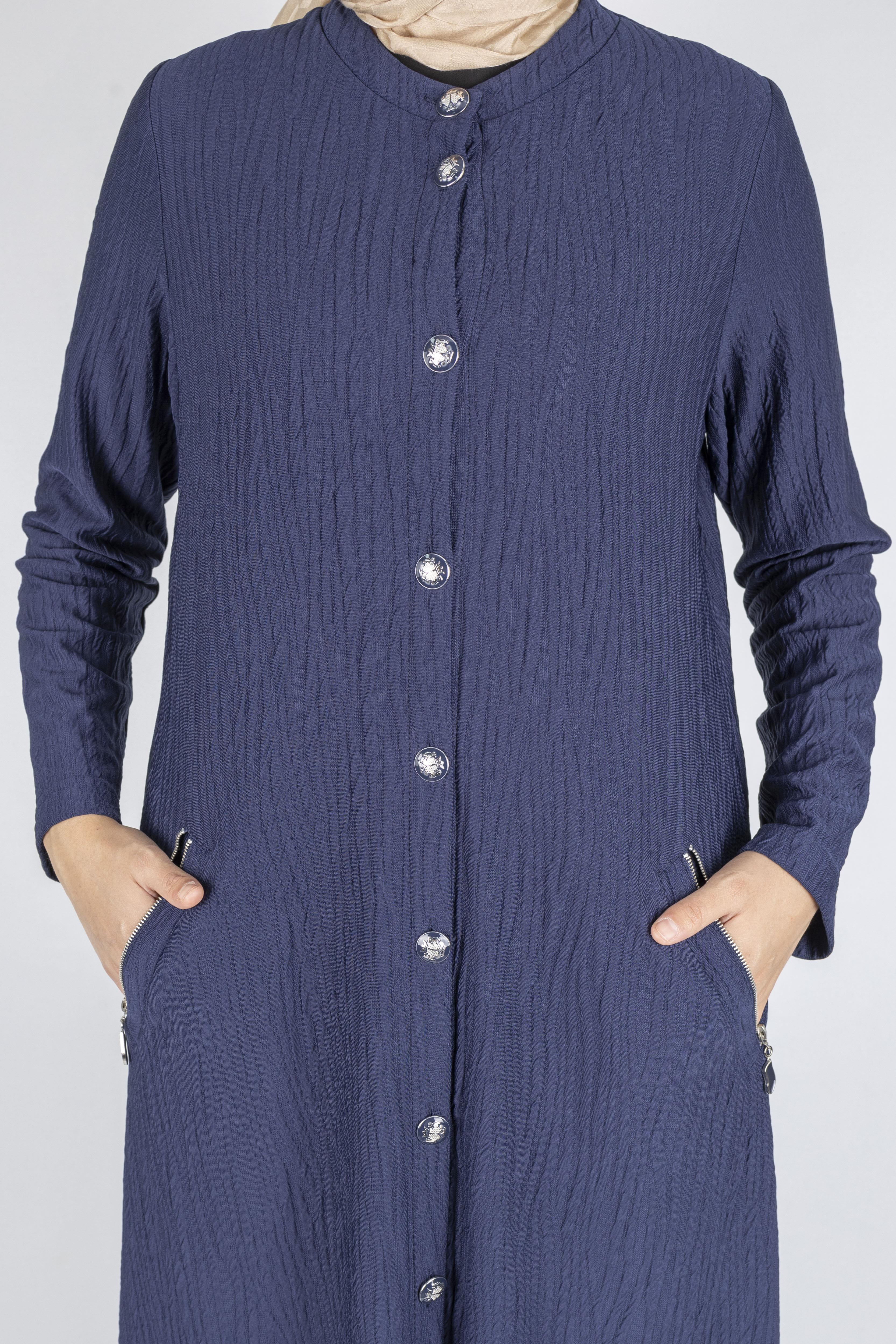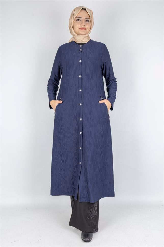 Yuvarlak Yaka Büyük Beden Düğmeli Kap Lacivert OTW702