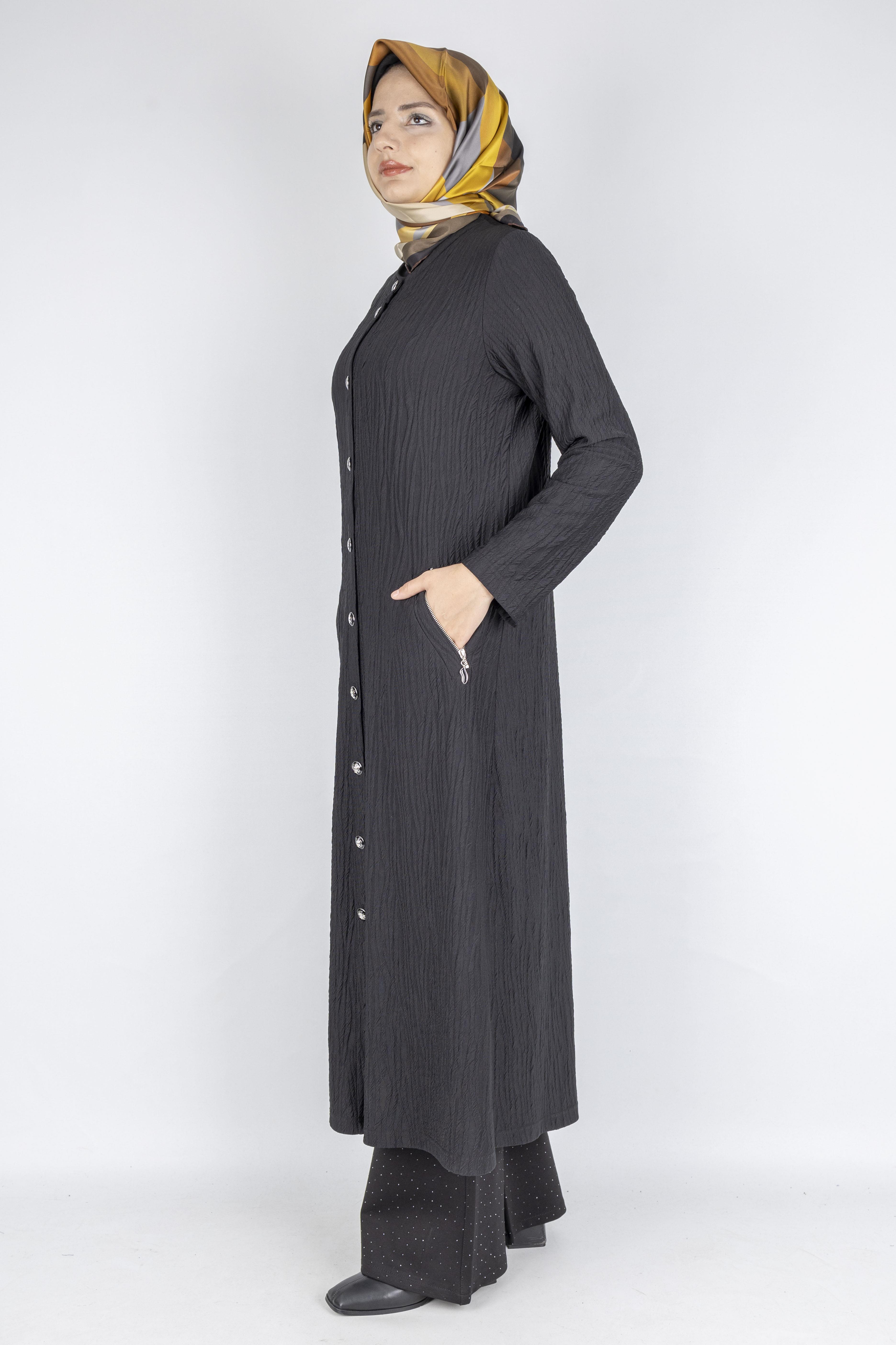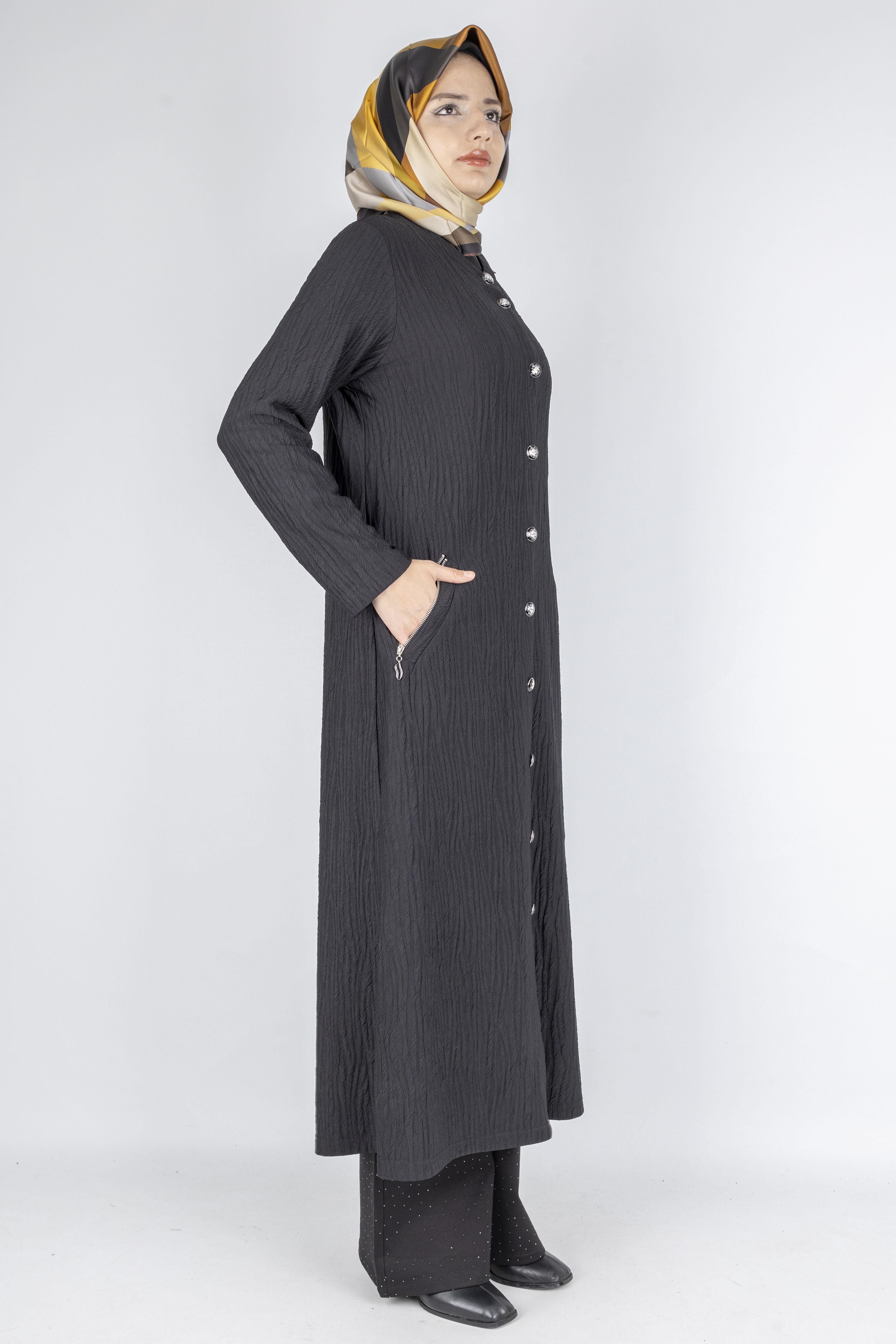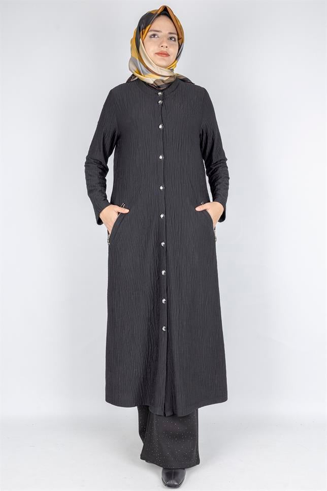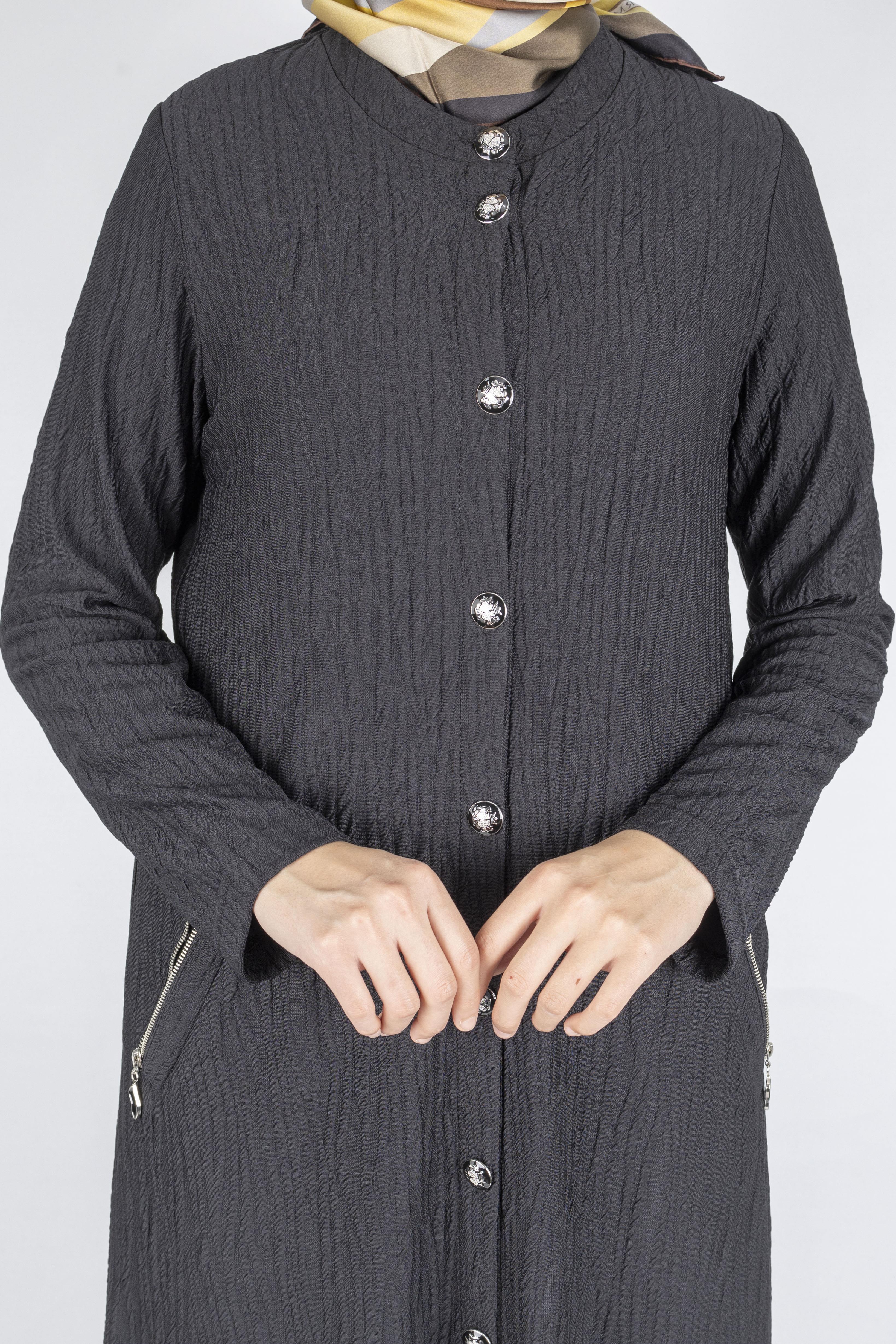 Yuvarlak Yaka Büyük Beden Düğmeli Kap Siyah OTW702